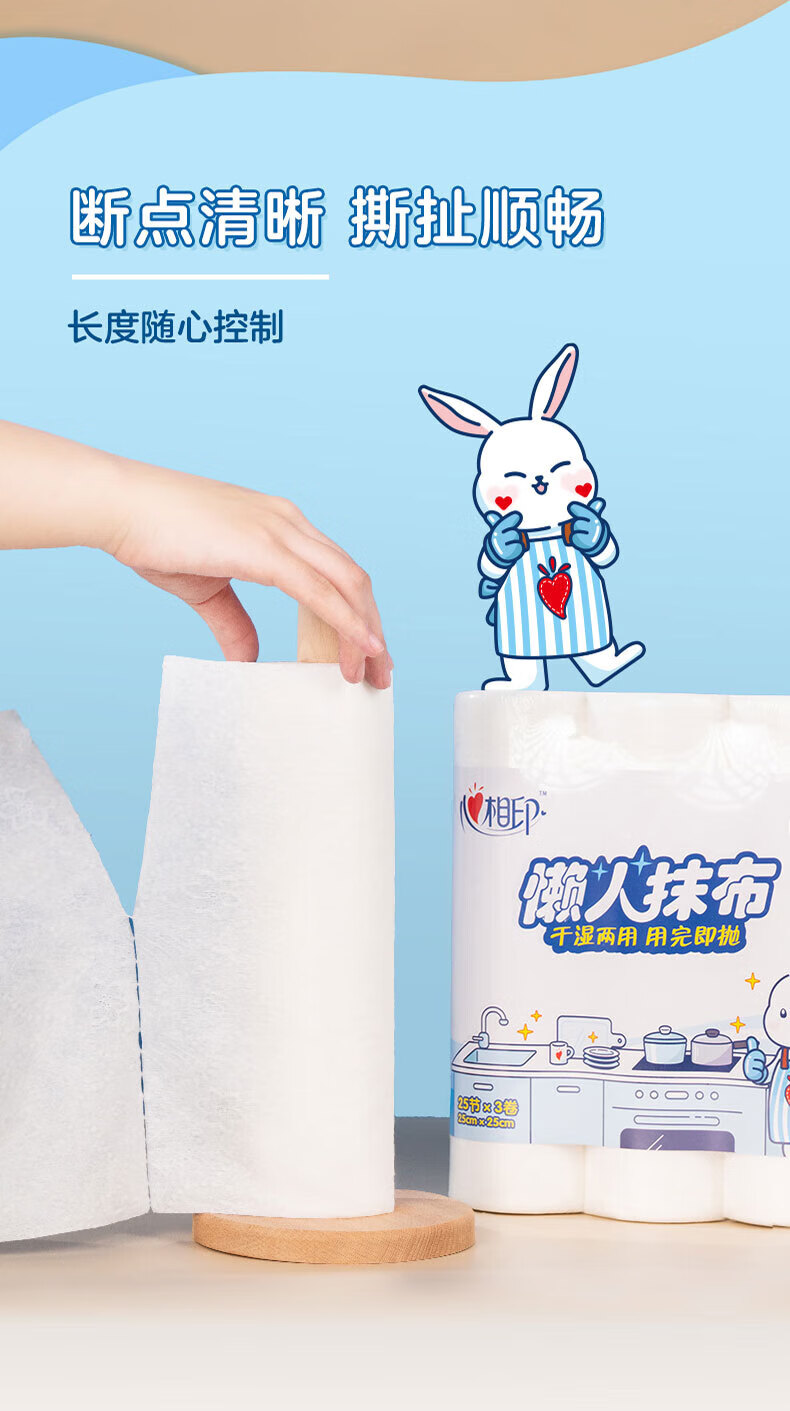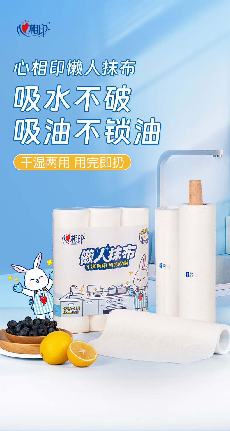 心相印懒人抹布厨房一次性抹布干湿两用 卷式25张×3卷