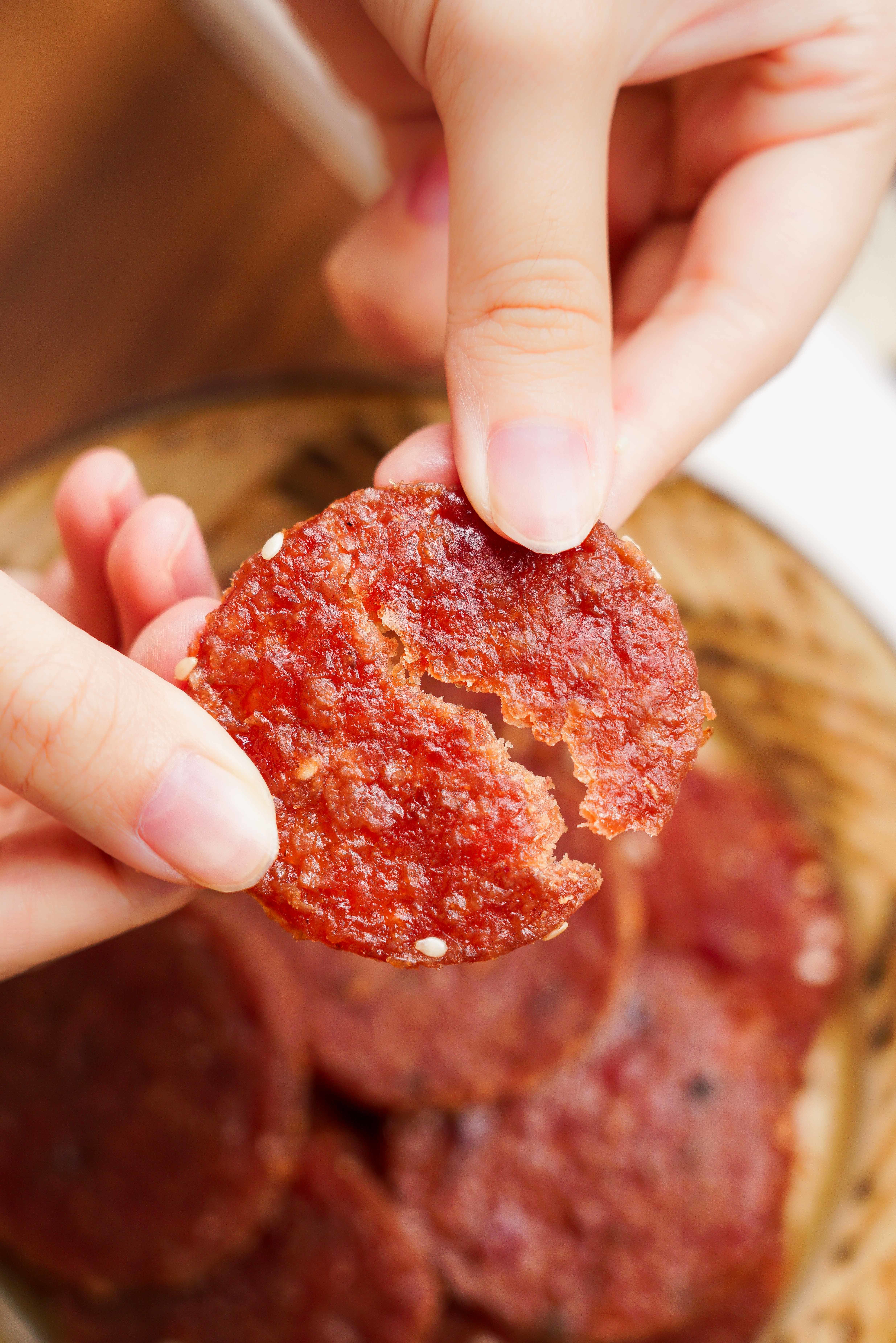 【一方云拾炭烤猪肉脯】❗大潮汕宝藏吃肉就吃有厚度的!潮汕土猪肉做的❗10+小时荔枝果木炭烤🔥隔着屏幕!仿佛闻到香味了😆 ✅有嚼劲,香润不干巴!!诱惑蜜汁味+微辣辛香黑椒味!
