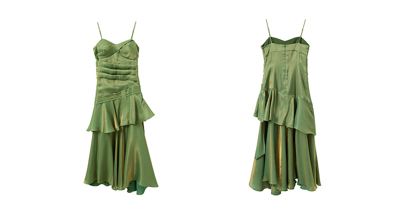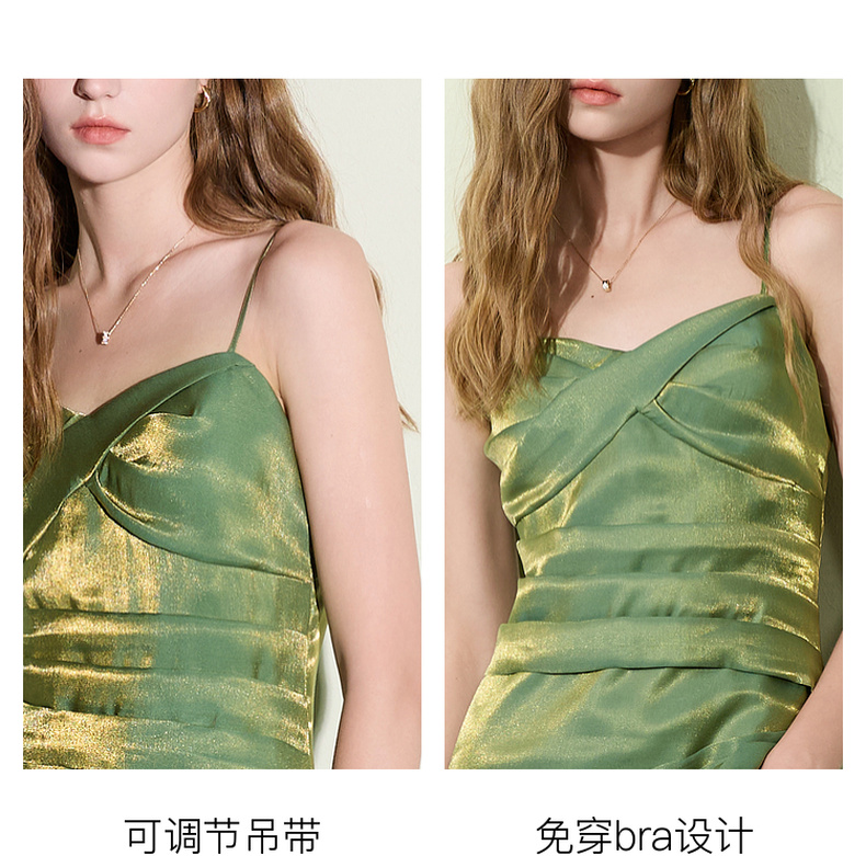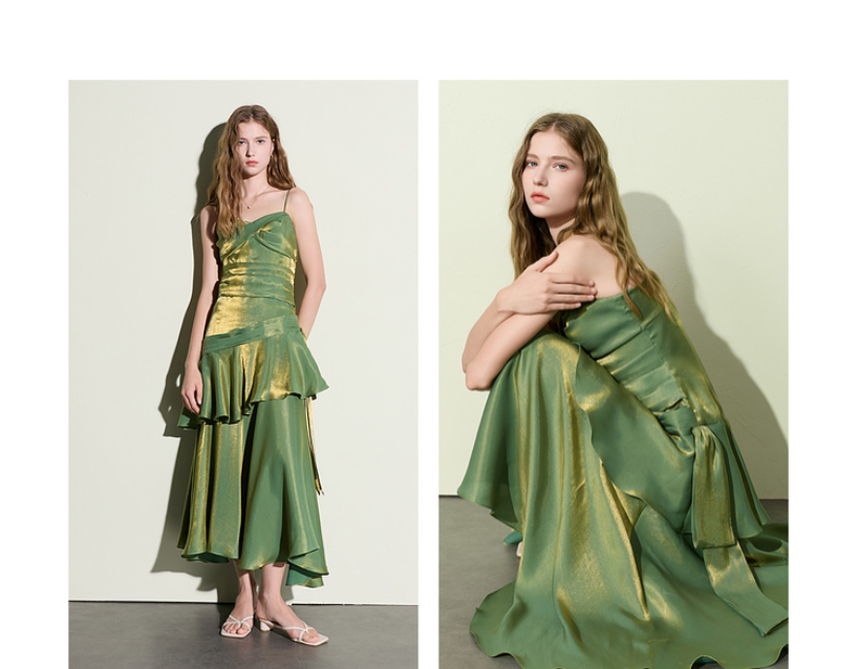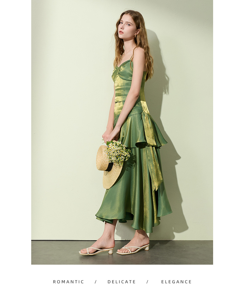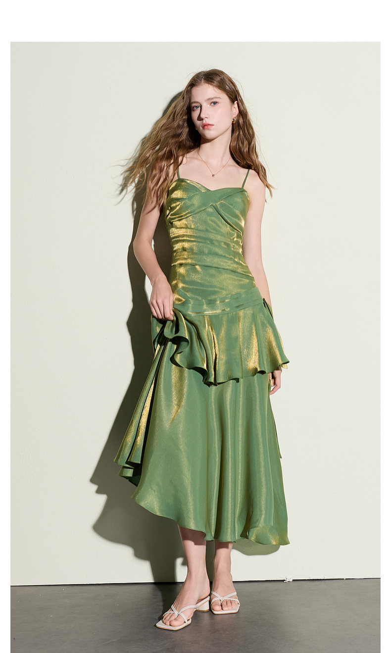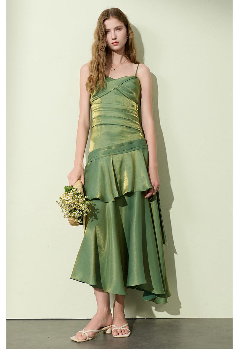 三彩2025夏季新款轻礼服吊带裙连衣裙荷叶边A字长裙轻奢小众M