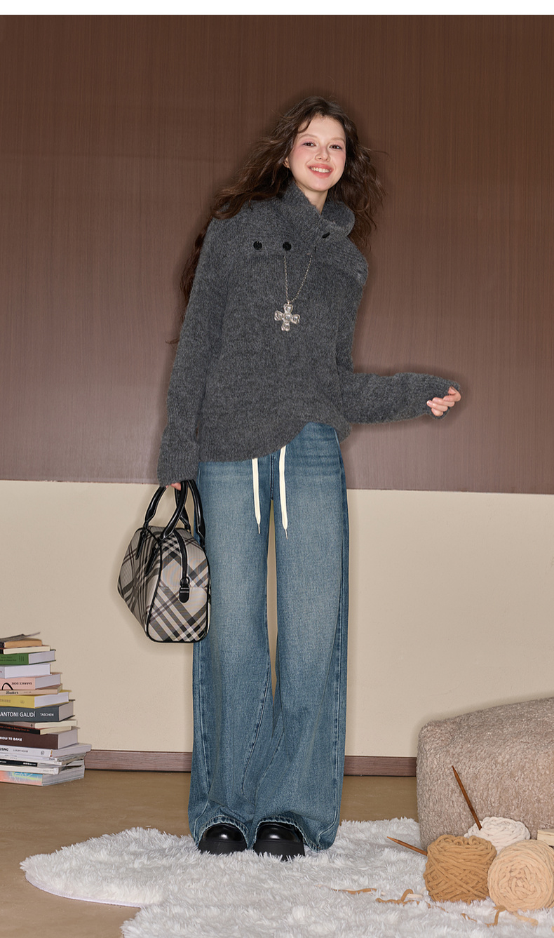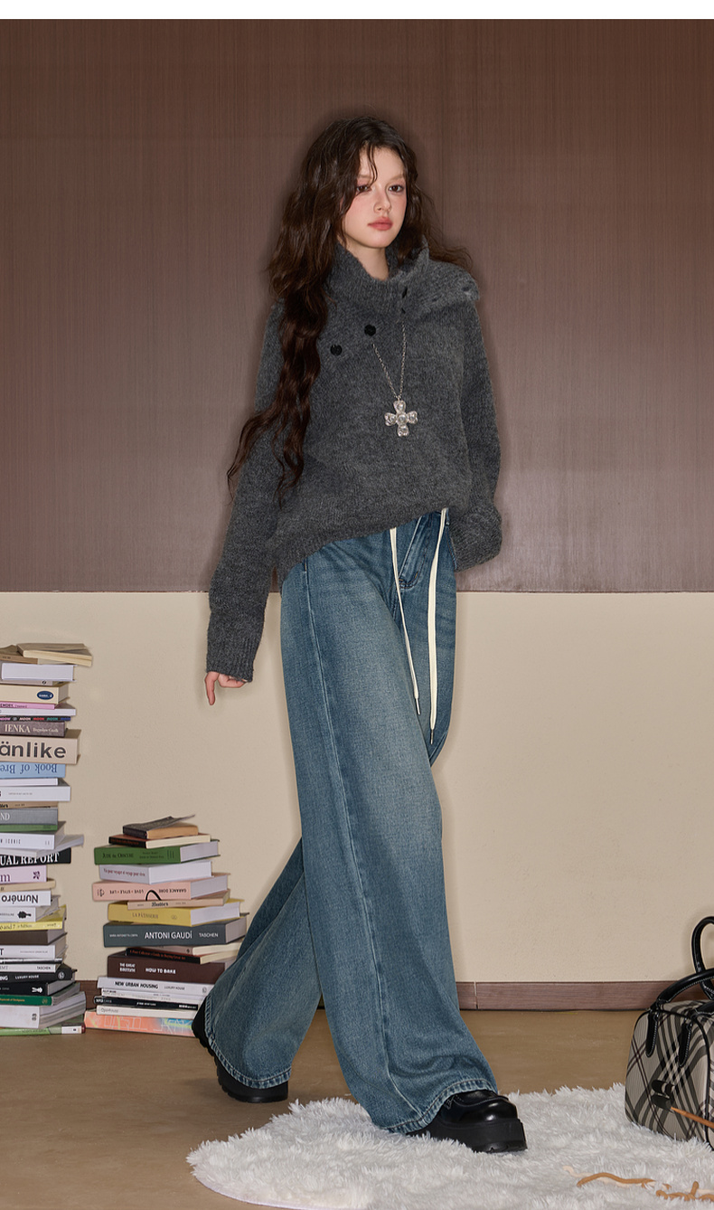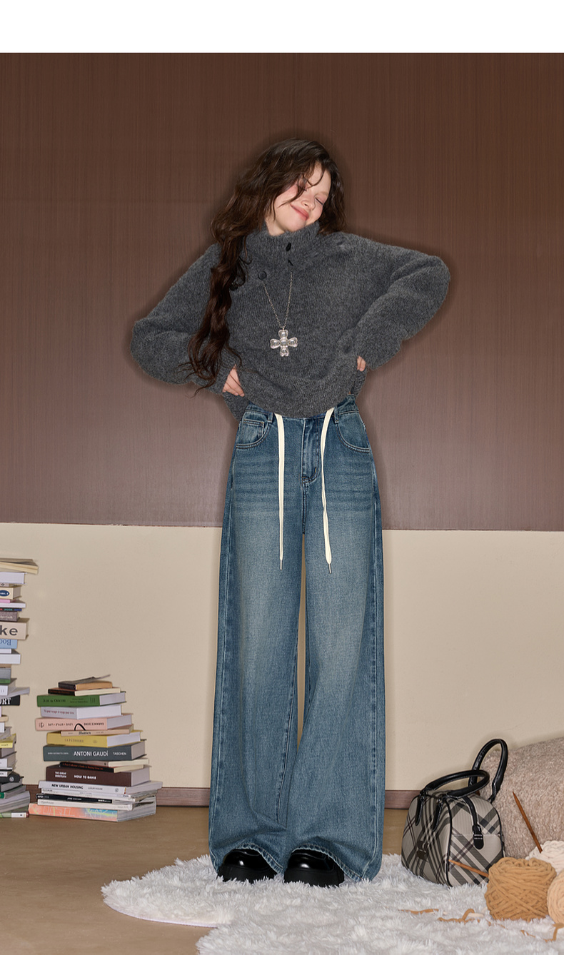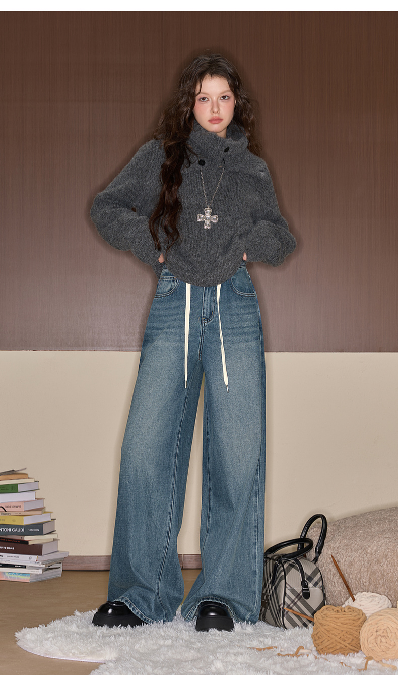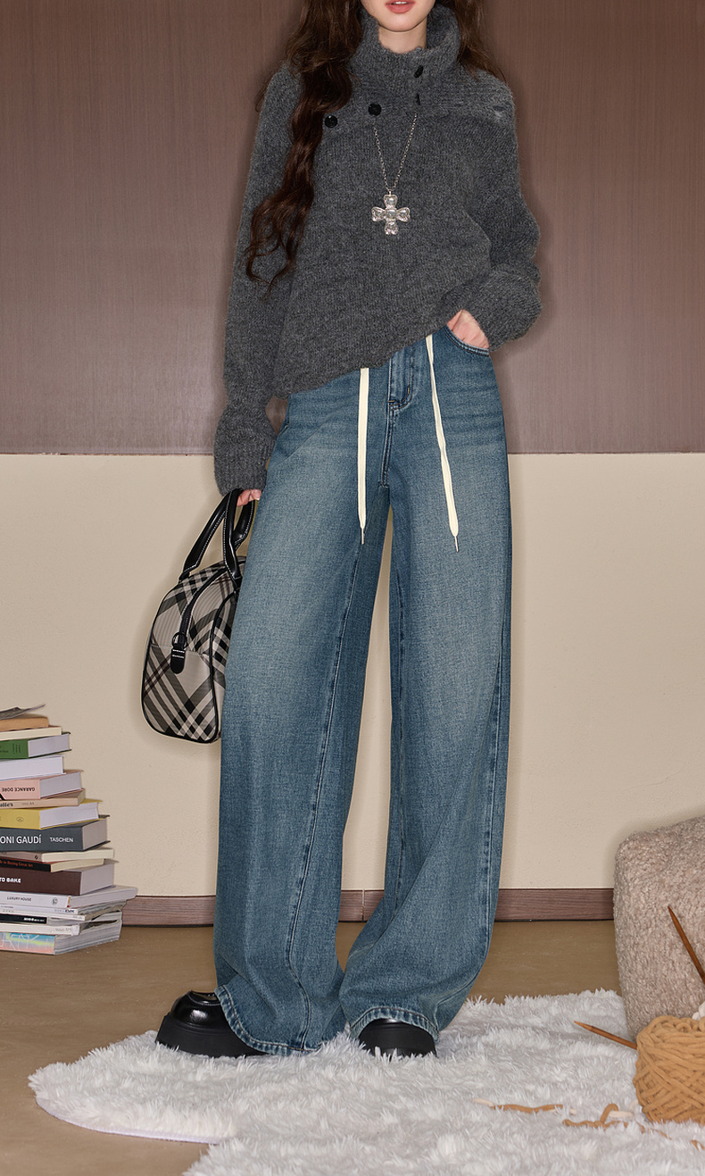 三彩独醒2025冬季新款牛仔裤休闲裤宽松阔腿裤潮流长裤F