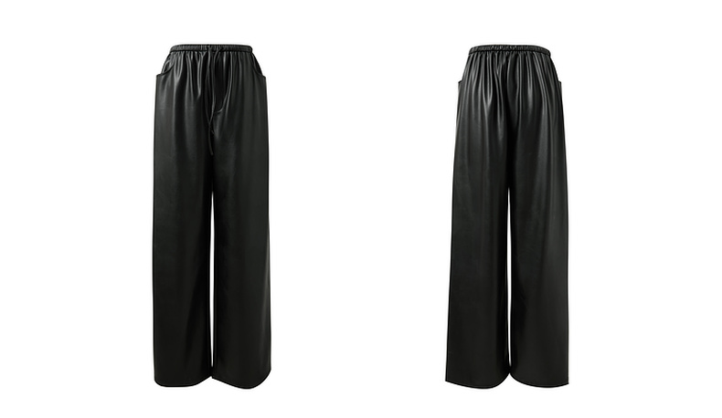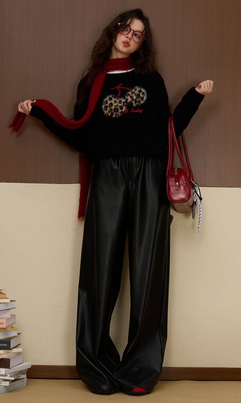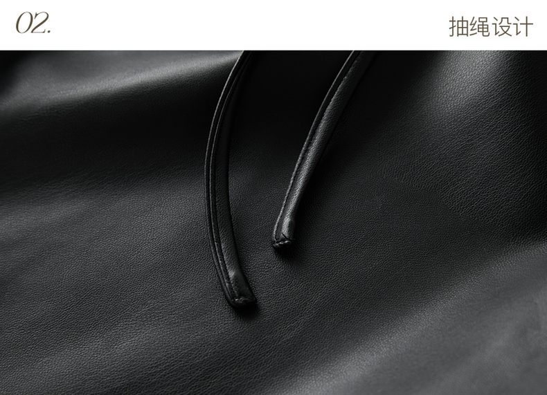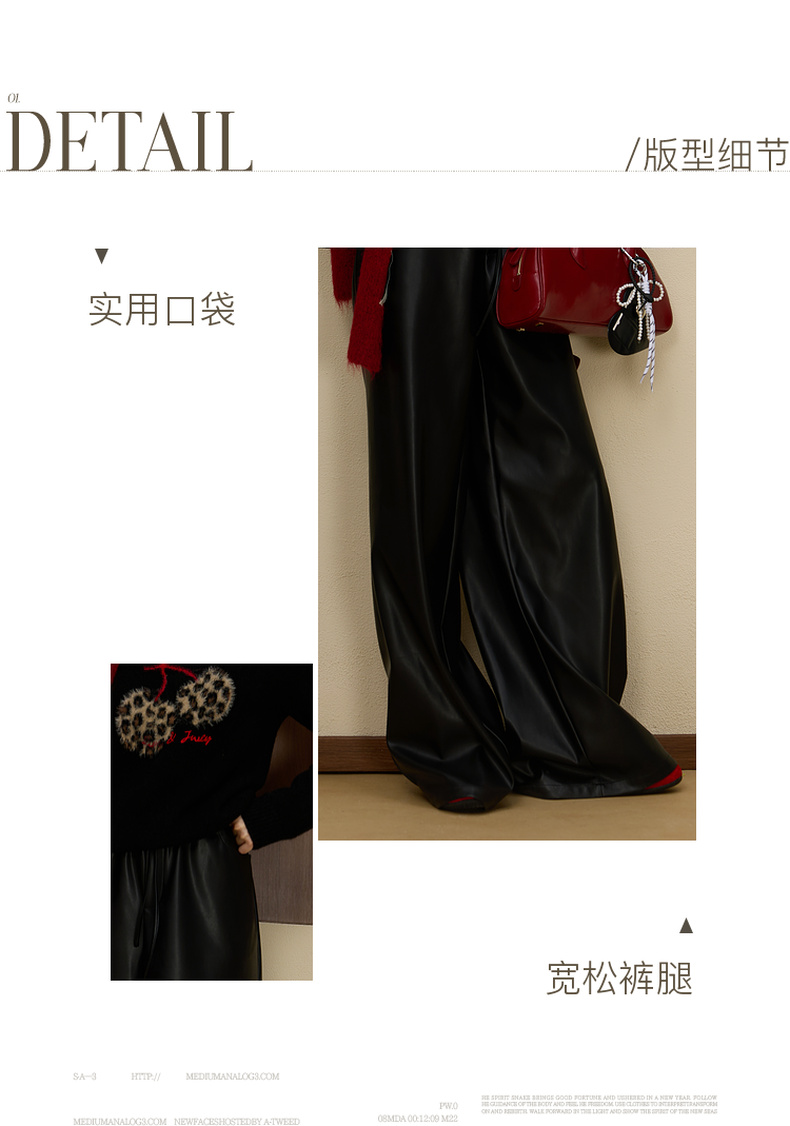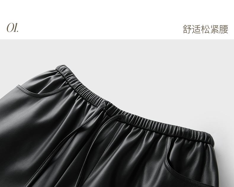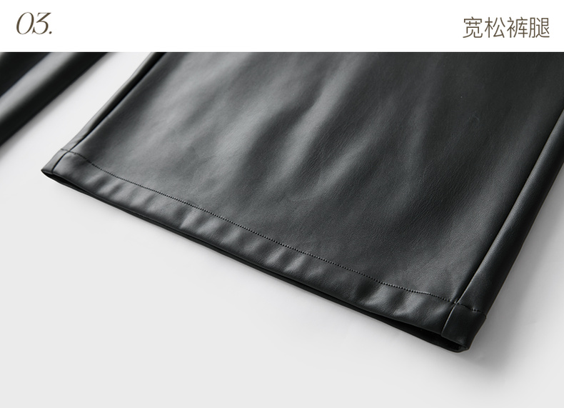 三彩独醒2025冬季新款皮裤休闲裤松紧腰宽松阔腿裤长裤F