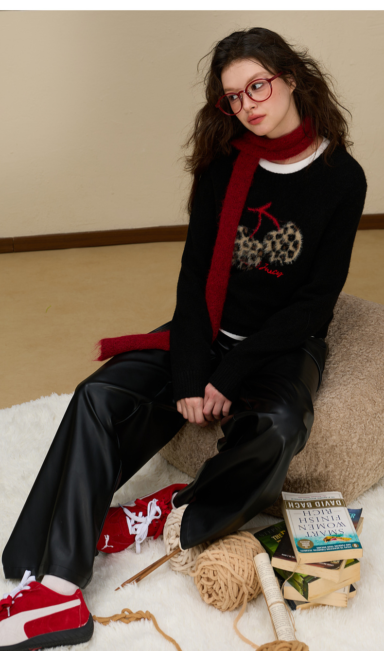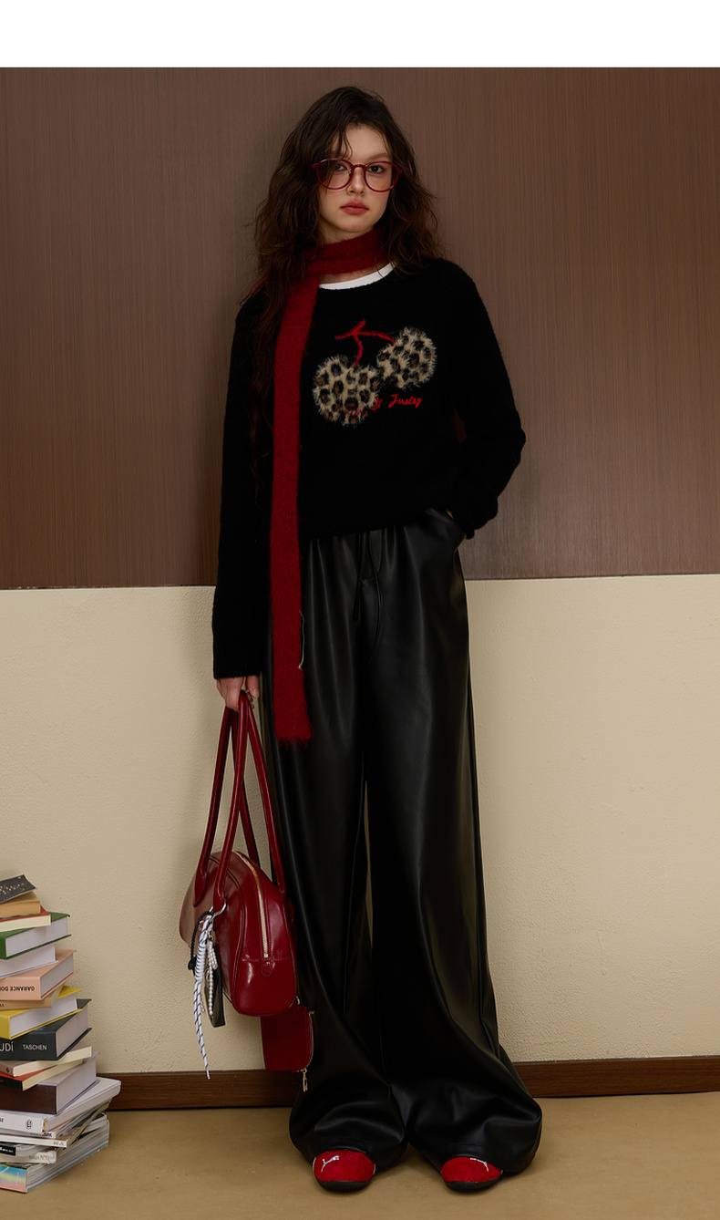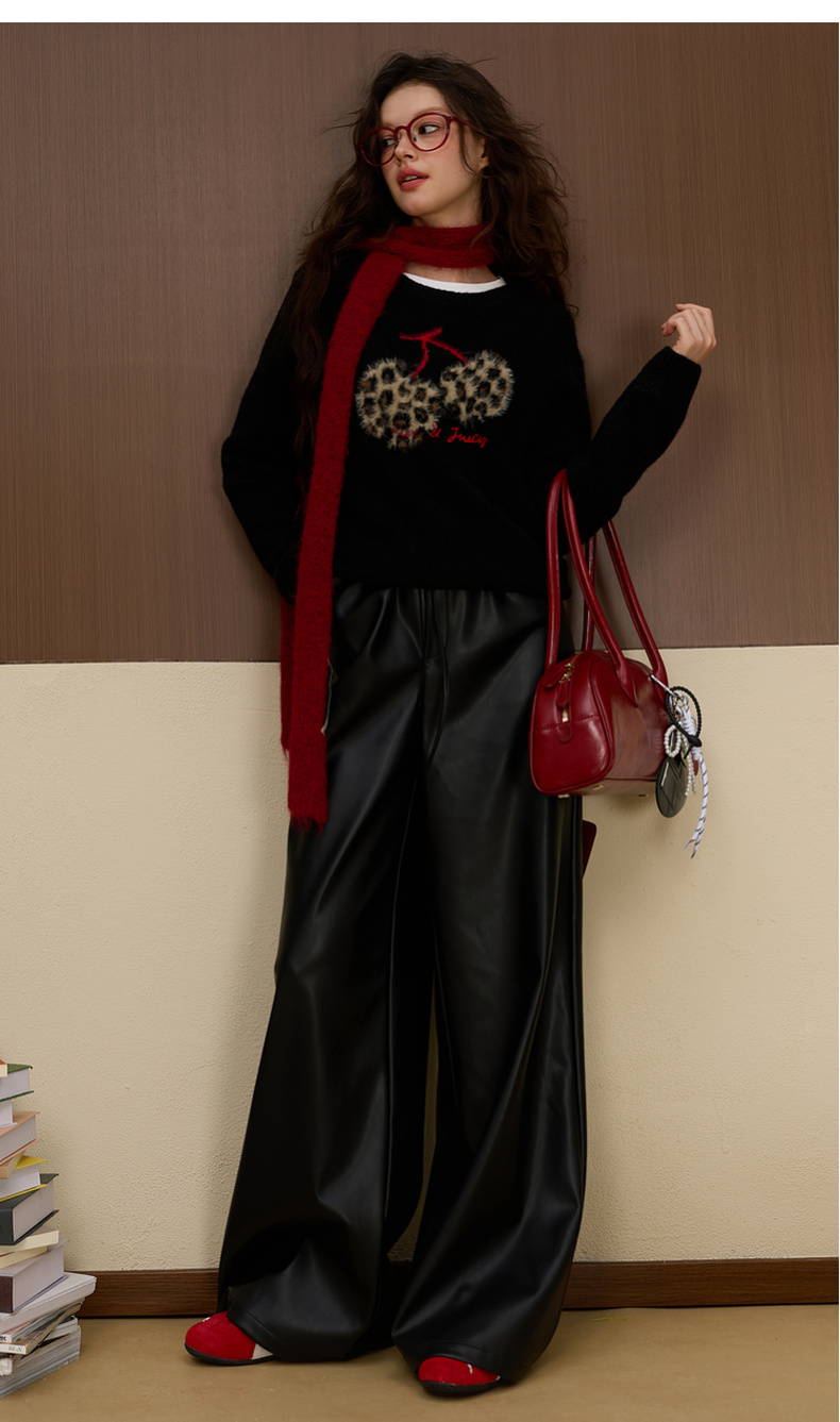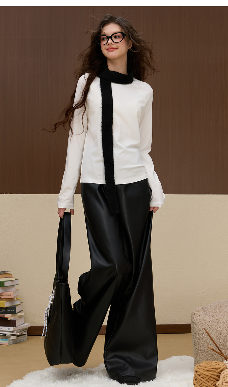 三彩独醒2025冬季新款皮裤休闲裤松紧腰宽松阔腿裤长裤F