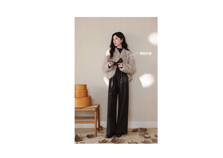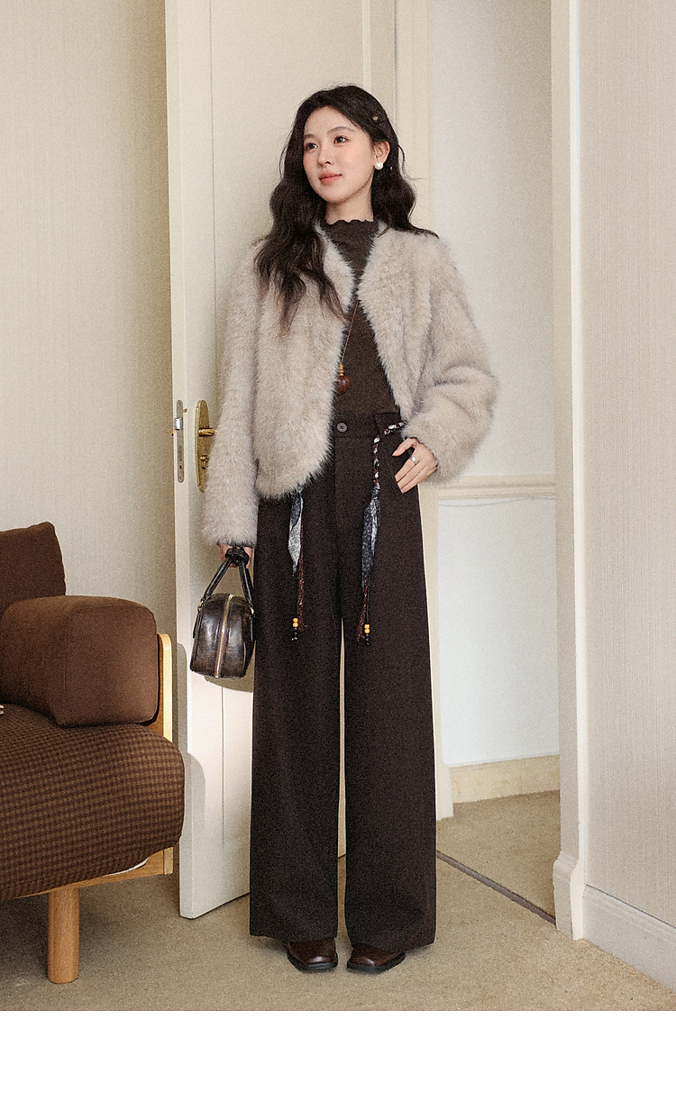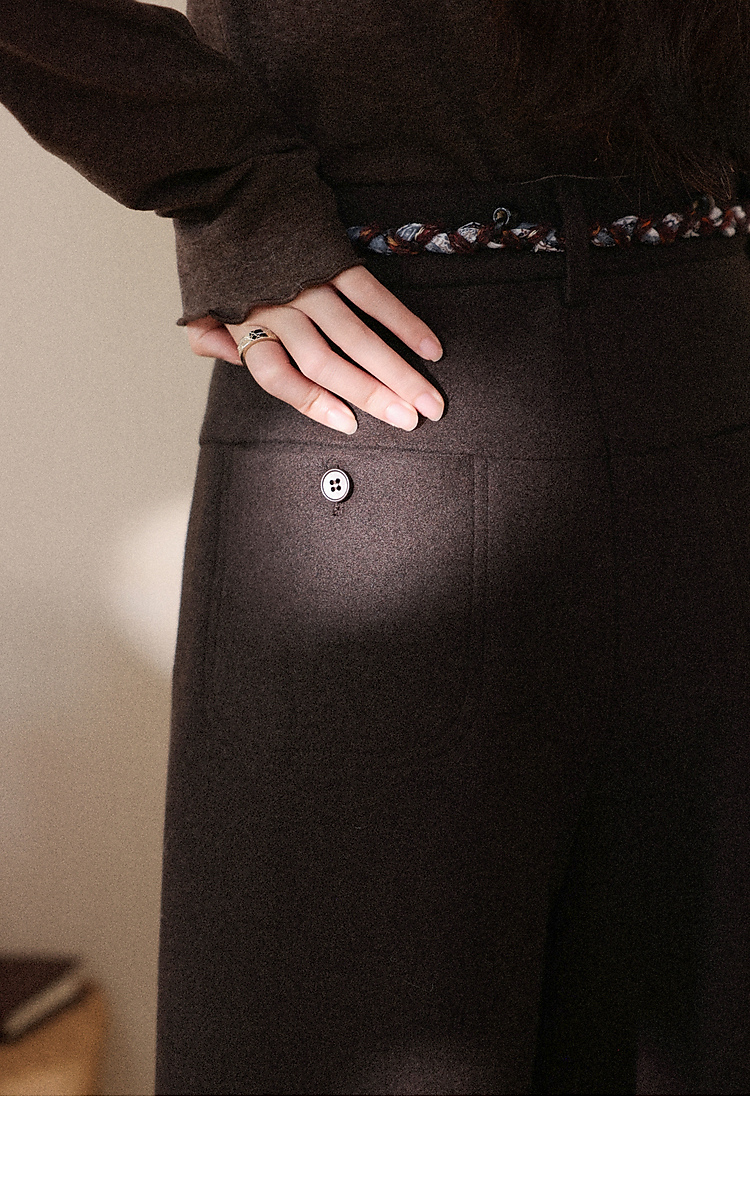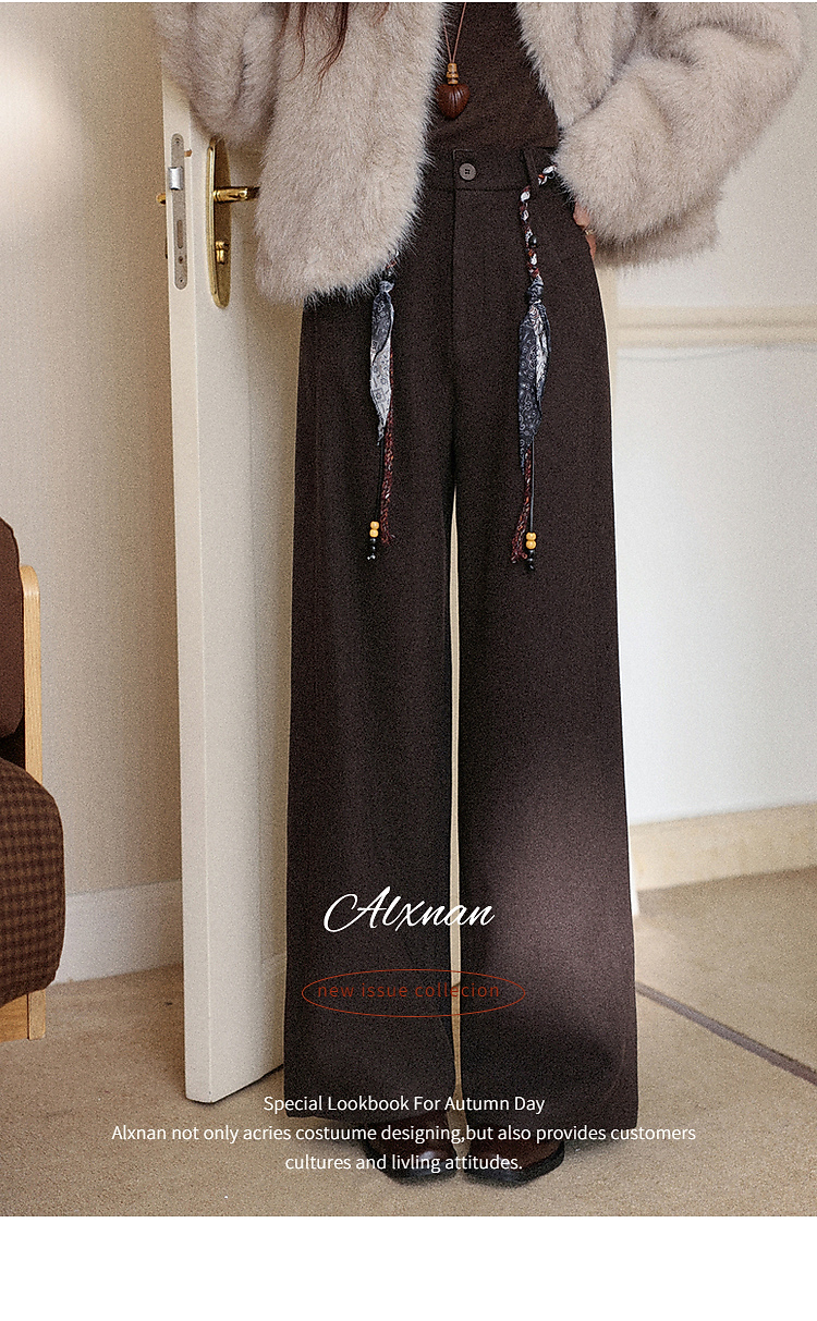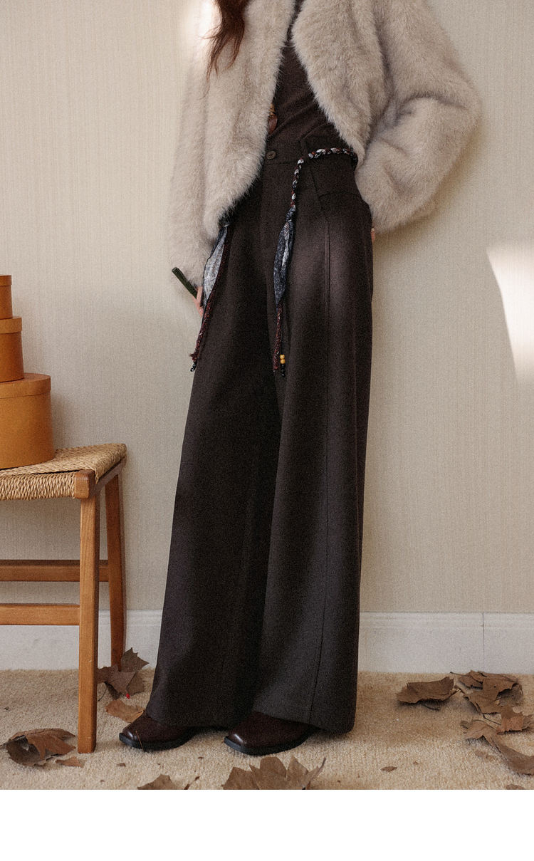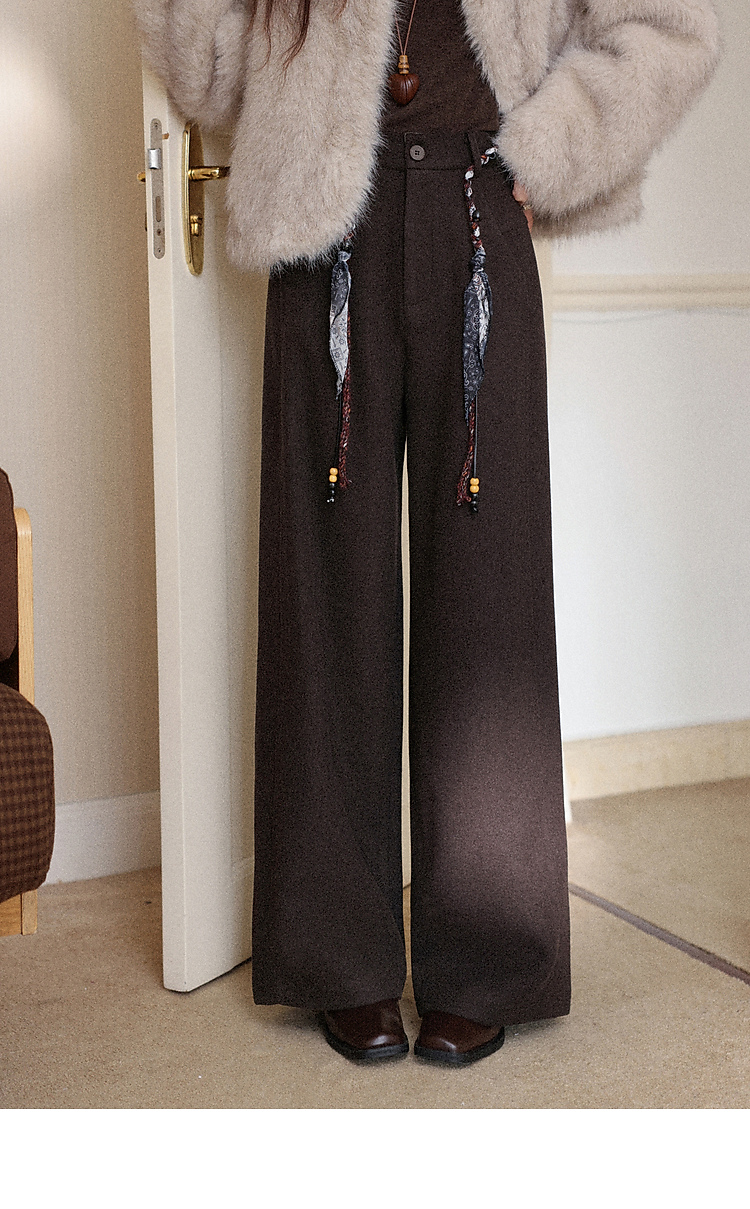 鹿向南「直腿公式」咖色垂坠感针织休闲裤女秋冬高腰直筒阔腿裤