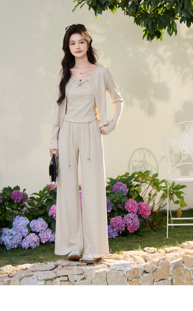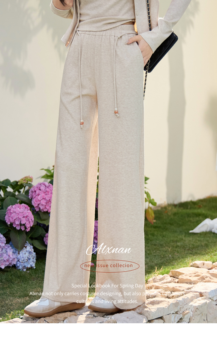 鹿向南「闲暇慵懒」燕麦色休闲裤女春季高腰直筒宽松垂坠感阔腿裤