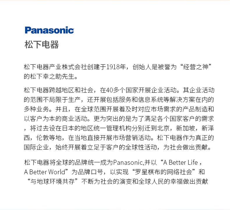 2、松下产品本身价值较高,拆封试用后价值贬损较大,故拆封后,如无质量问题,不支持七天无理由退换货,敬请谅解!官方售后维保!