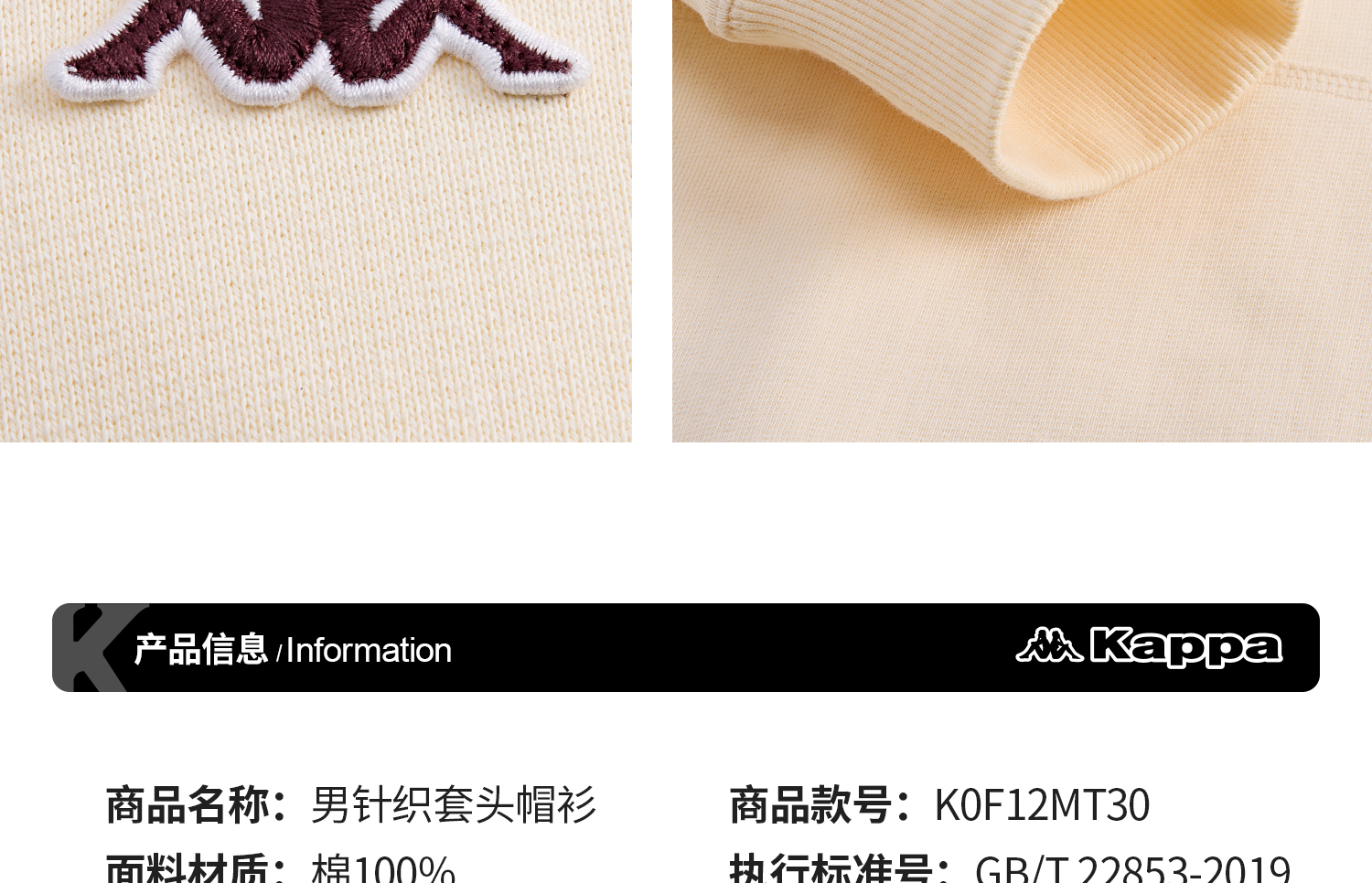 Kappa卡帕背靠背男款针织套头帽衫复古纯棉运动长袖上衣休闲卫衣K0F12MT30