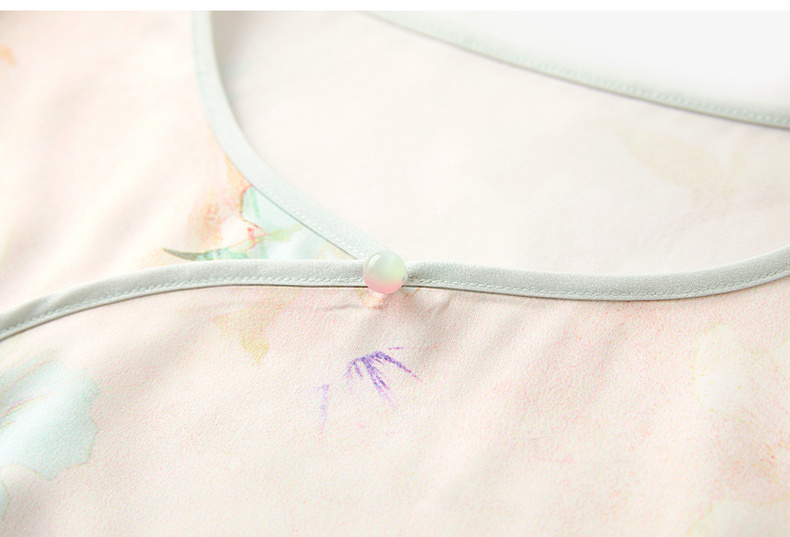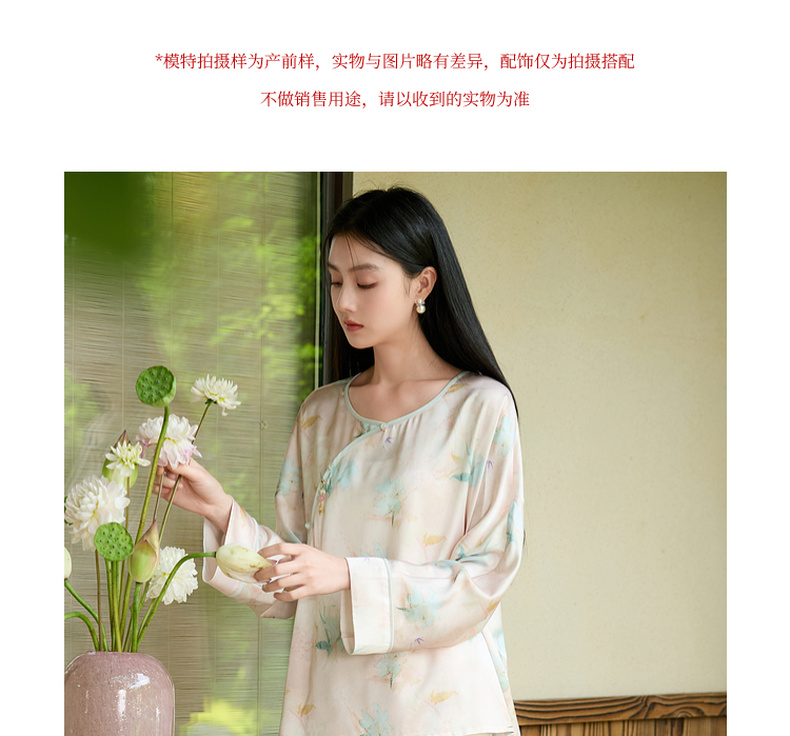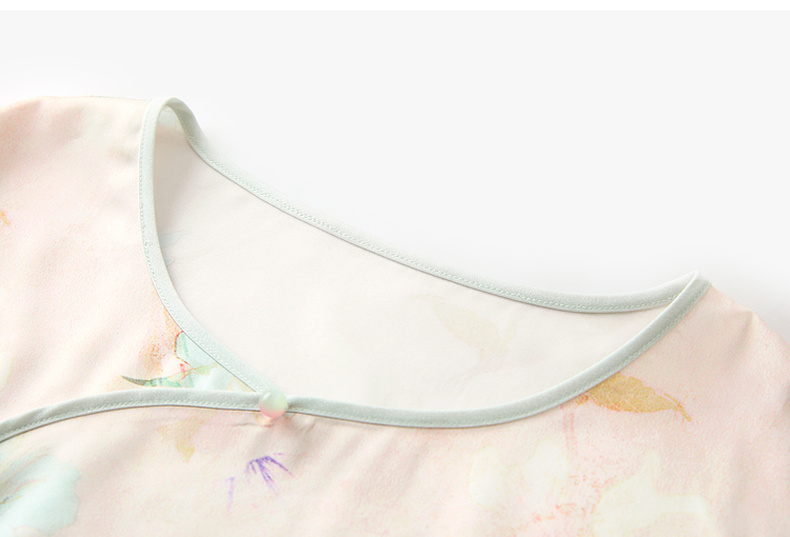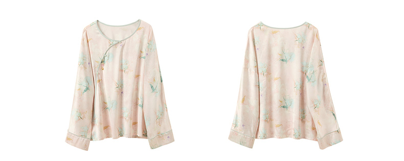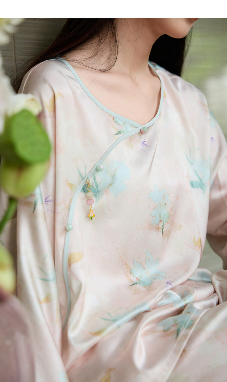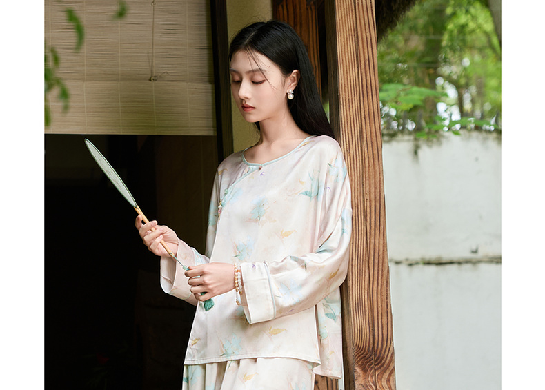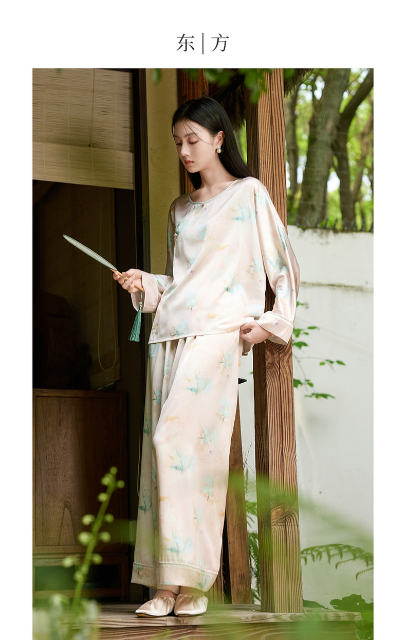 三彩【悠悠夏梦】2025夏季新款家居服套装长袖斜襟小衫长裤C