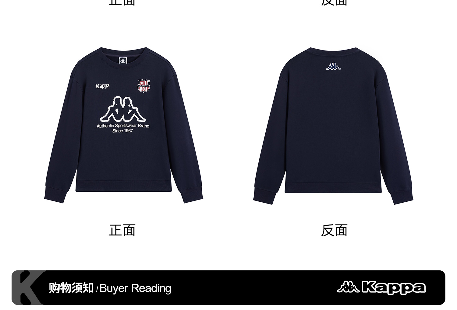 Kappa卡帕背靠背圆领运动卫衣女春秋新款休闲上衣男针织套头衫潮K0F12WT05