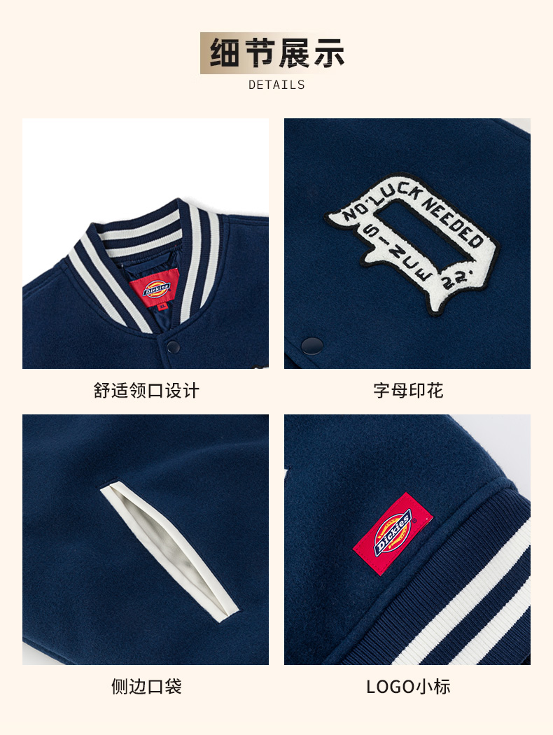 Dickies棉服短款棉服男女情侣复古撞色棒球服宽松百搭夹棉厚外套DK0A87E3