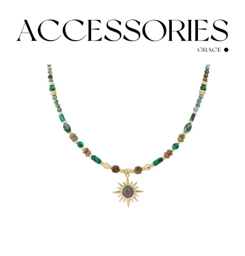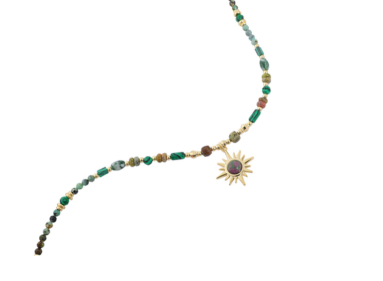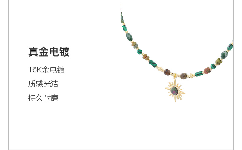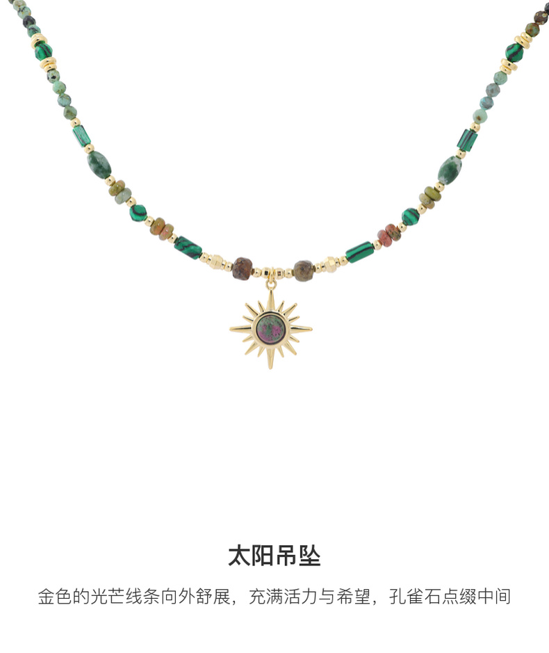 【孔雀石】三彩2025新款太阳项链花绿石串珠复古自然野趣度假复古