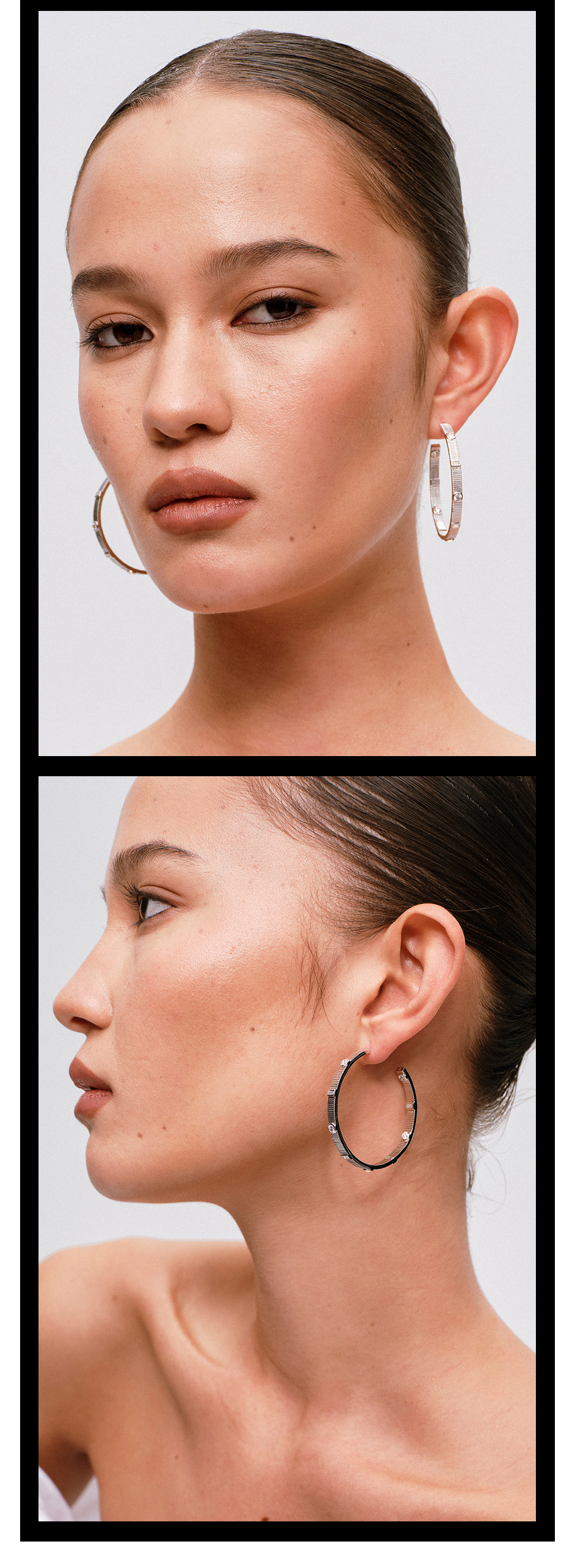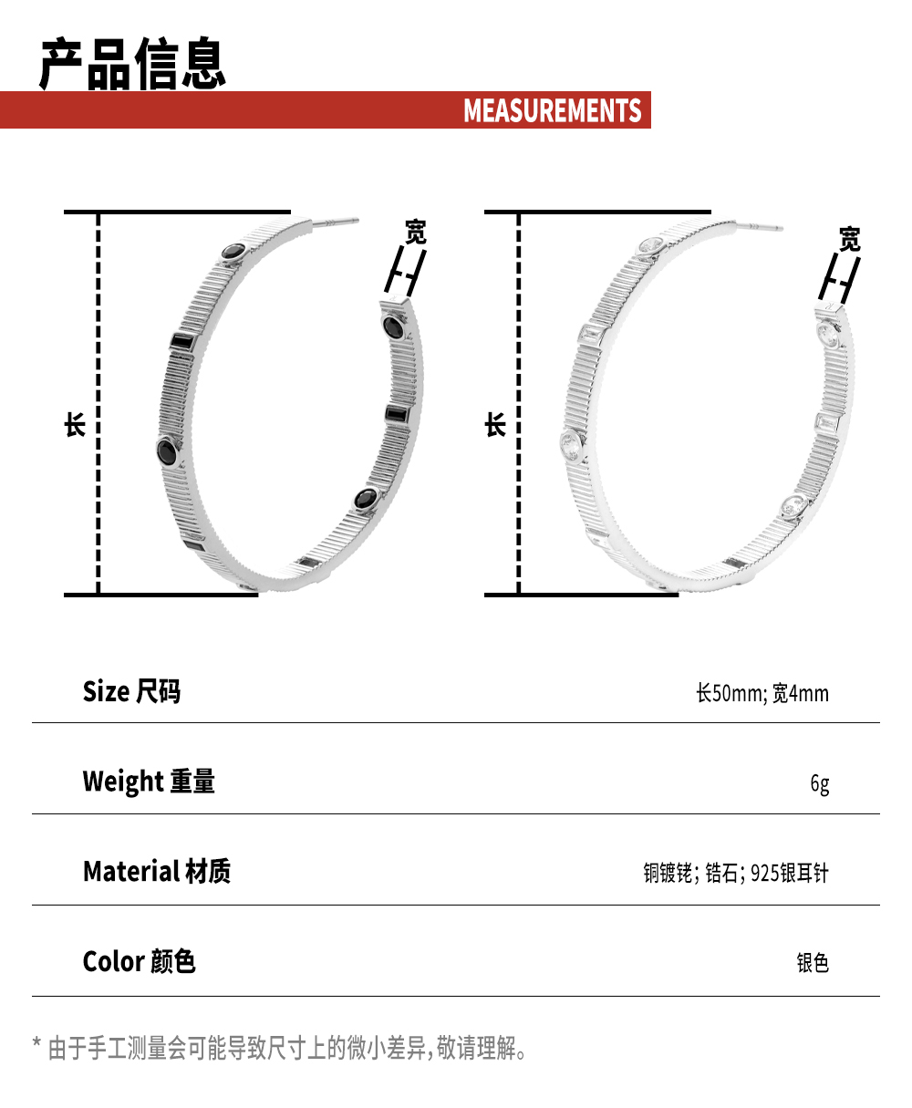 TR她热 星轨 银色横纹黑白锆石轻奢设计感百搭925银针耳环大耳圈