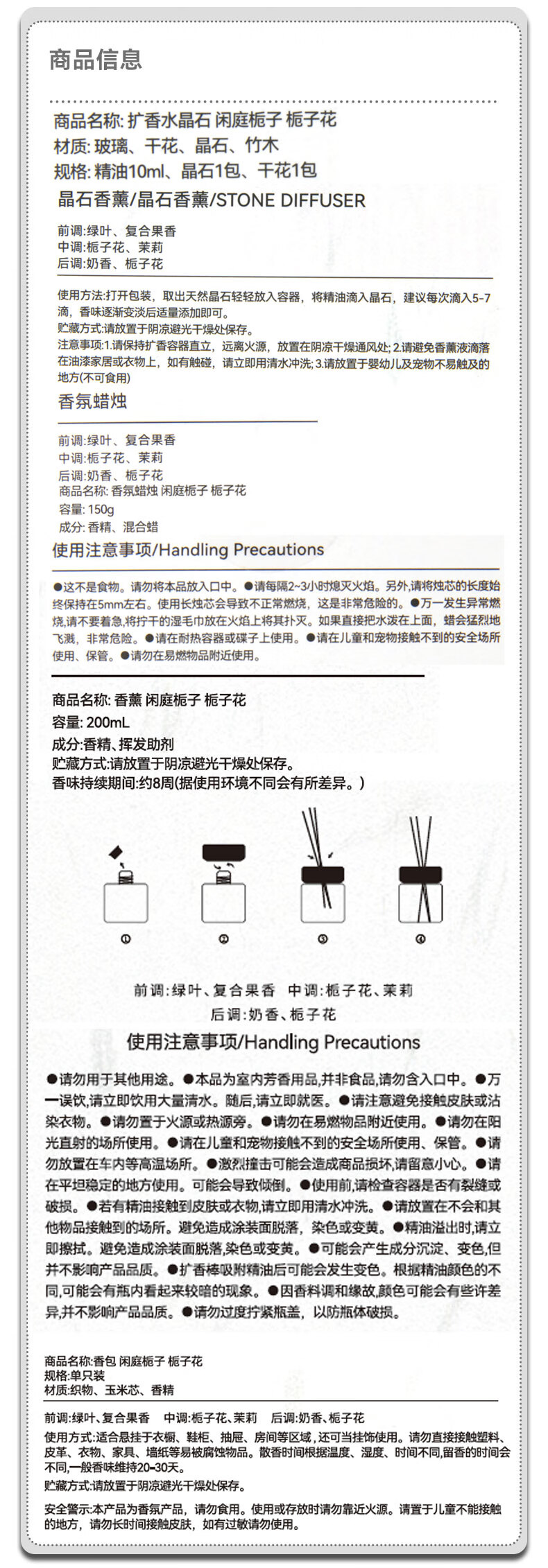 香薰摆件扩香水晶石香氛蜡烛无货腾条闲庭栀子栀子花