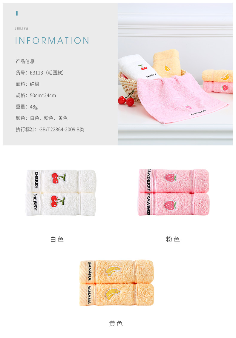 洁丽雅(Grace)纯棉刺绣卡通童巾4条 E3113颜色随机