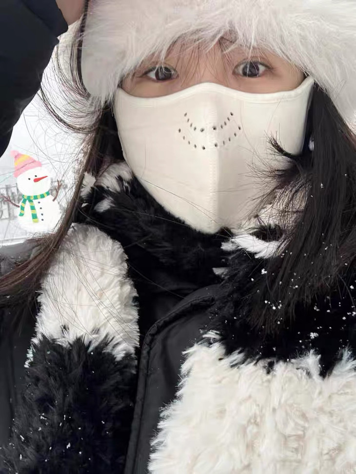 头围适配度拉满:54-59CM 的头围都能戴 两边还有调节绳, 大头、小头都能调到最舒服的位置 再也不用担心 “口罩箍脑袋”~ 耳绳也是可调节的,怎么戴都不会勒出红印子 长时间戴也没压力~ 搭配羽绒服、大衣都很协调~