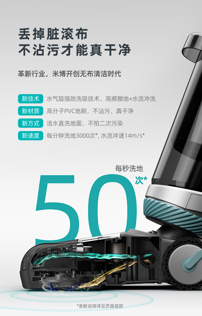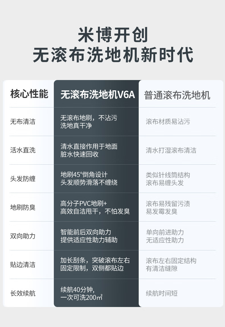 米博(Miboi)无滚布洗地机V6A家用洗拖吸一体拖地机扫地机电动拖把智能无线吸尘器
