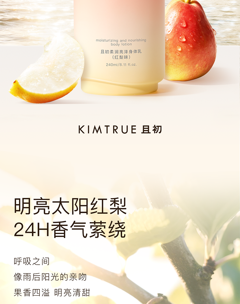 KIMTRUE且初 柔润亮泽身体乳(红梨味)240ml 太阳红梨身体乳