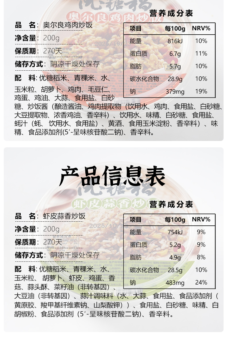 优糖稻 炒饭速食加热米饭常温预制炒饭碗装半成品炒饭懒人粗粮炒饭