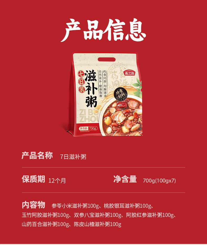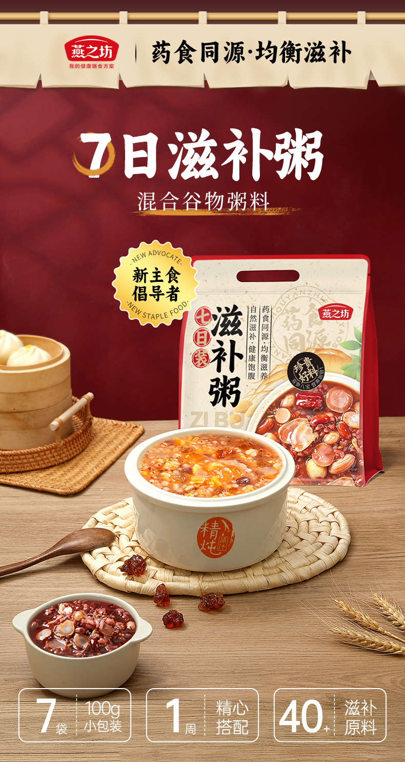 燕之坊七日粥100g*9袋 八宝粥米粗粮营养早餐粥料小包【七日不重样】
