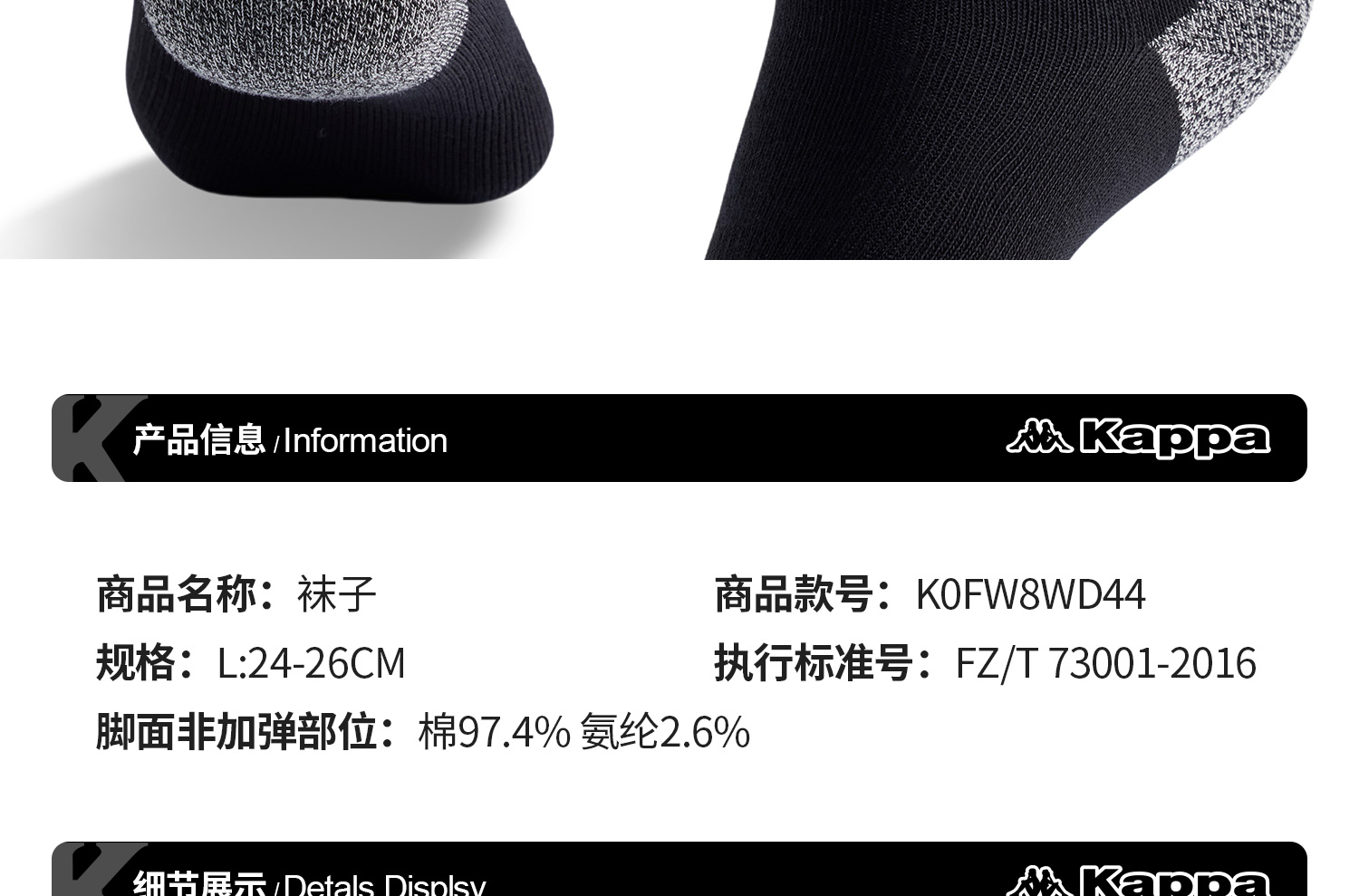 Kappa卡帕背靠背2024新款简约运动休闲低腰袜情侣跑步袜棉袜子男K0FW8WD44