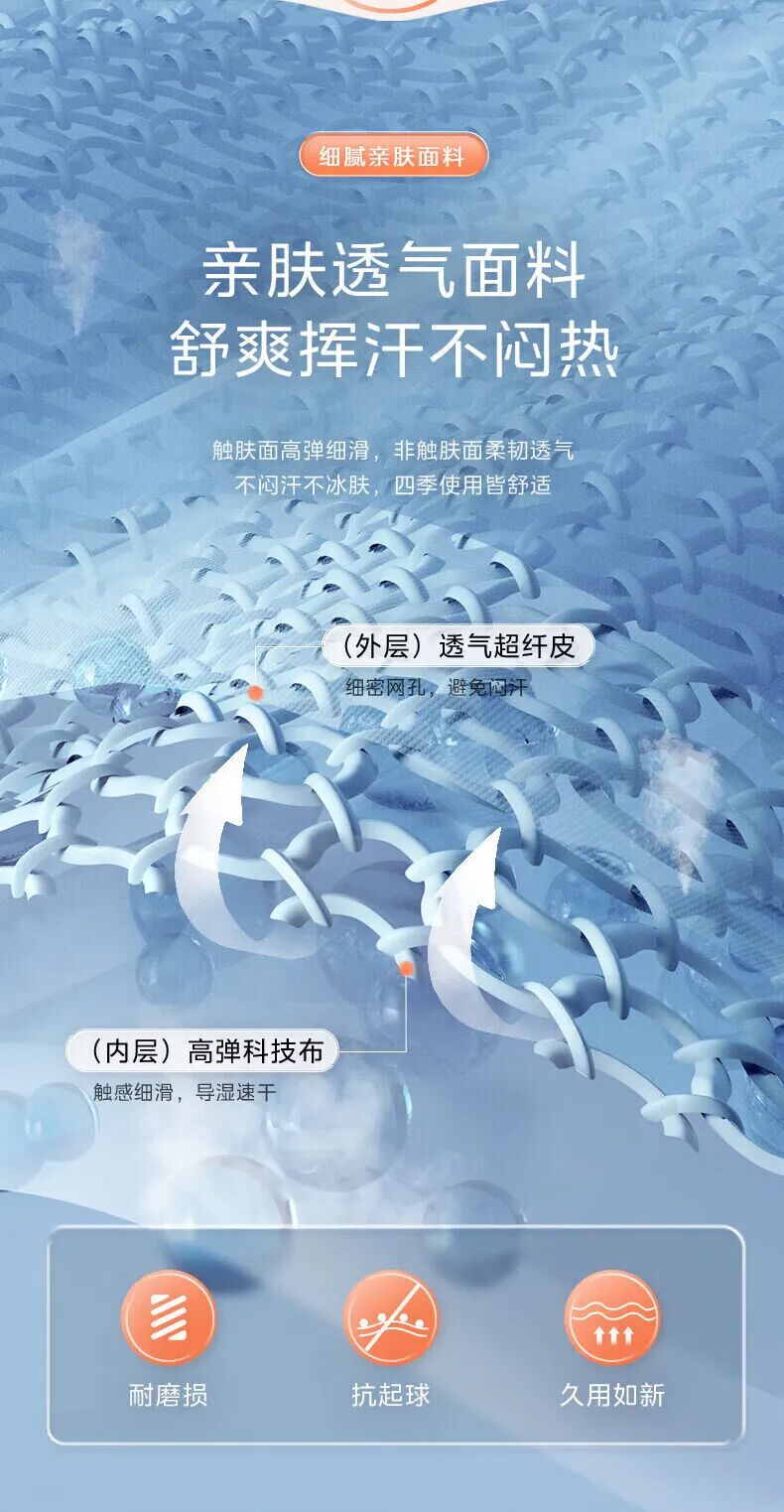 双管齐下,不闷汗也不会冰肤,无论冬天冷还是夏天热!