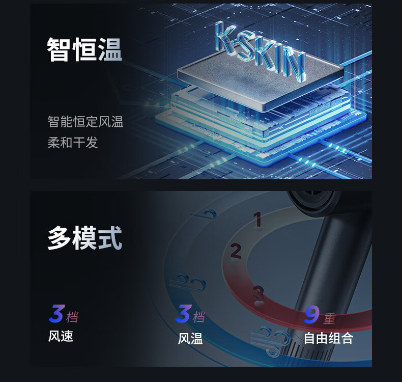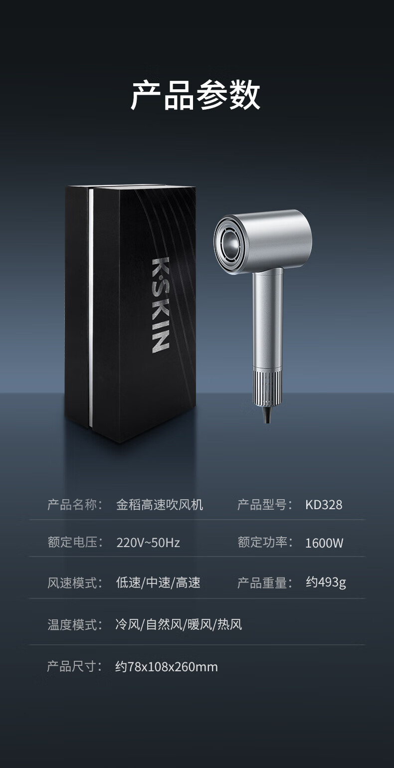 金稻 吹风机家用电吹风筒高速负离子大风力速干低噪音吹头发恒温 KD328