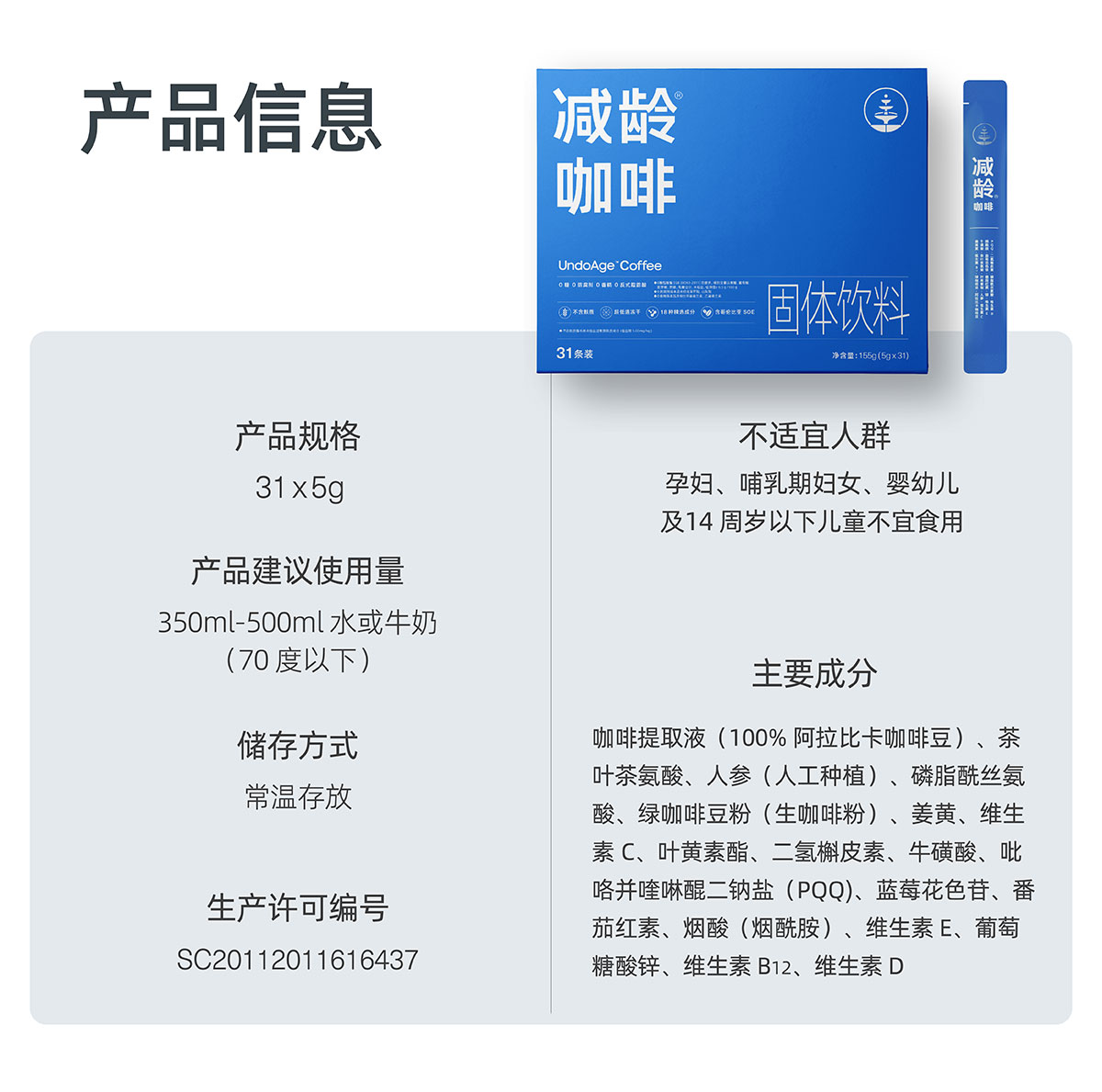 【6 盒装】减龄咖啡 姜黄蓝莓叶黄素PQQ 0糖黑咖啡 18 种营养成分 阿拉比卡咖啡豆 31条/盒 赠吸管保温杯