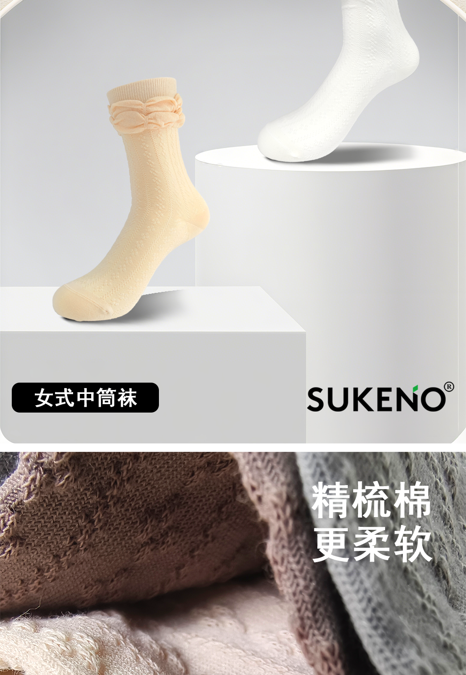 SUKENO休闲风极简风森系纯色中筒中筒袜常规夏季欧若智性风