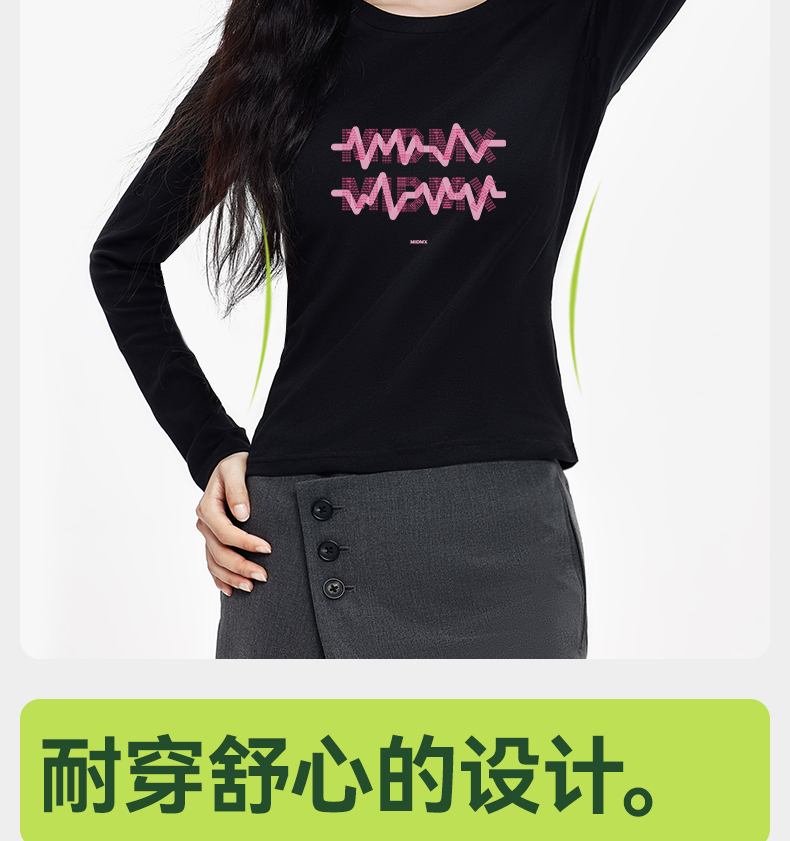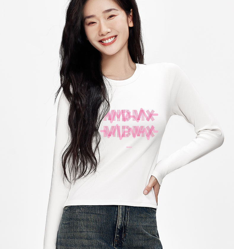 「棉的美学」 正肩显瘦高弹力长袖T恤女字母印花秋季舒适百搭上衣