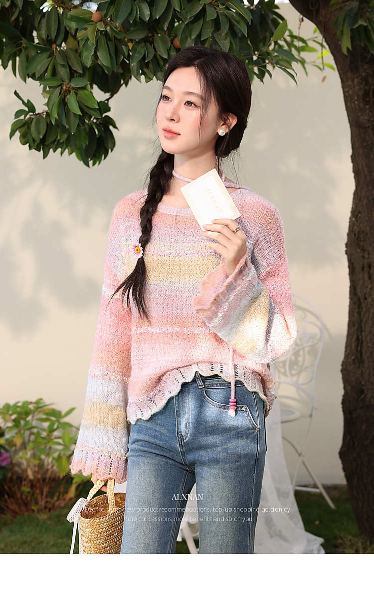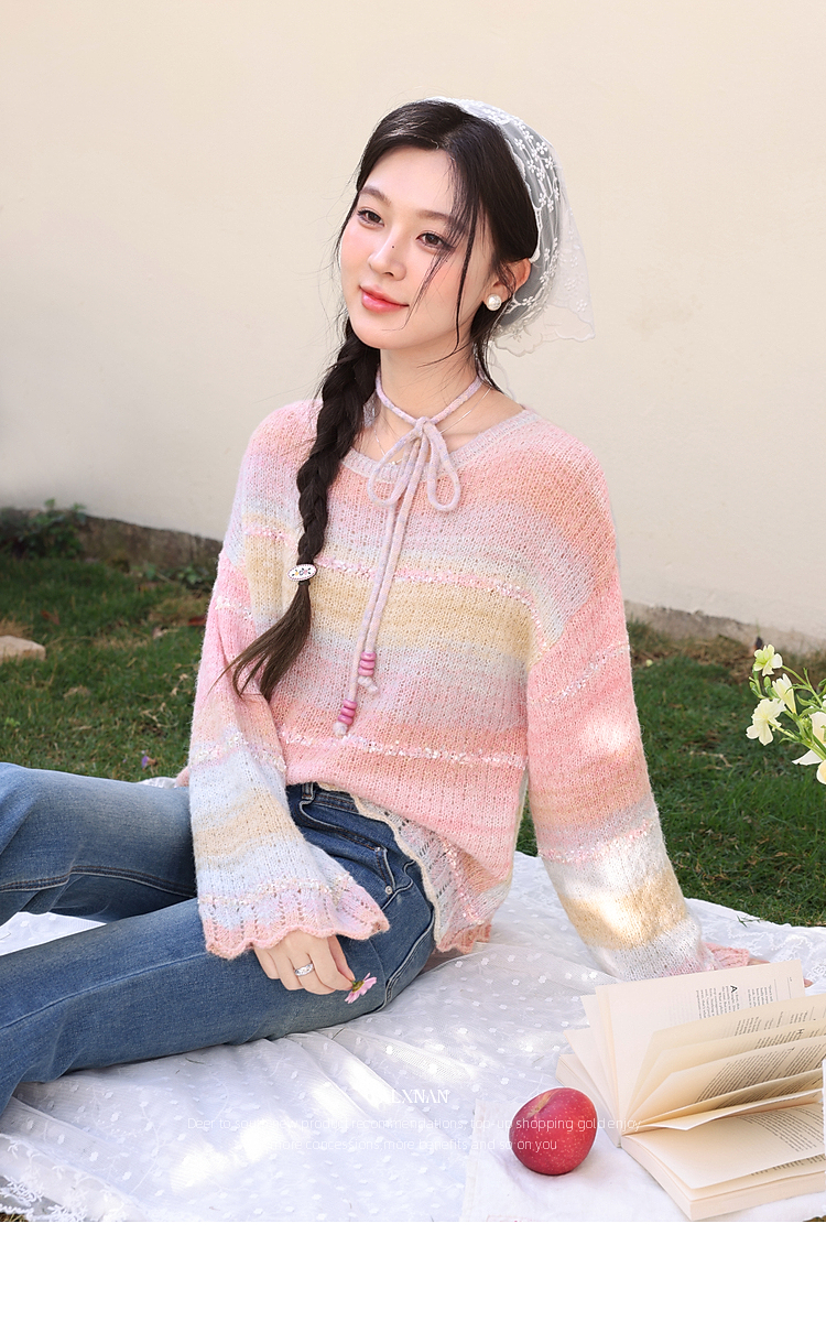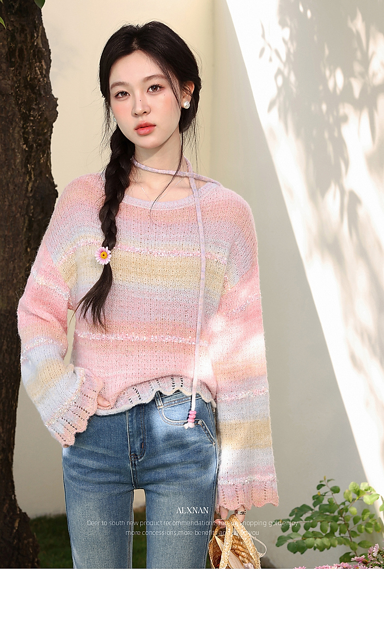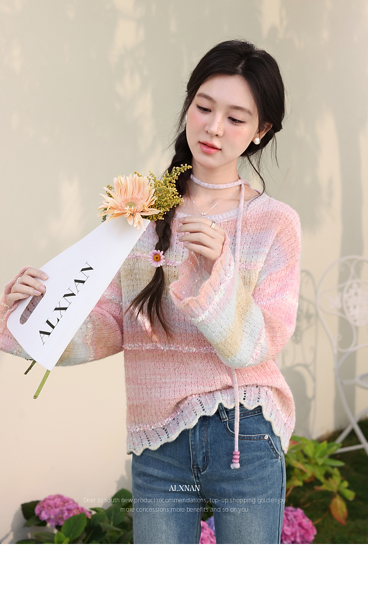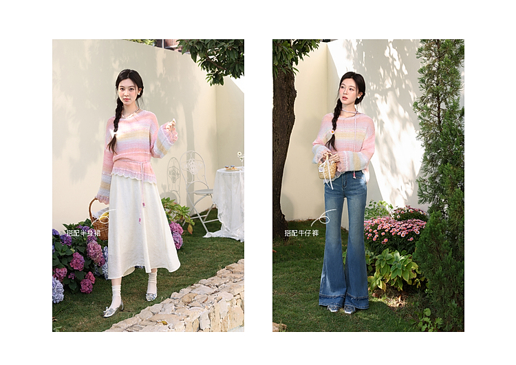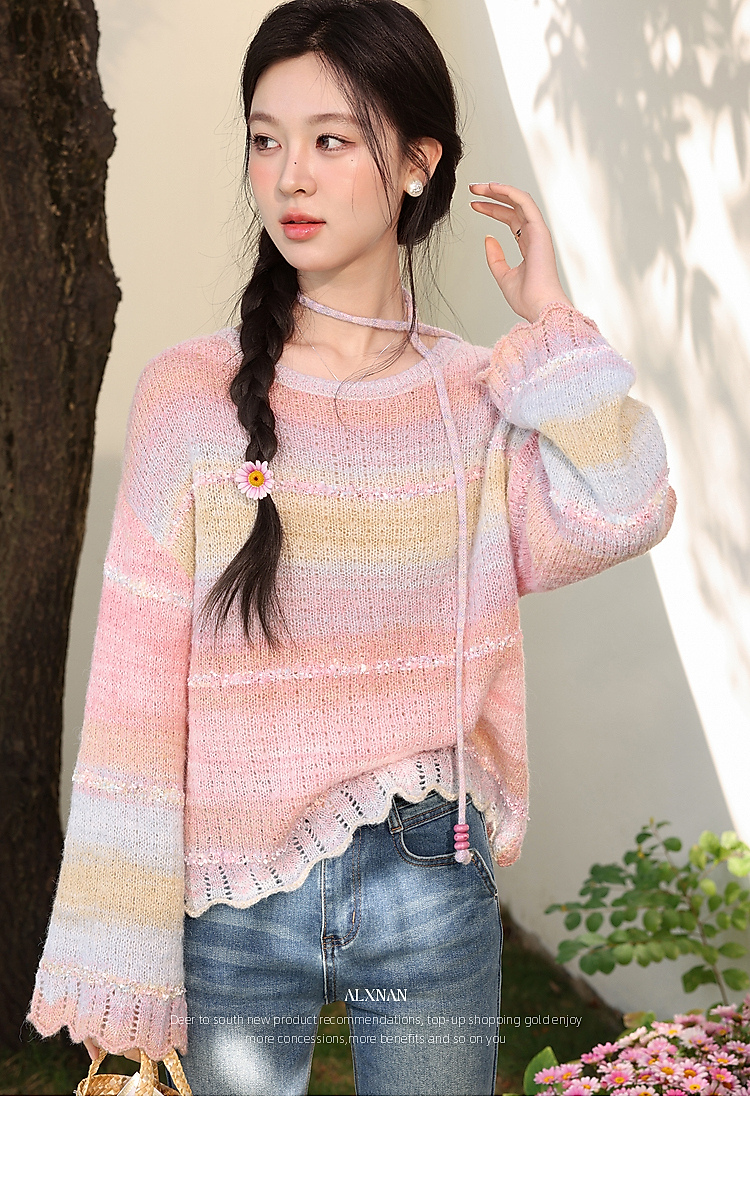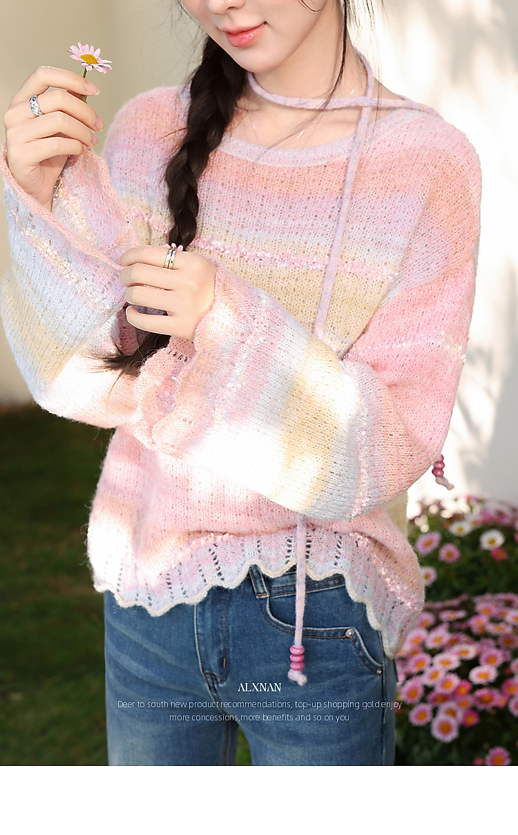 鹿向南「编织彩系」粉色慵懒风针织衫女春季高级洋气薄款罩衫上衣
