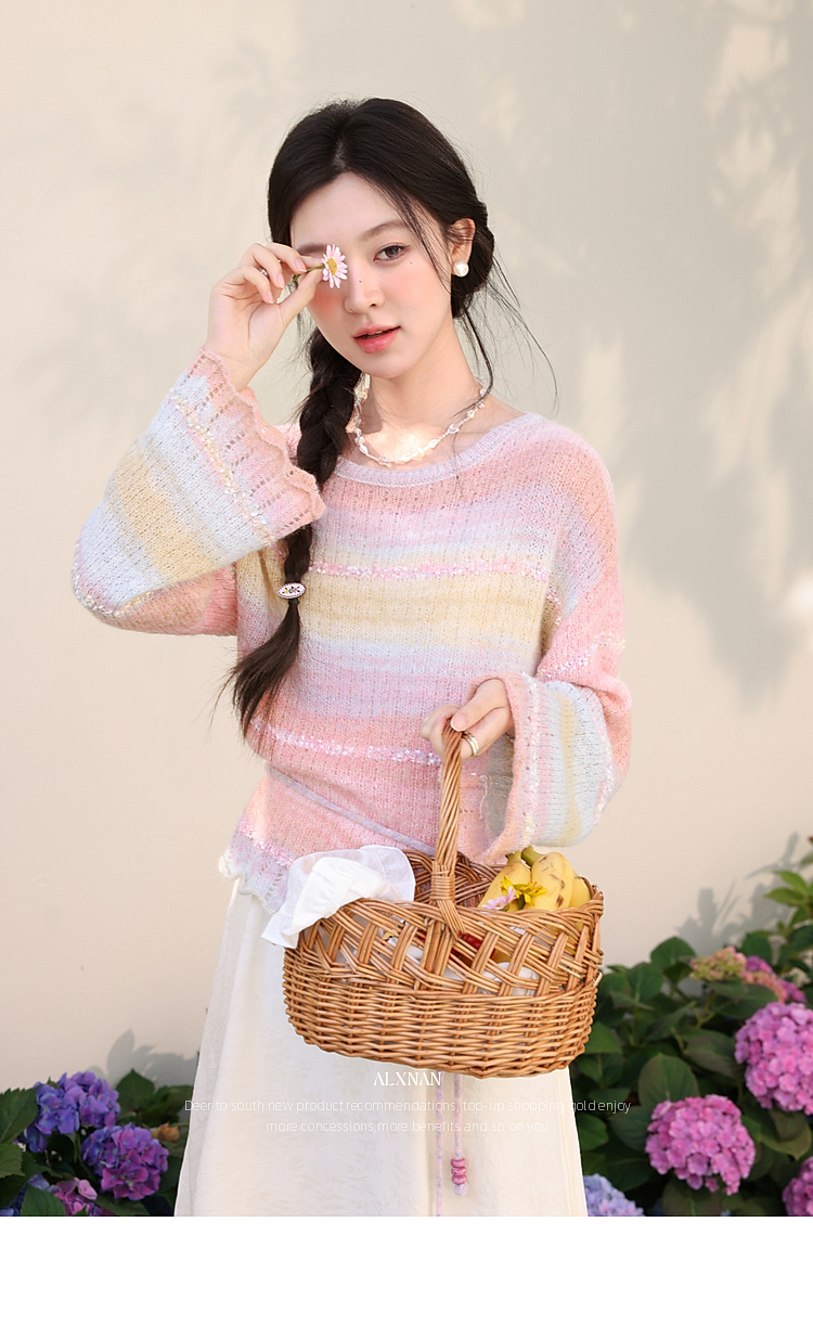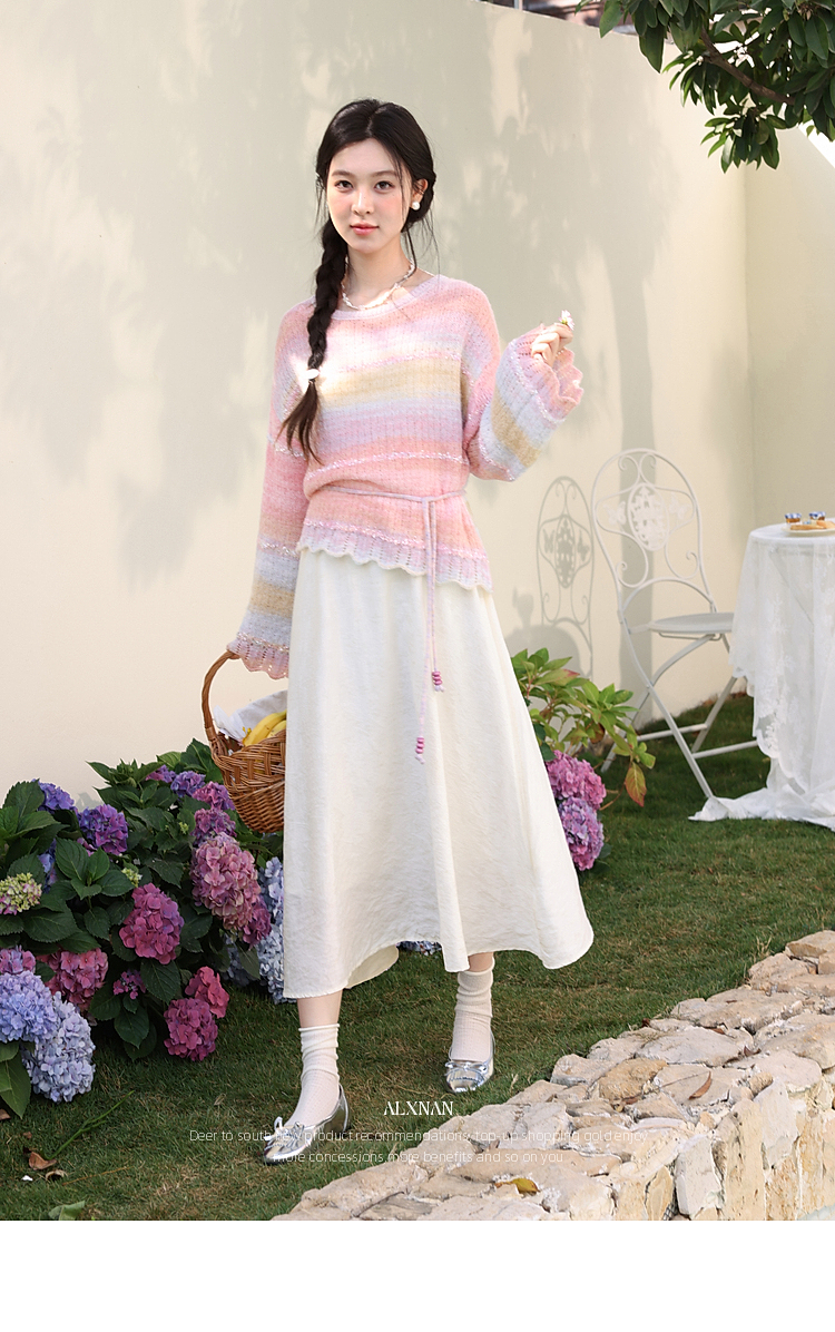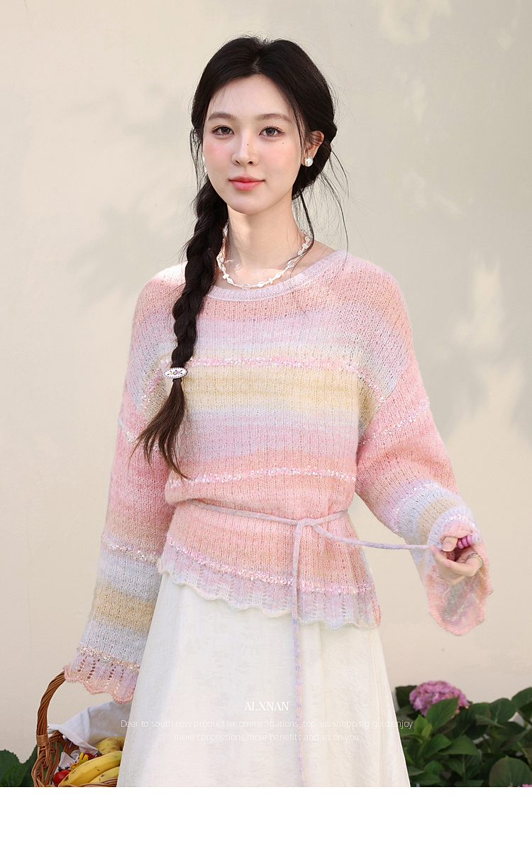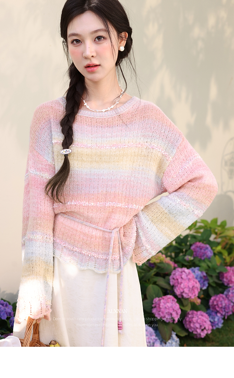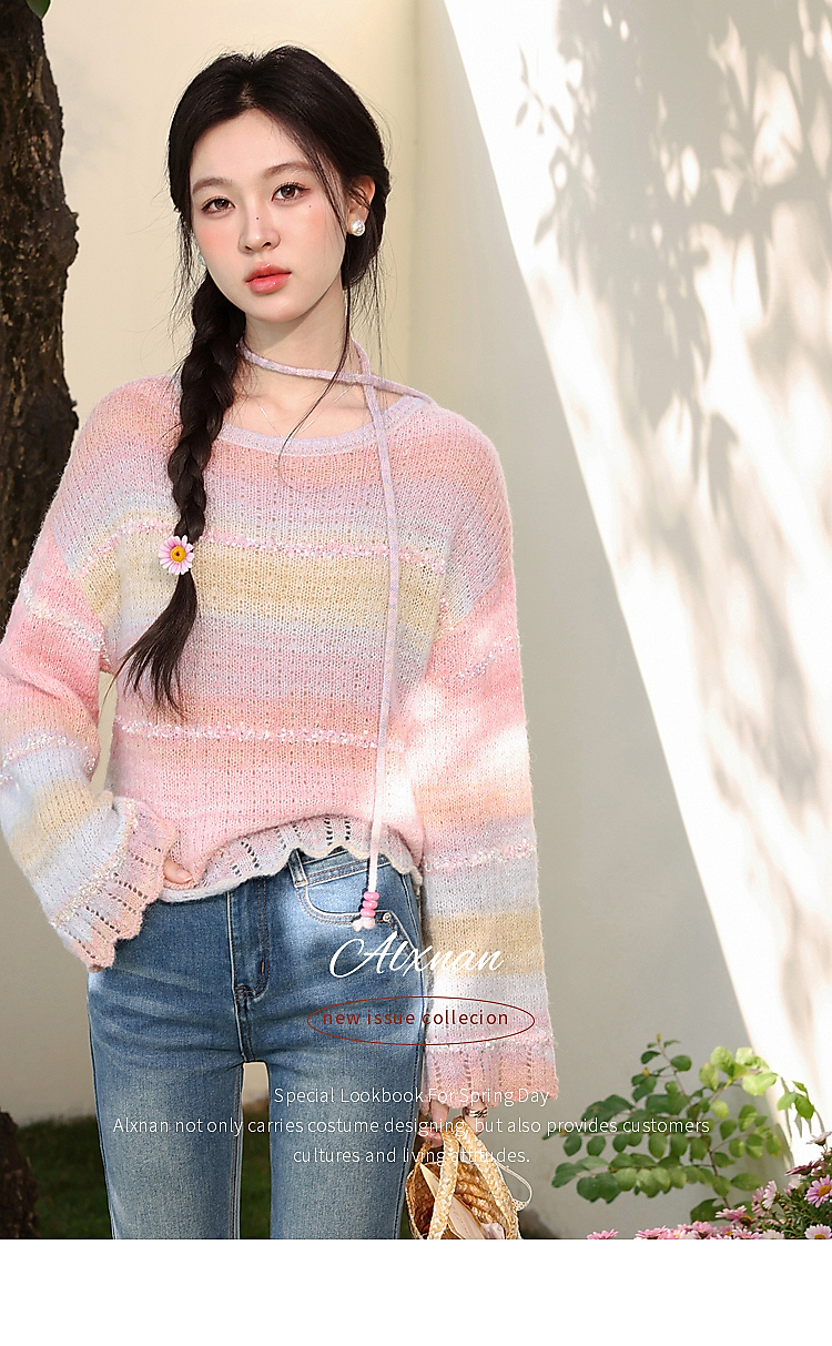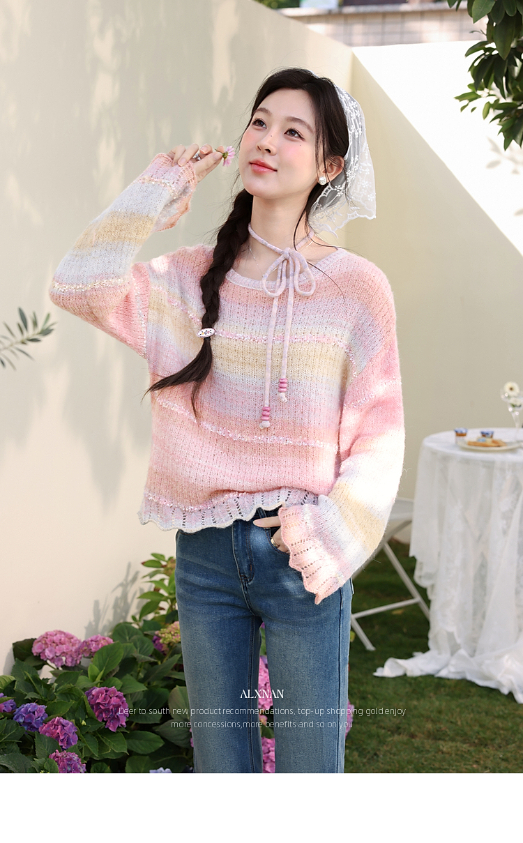 鹿向南「编织彩系」粉色慵懒风针织衫女春季高级洋气薄款罩衫上衣