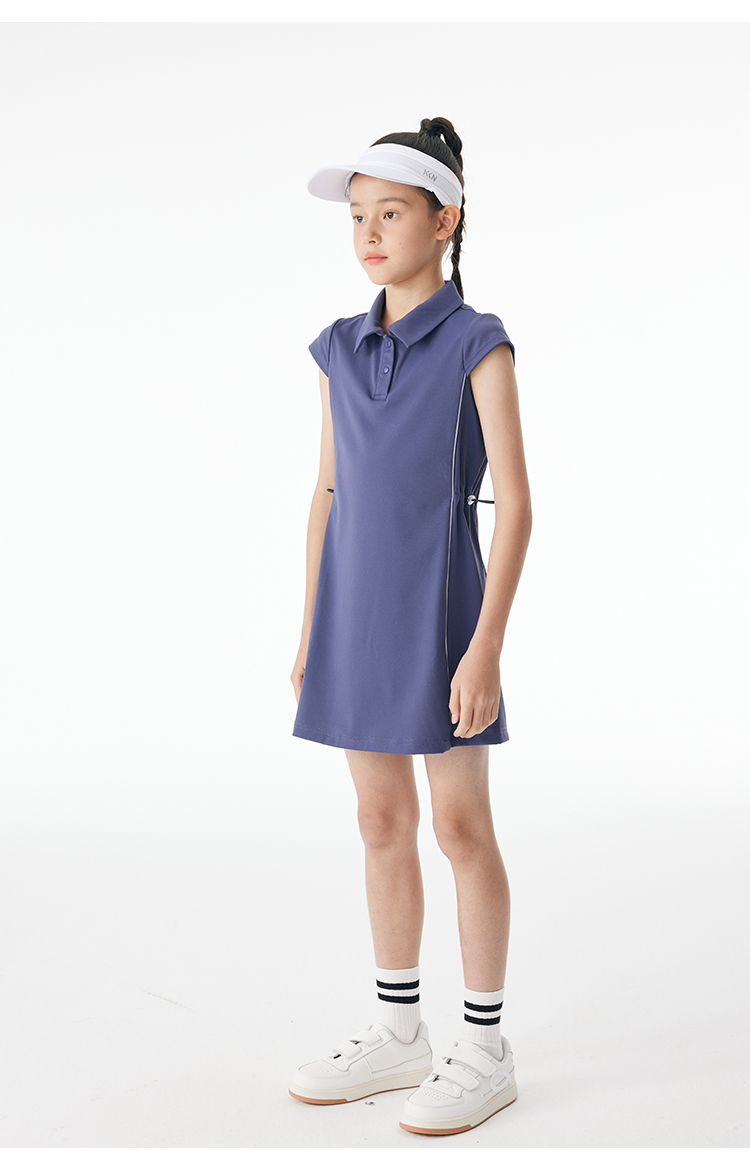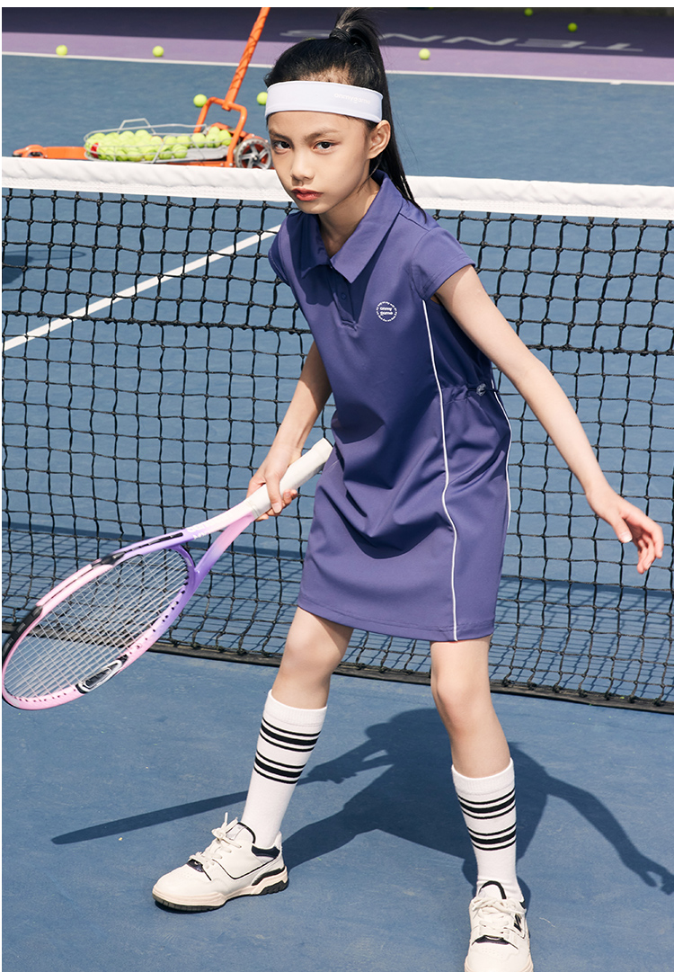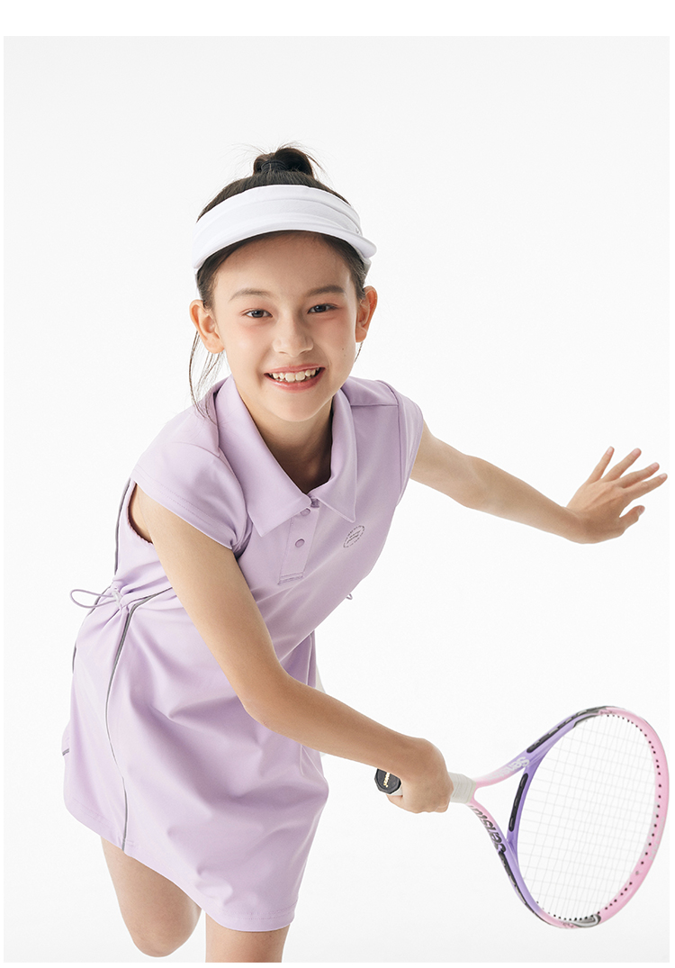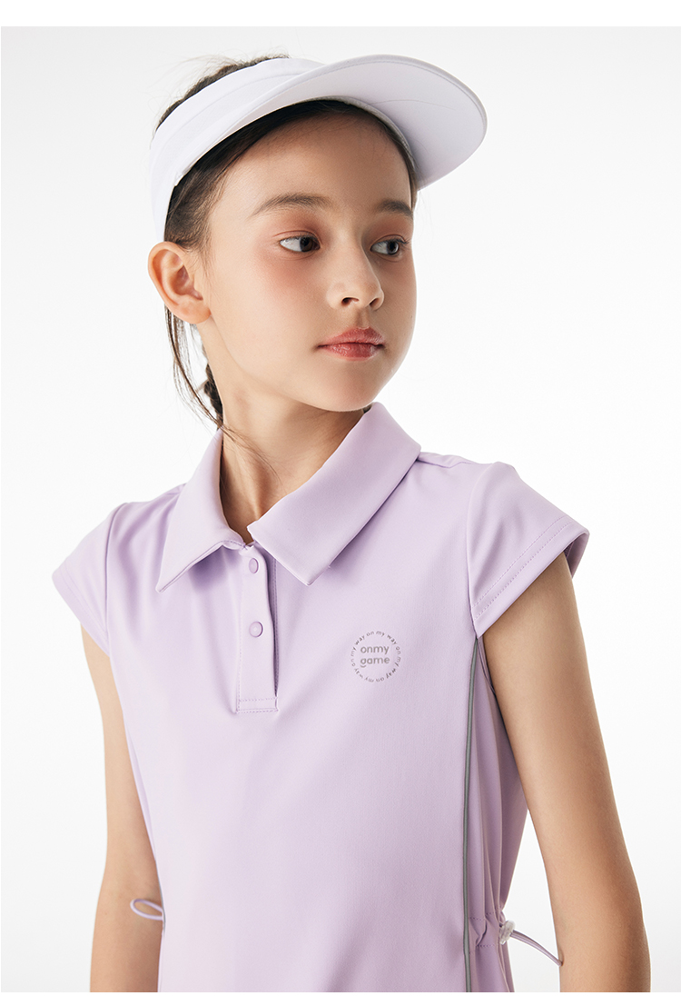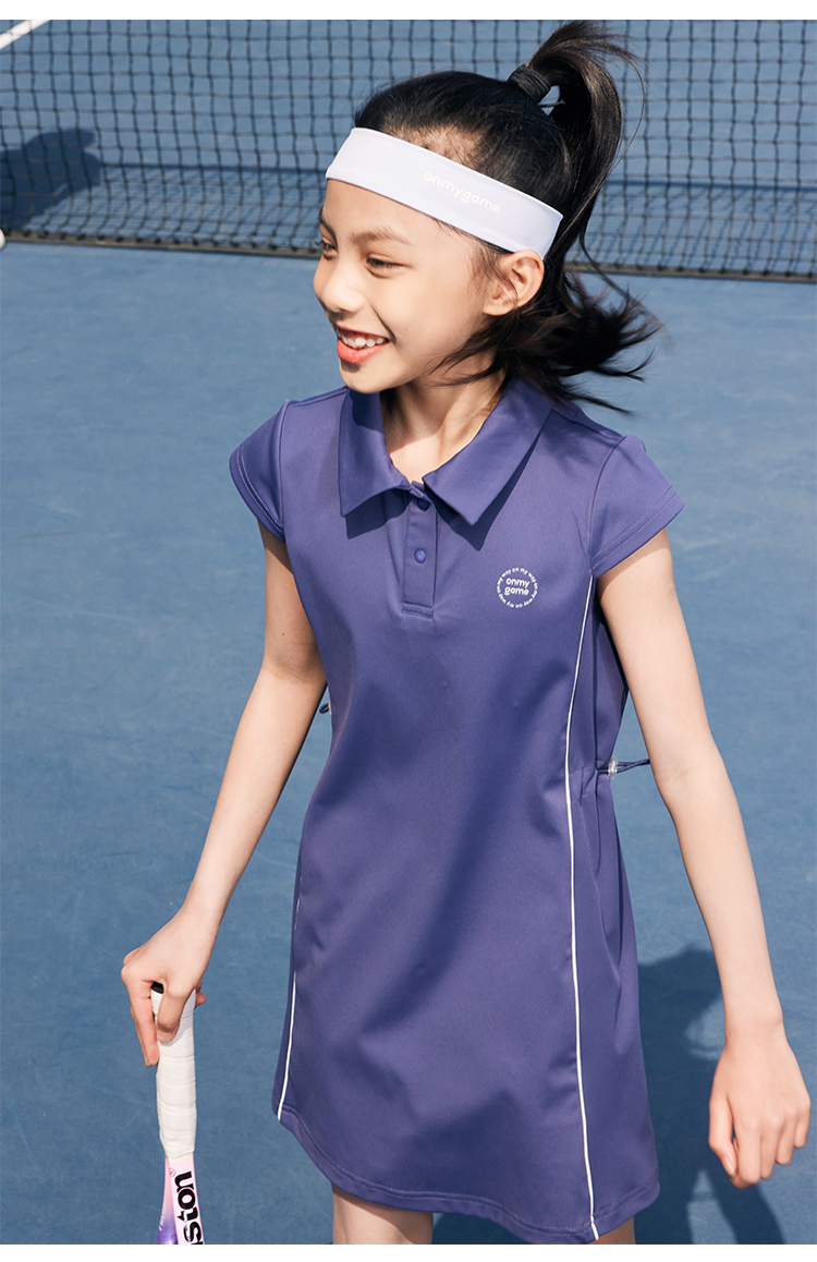 onmygame 儿童网球裙夏季运动裙女童短袖连衣裙弹力POLO裙子