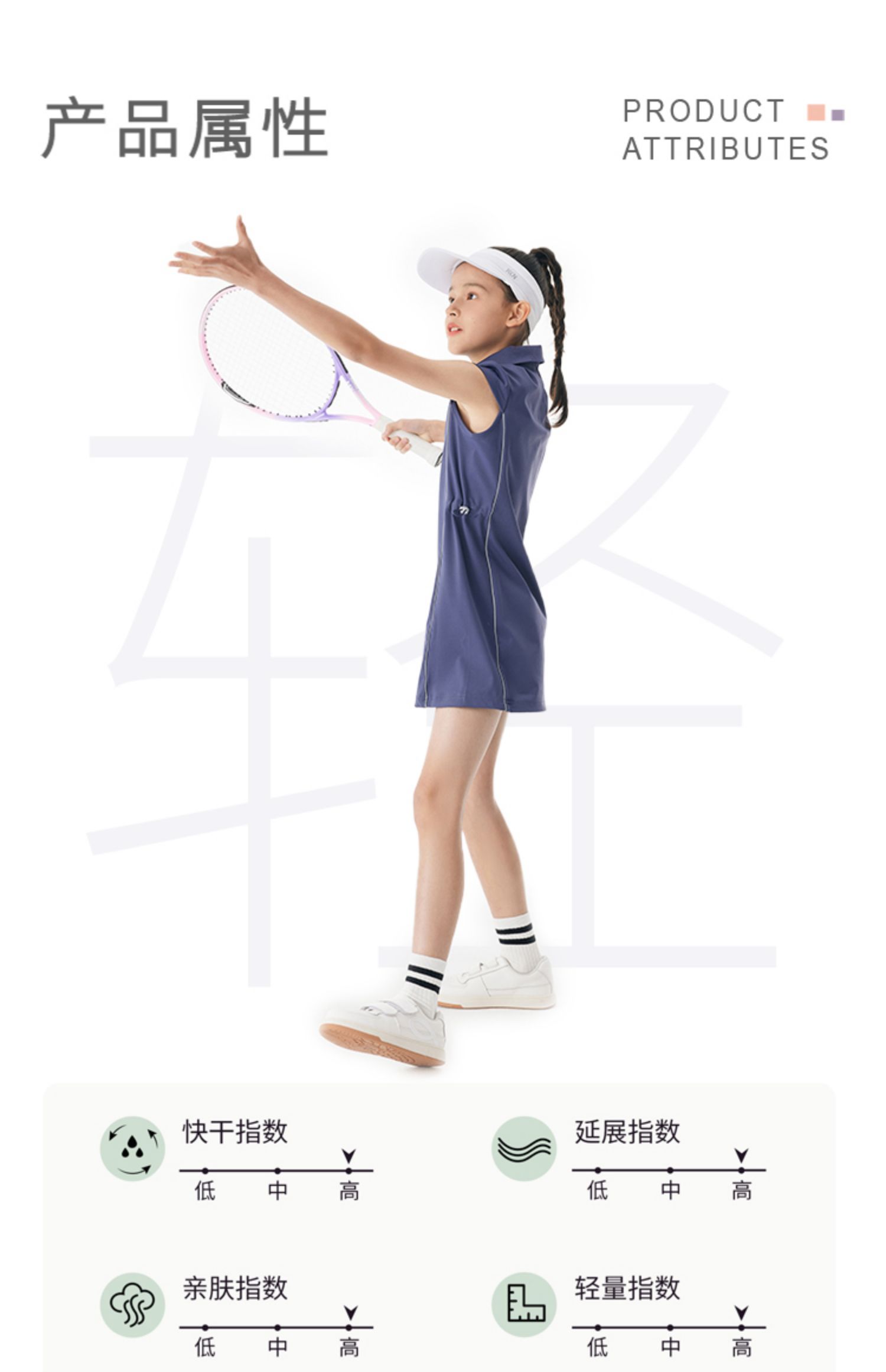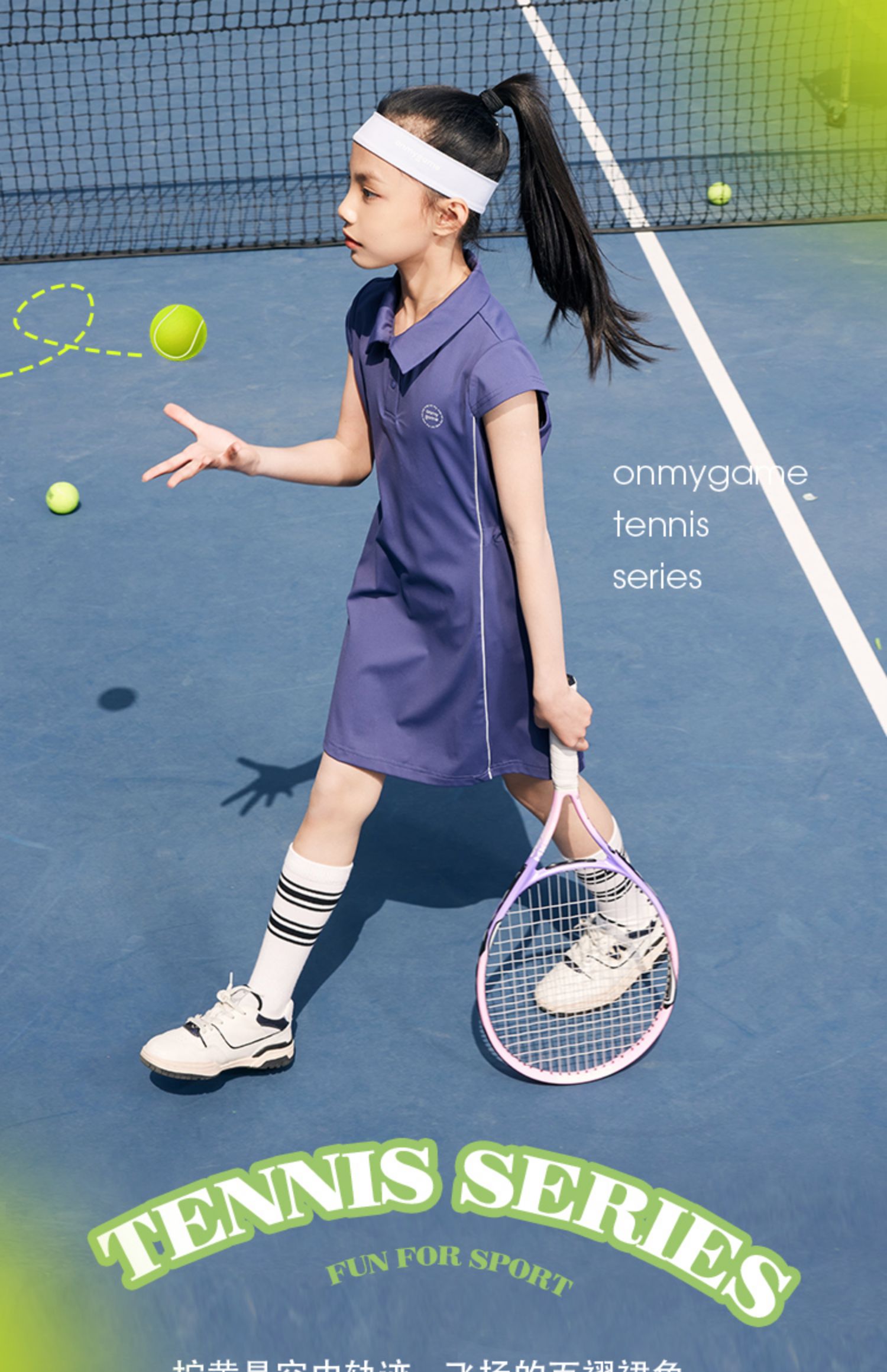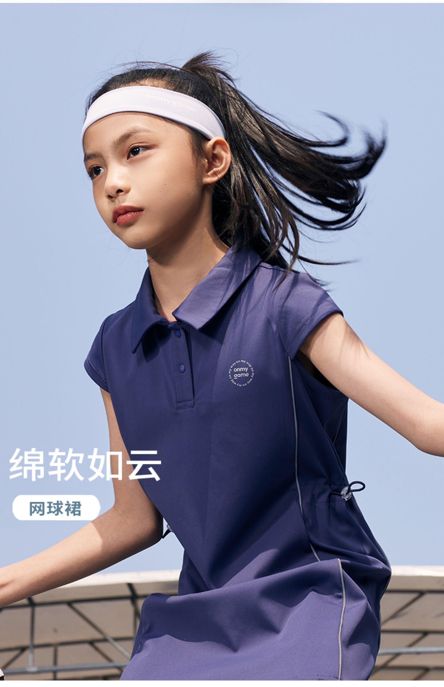 onmygame 儿童网球裙夏季运动裙女童短袖连衣裙弹力POLO裙子