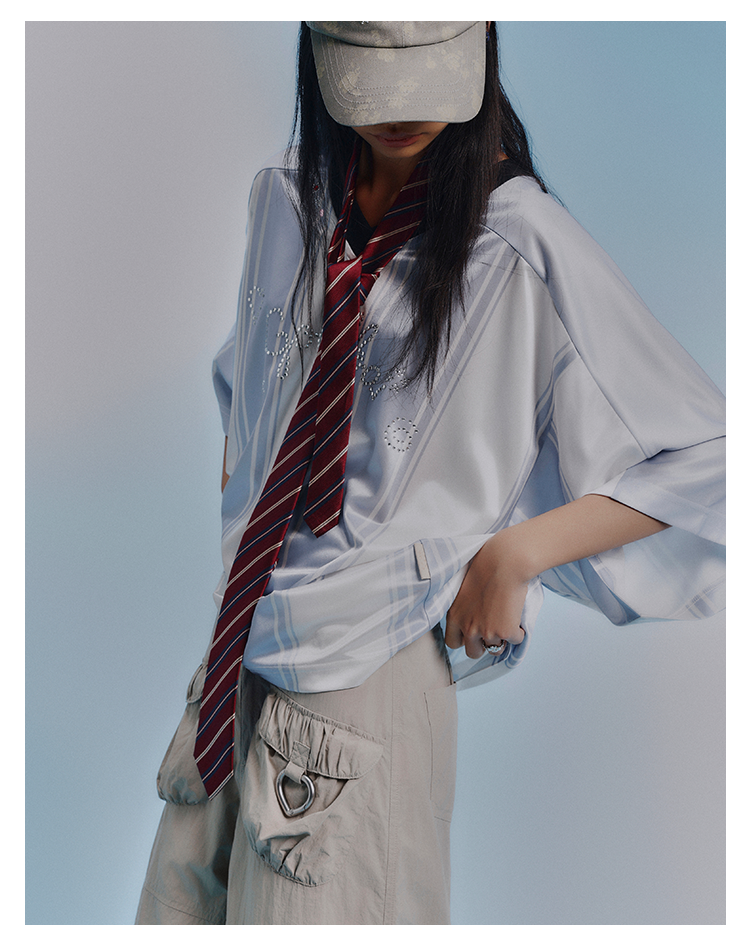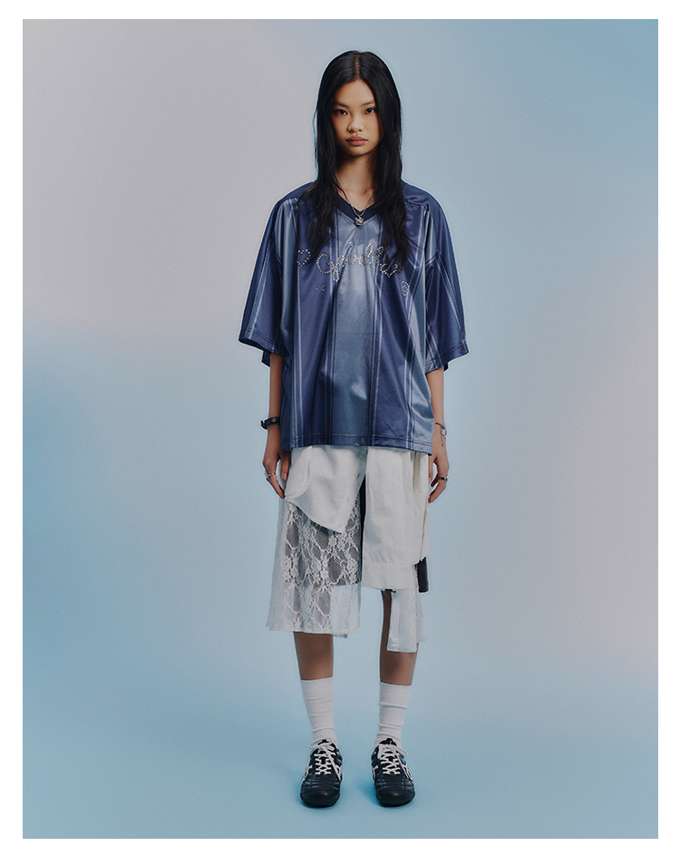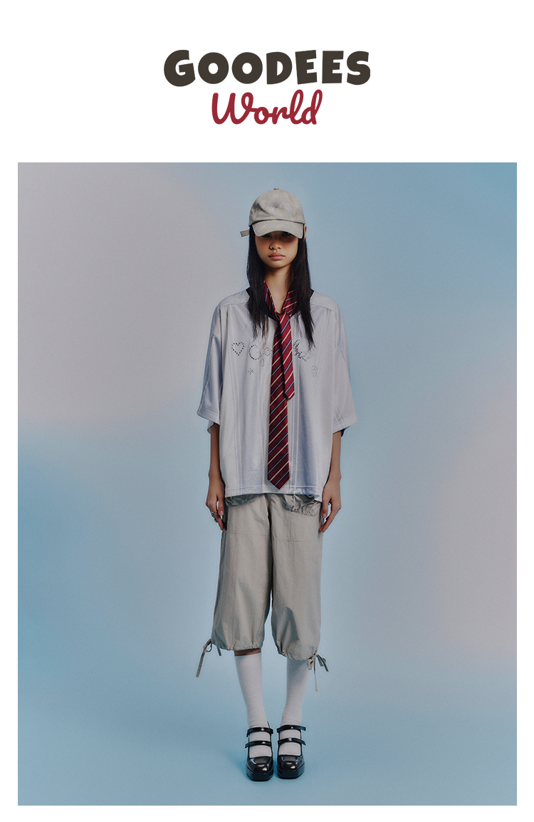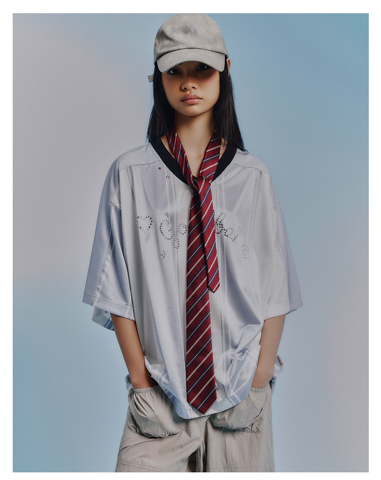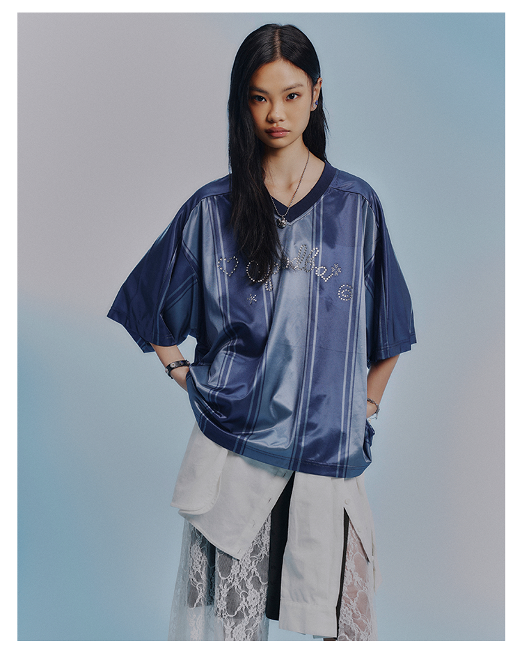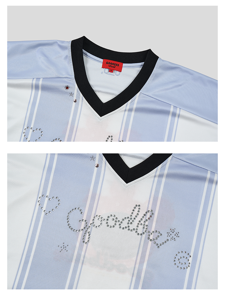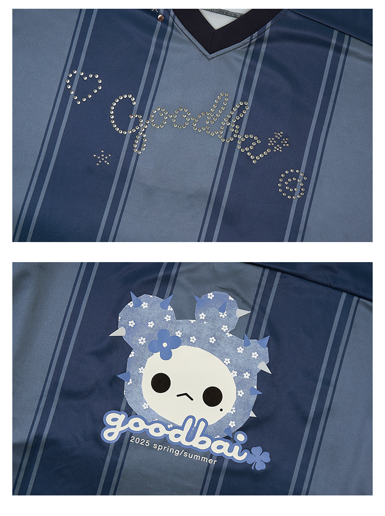GOODBAI GOODEES烫钻logo花花仙人掌印花V领oversize球衣