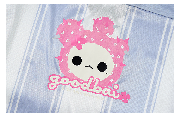 GOODBAI GOODEES 机器小猫logo做旧图案印花撞色oversize长袖T恤