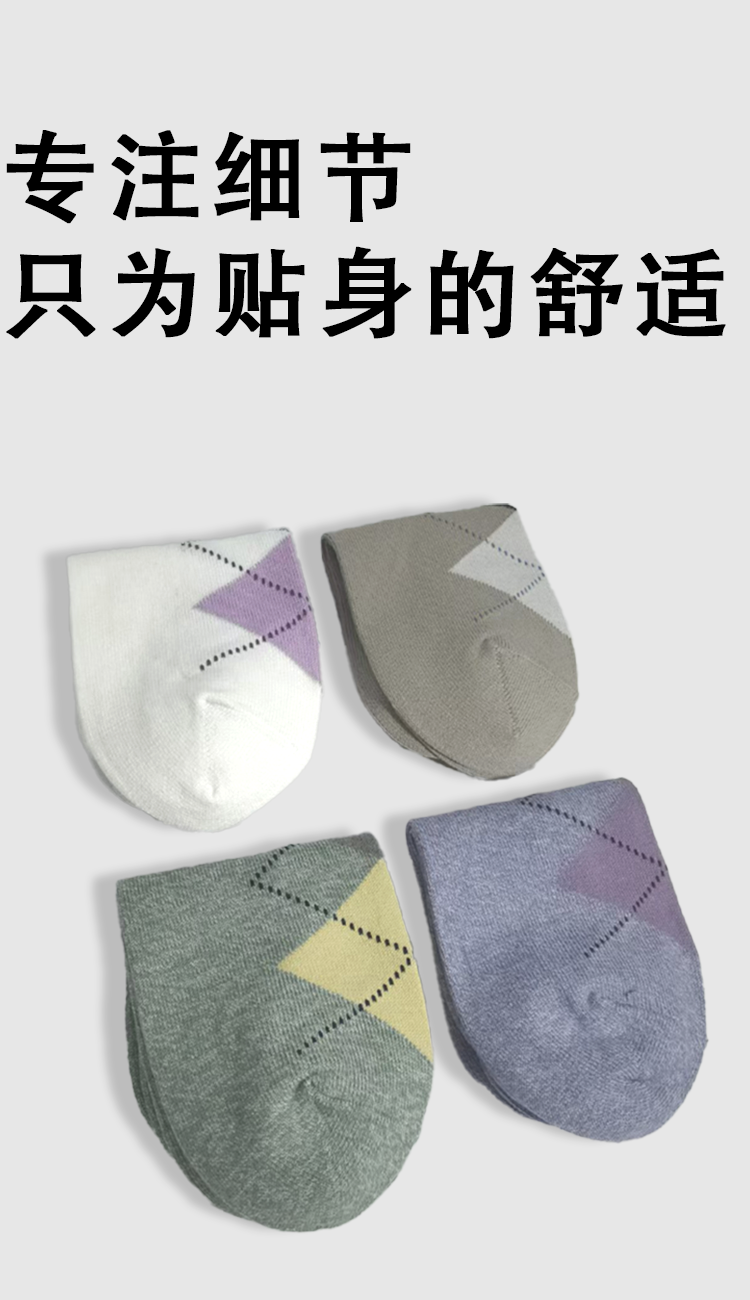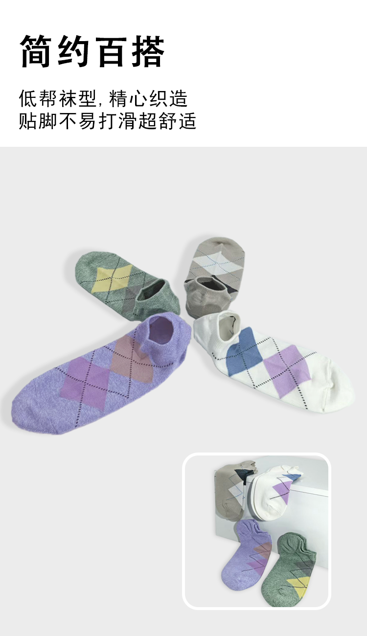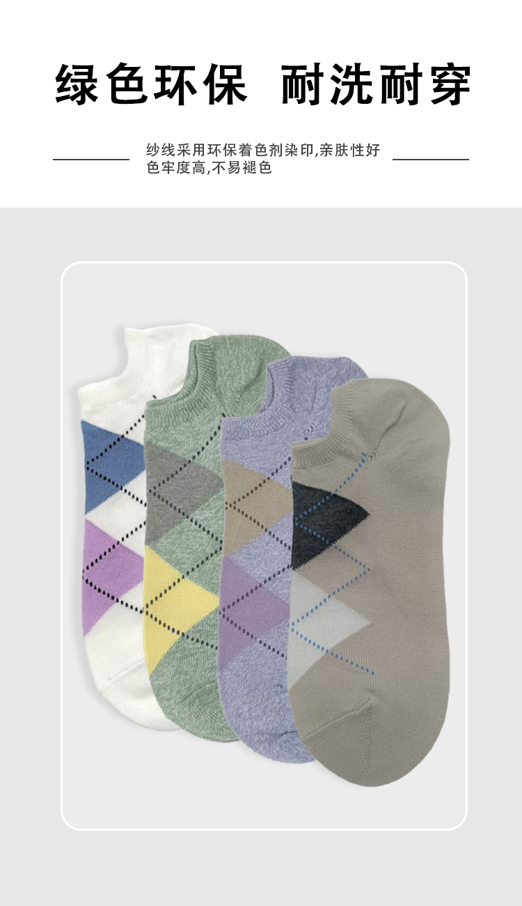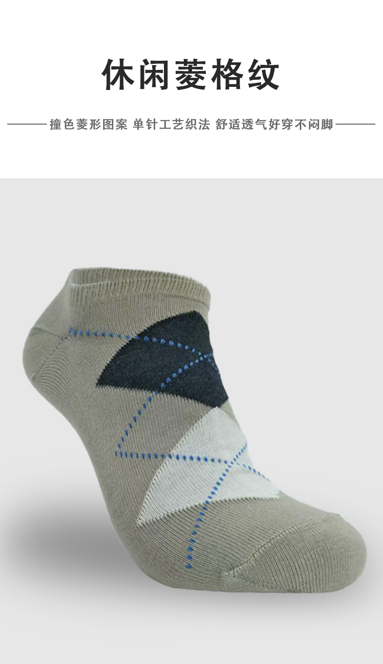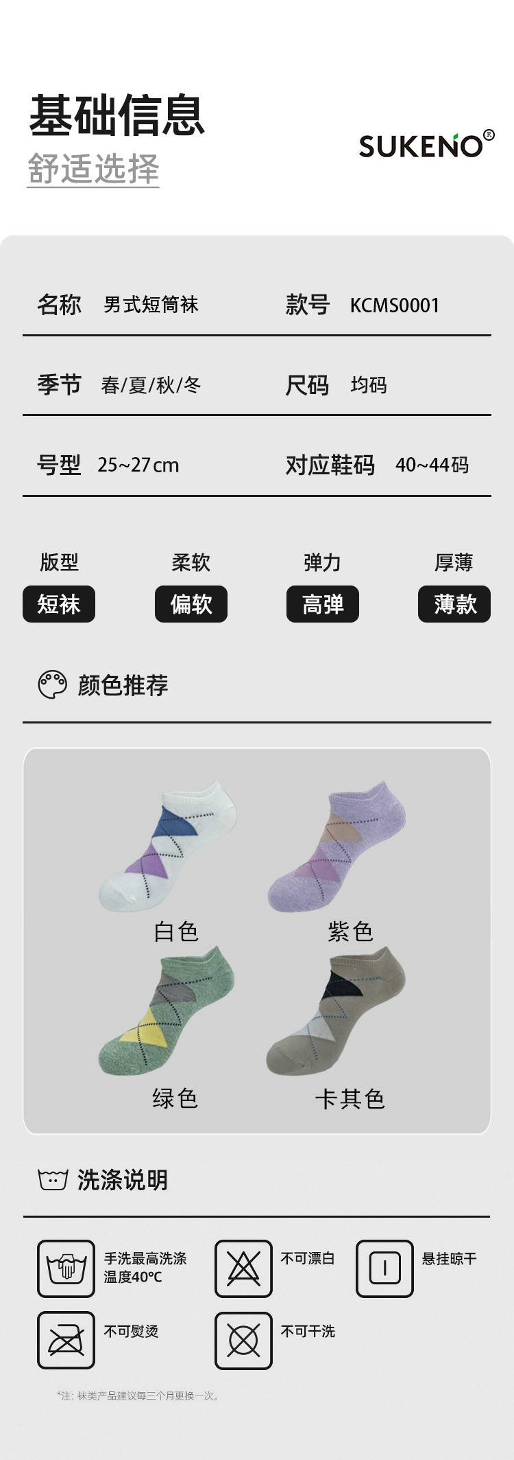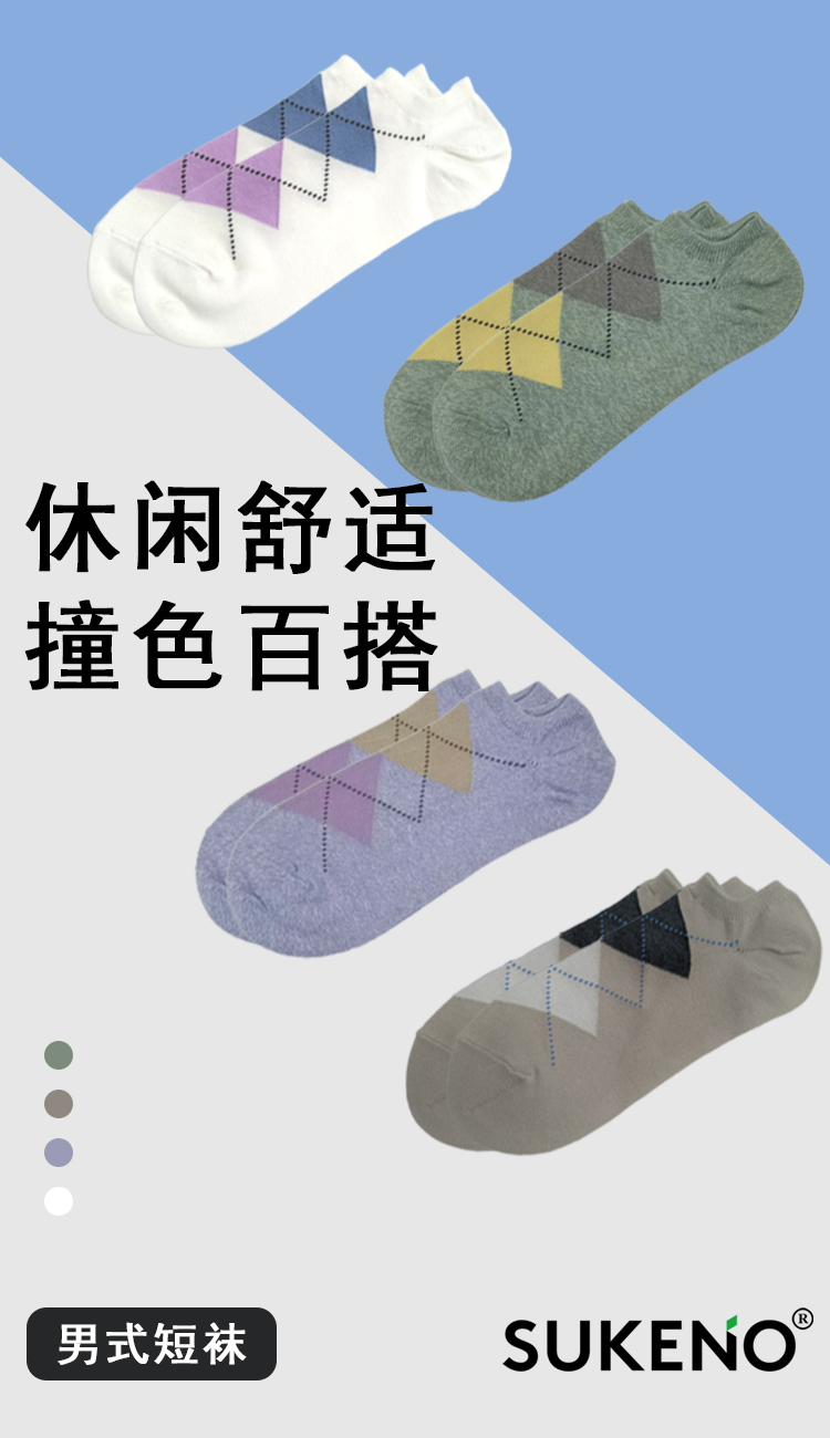 SUKENO棉感薄款男袜菱形格子舒适透气短袜