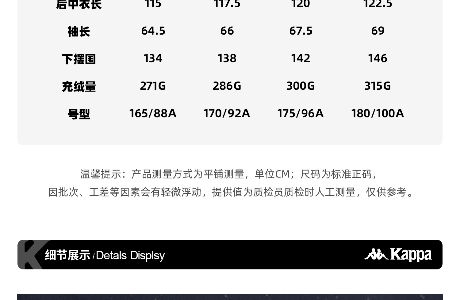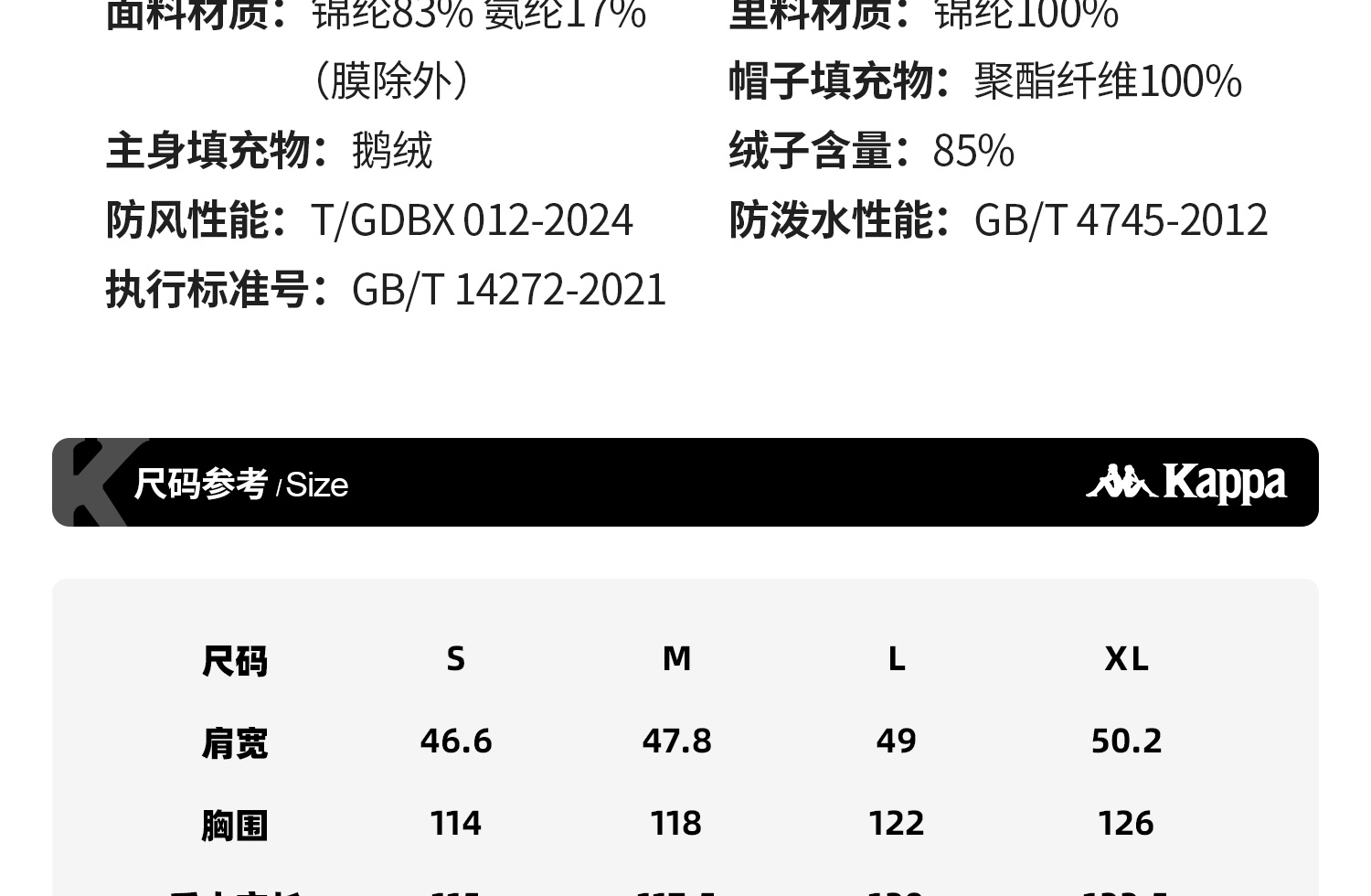 Kappa 冬季户外长款加厚鹅绒羽绒服 防泼水防风K0FY2YY42