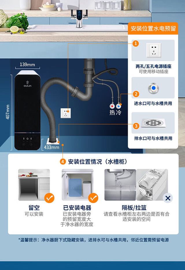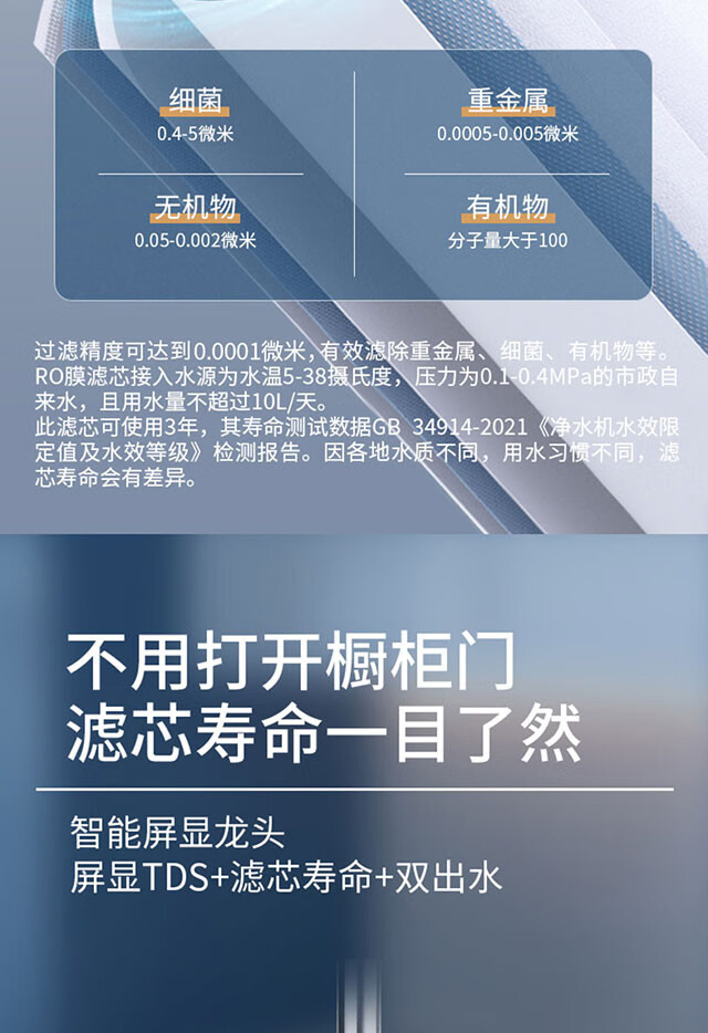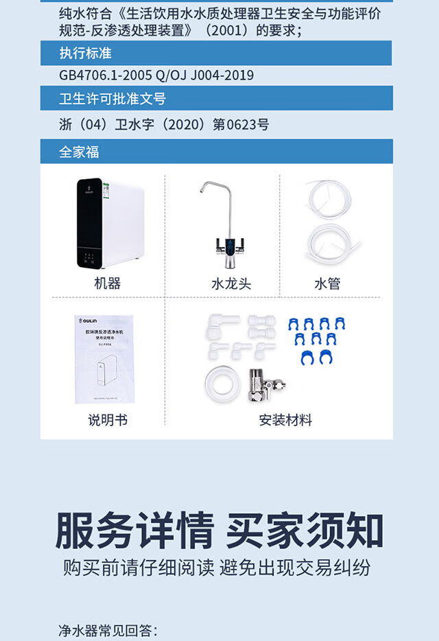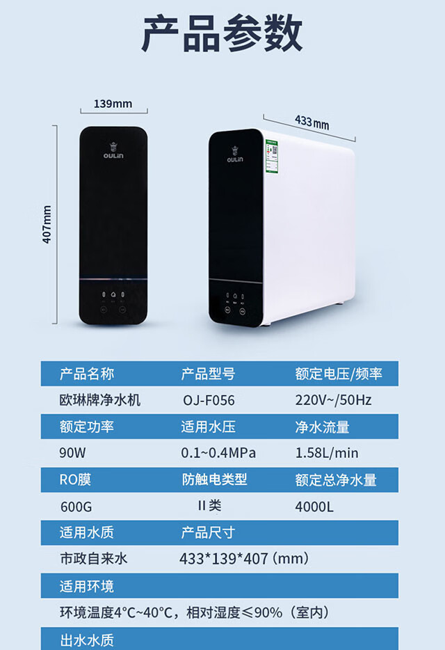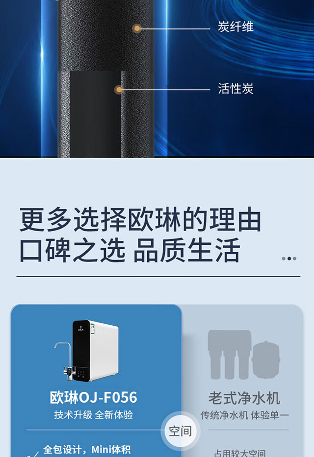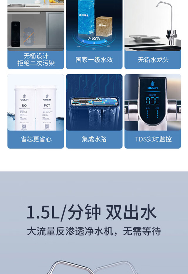欧琳(OULIN) 欧琳反渗透RO膜净水器家用直饮净水机自来水过滤F056