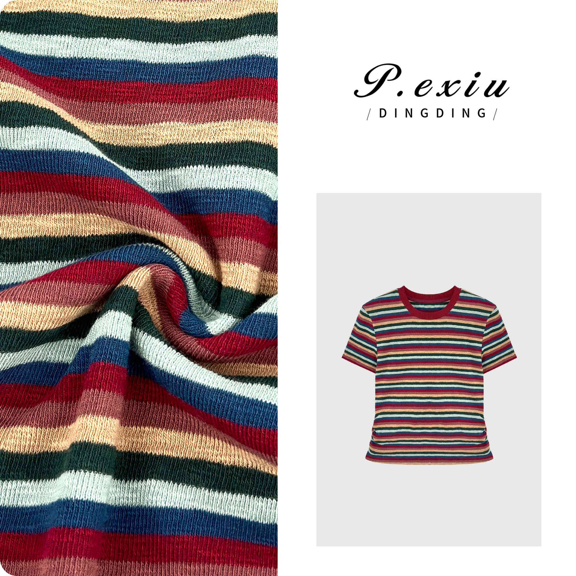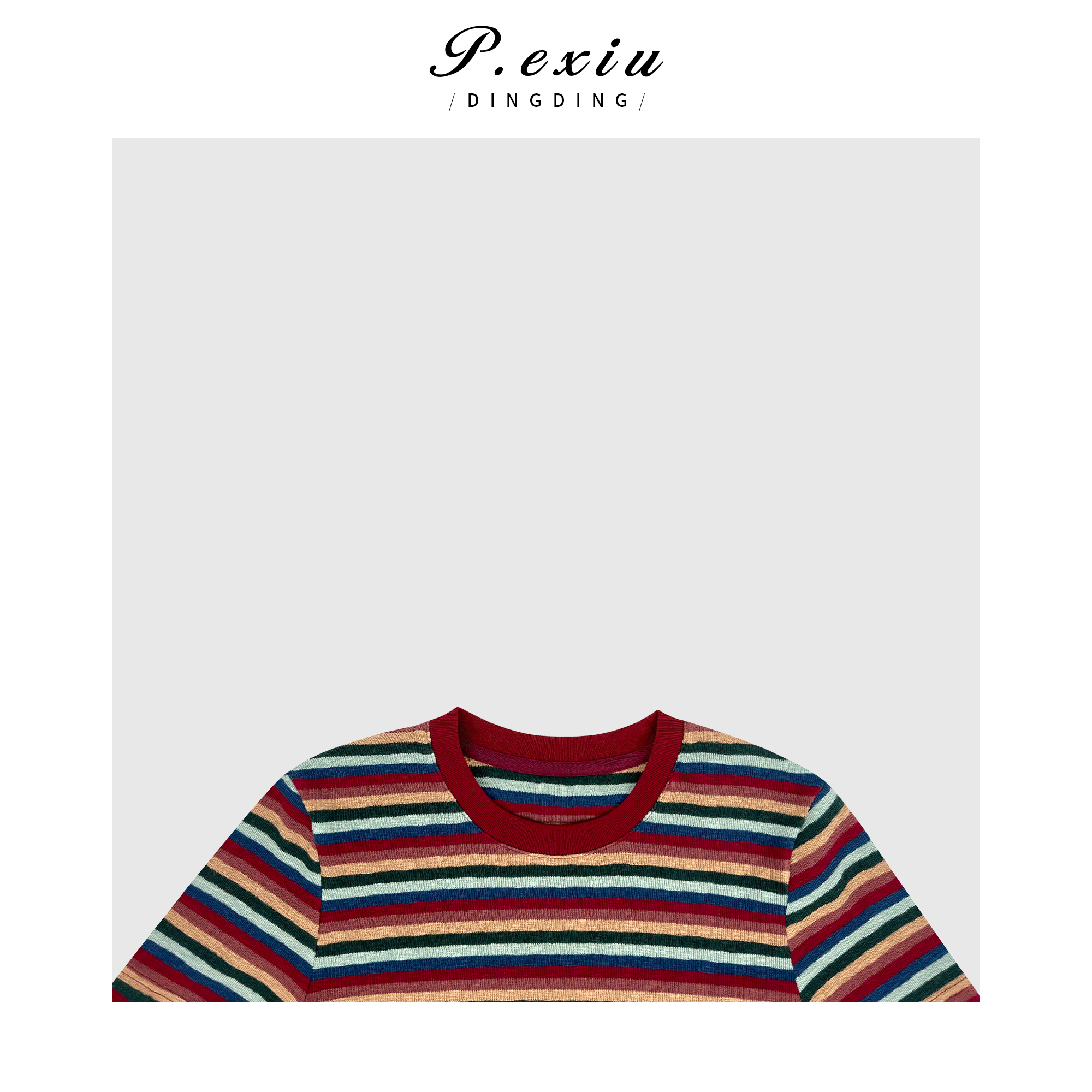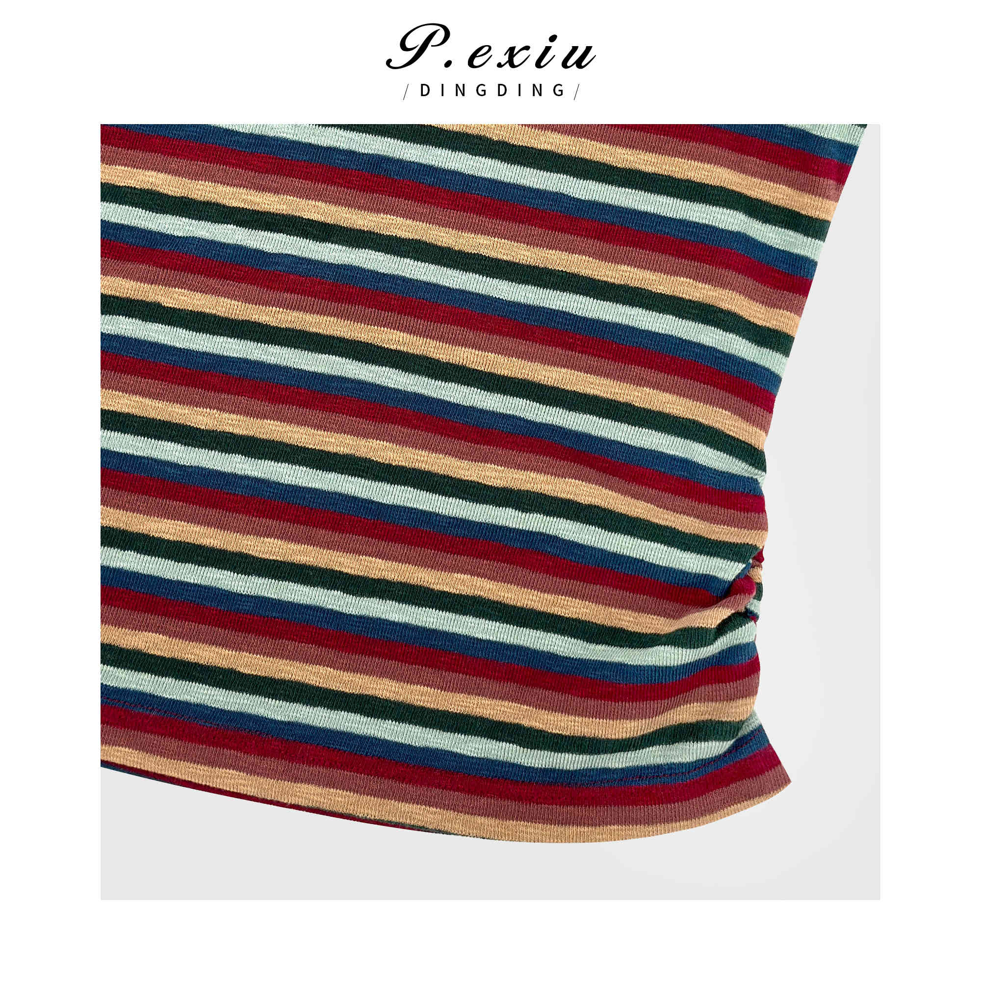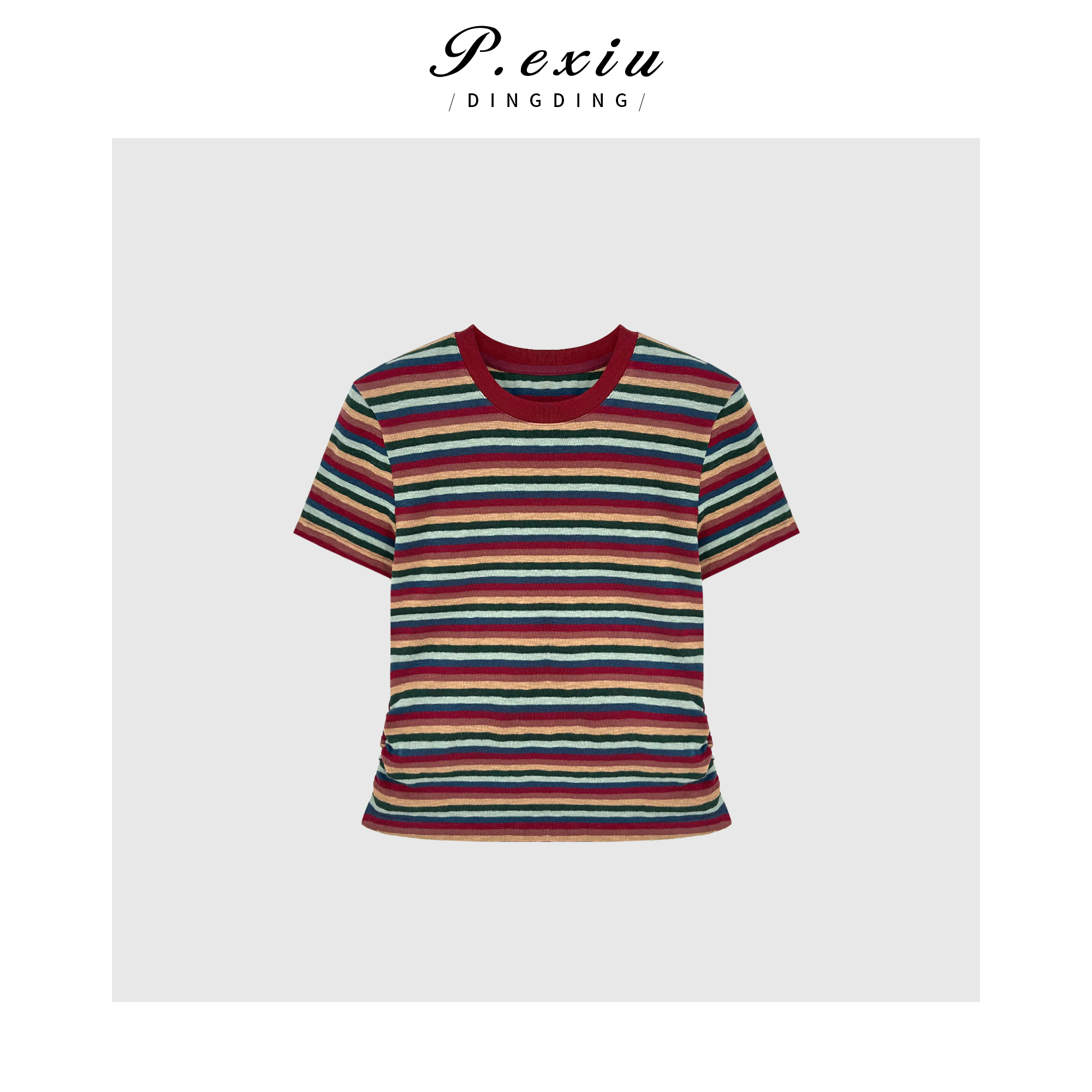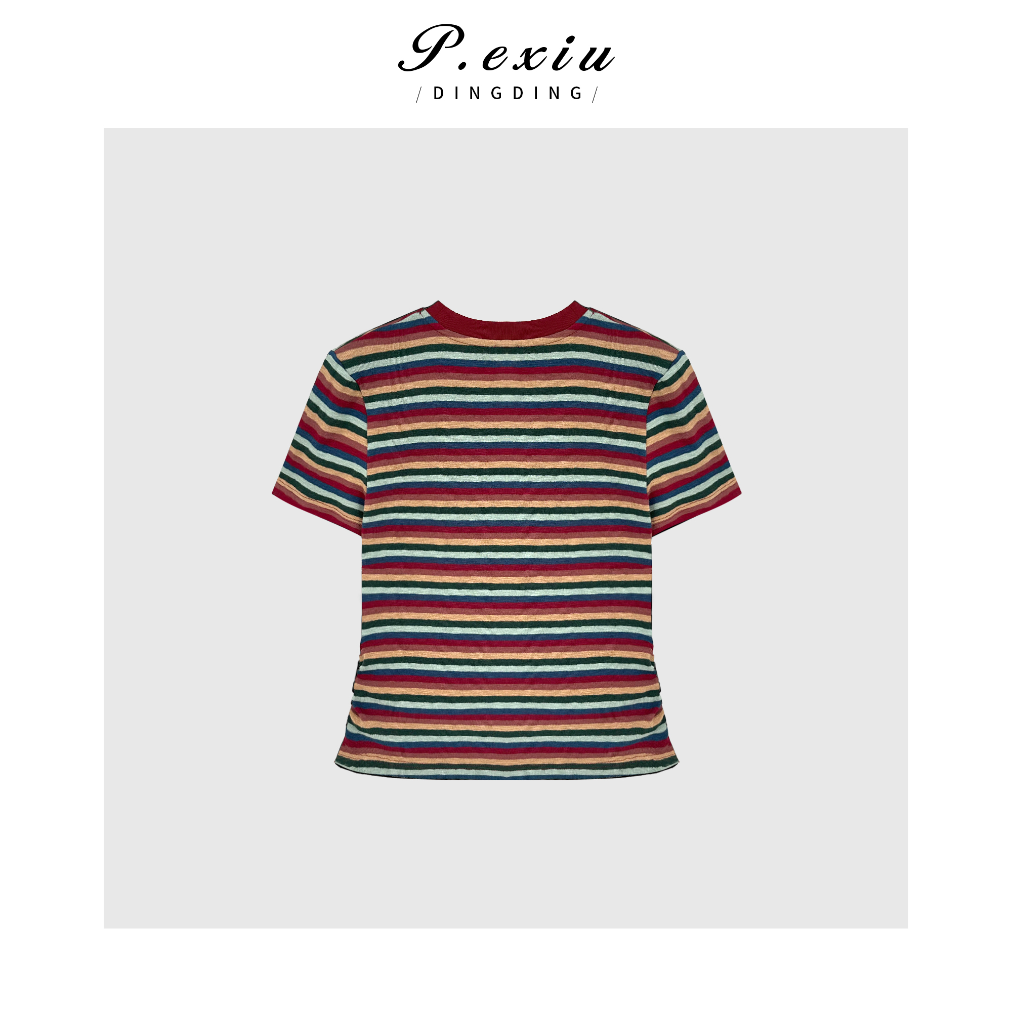 03-4潘依绣丁丁宠粉【彩趣纷呈】韩系撞色彩虹条纹修身短袖T恤 WH00151