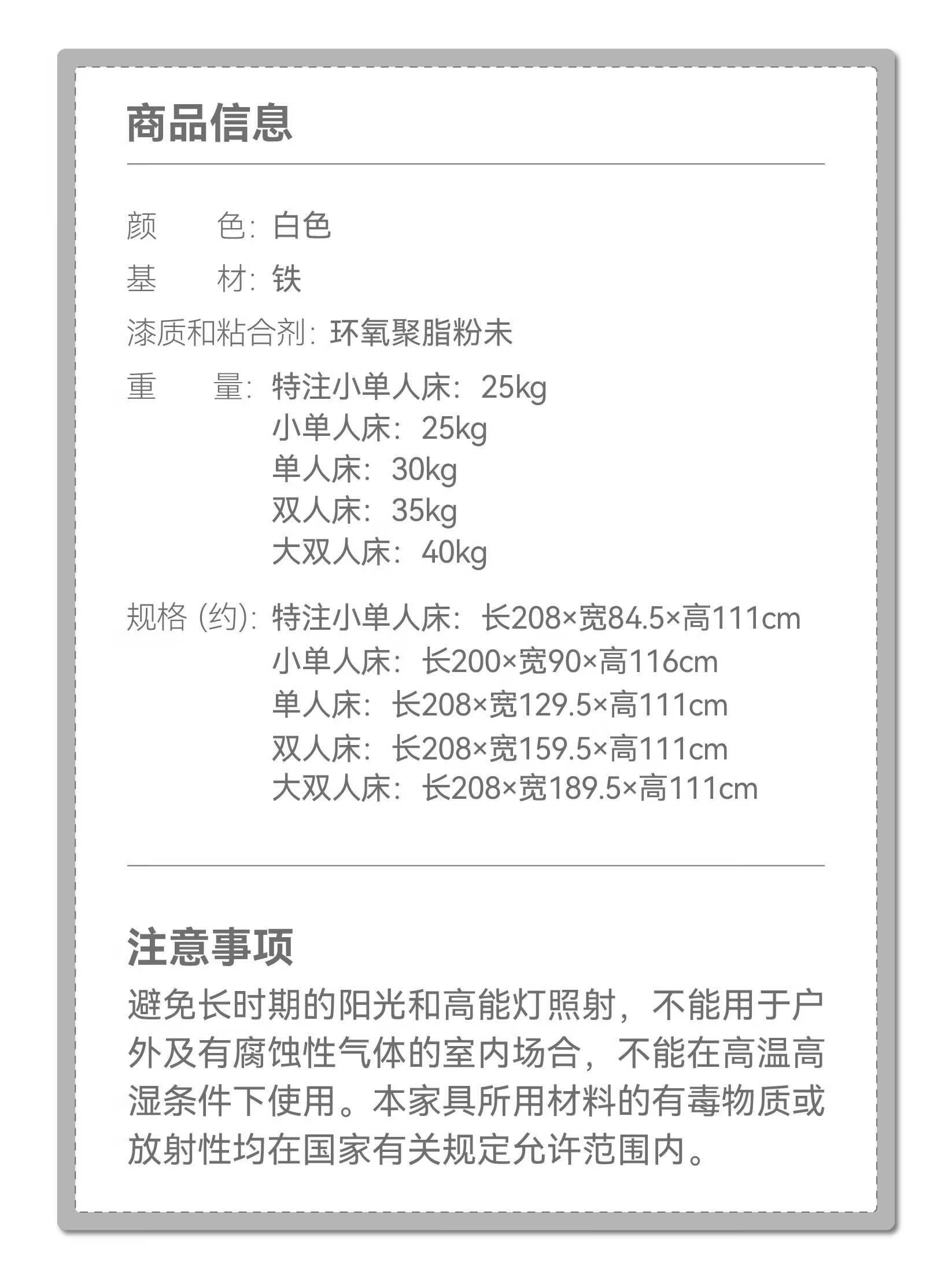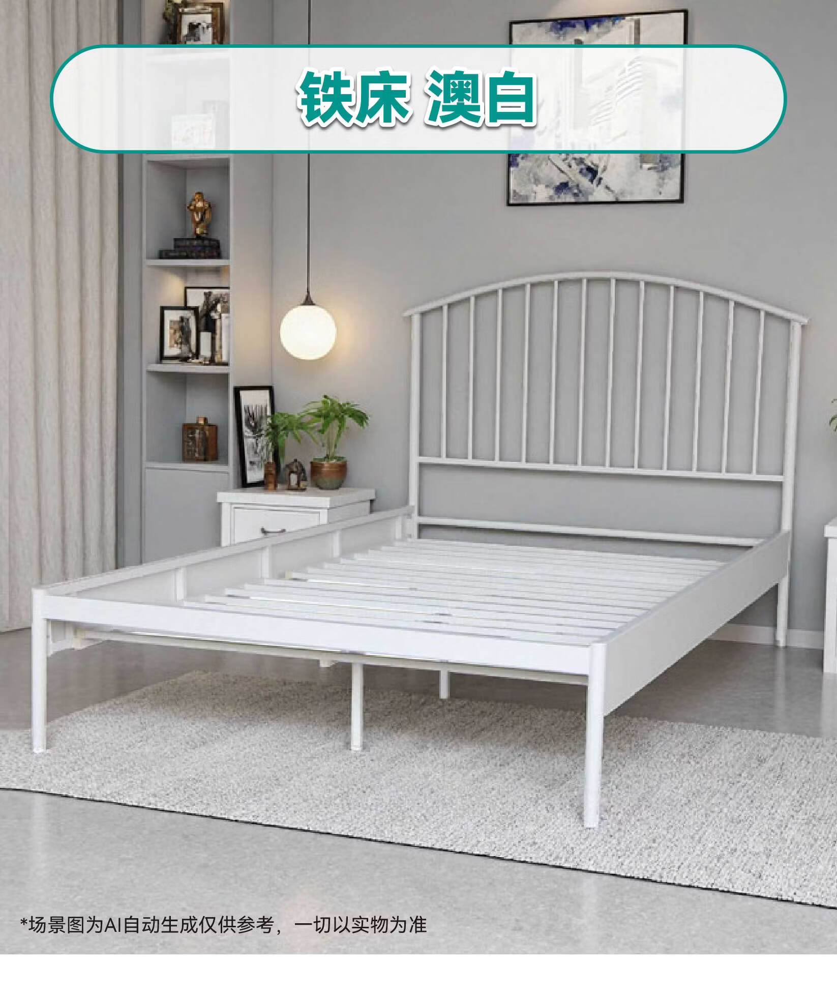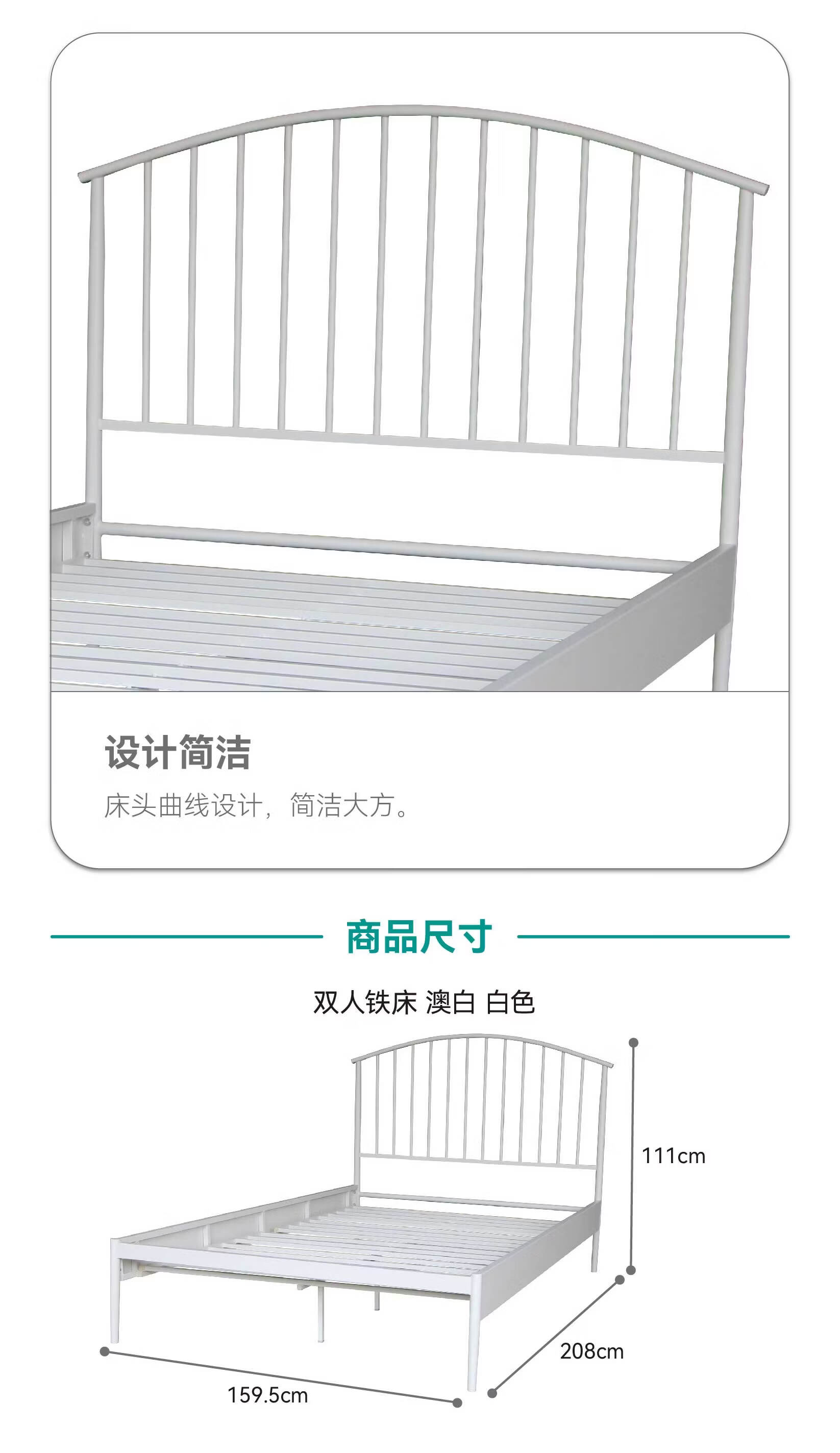 【家具】现代卧室出租屋简约铁床 澳白