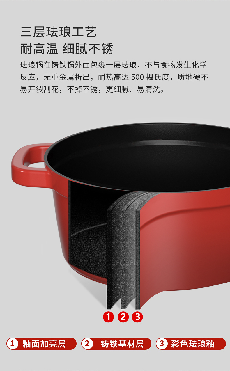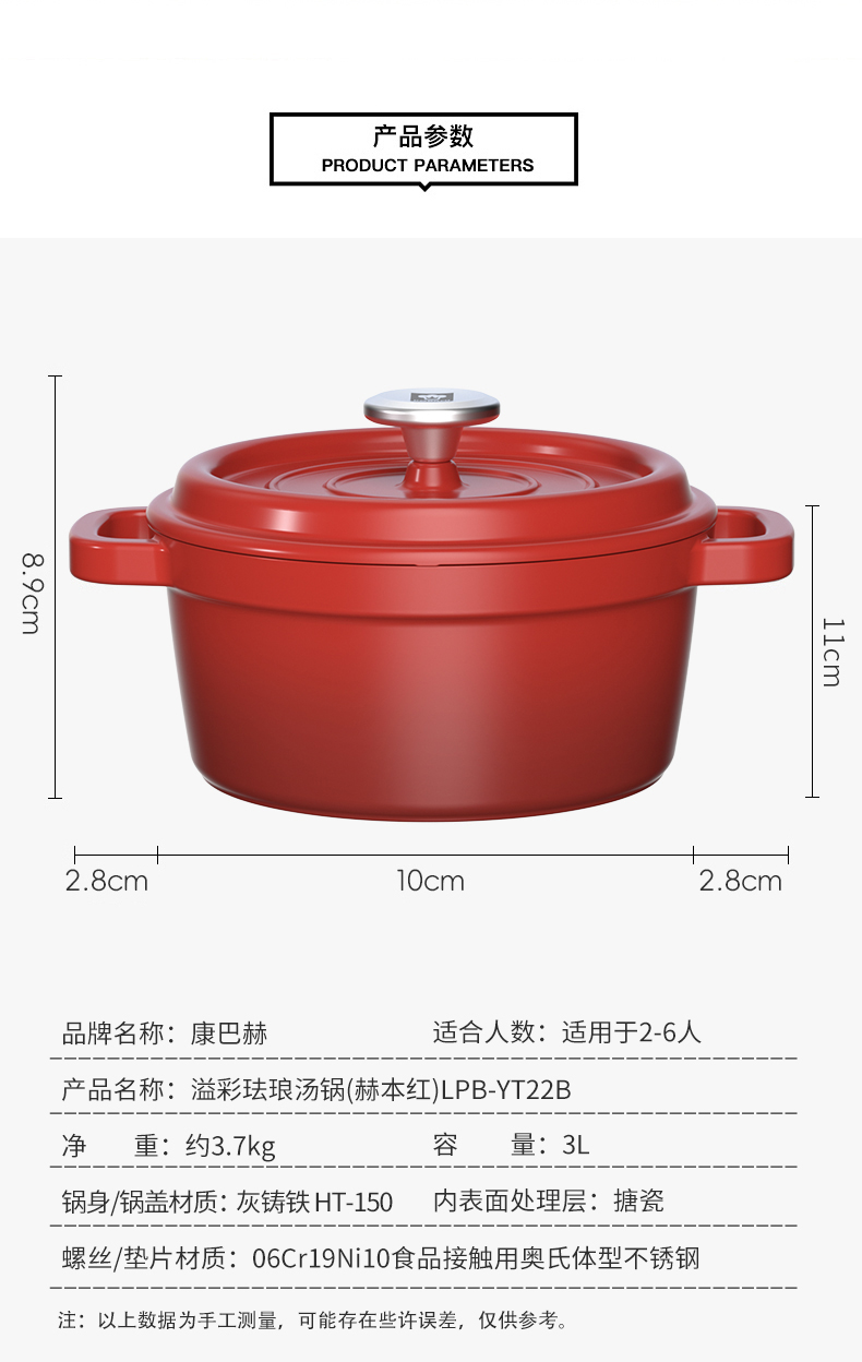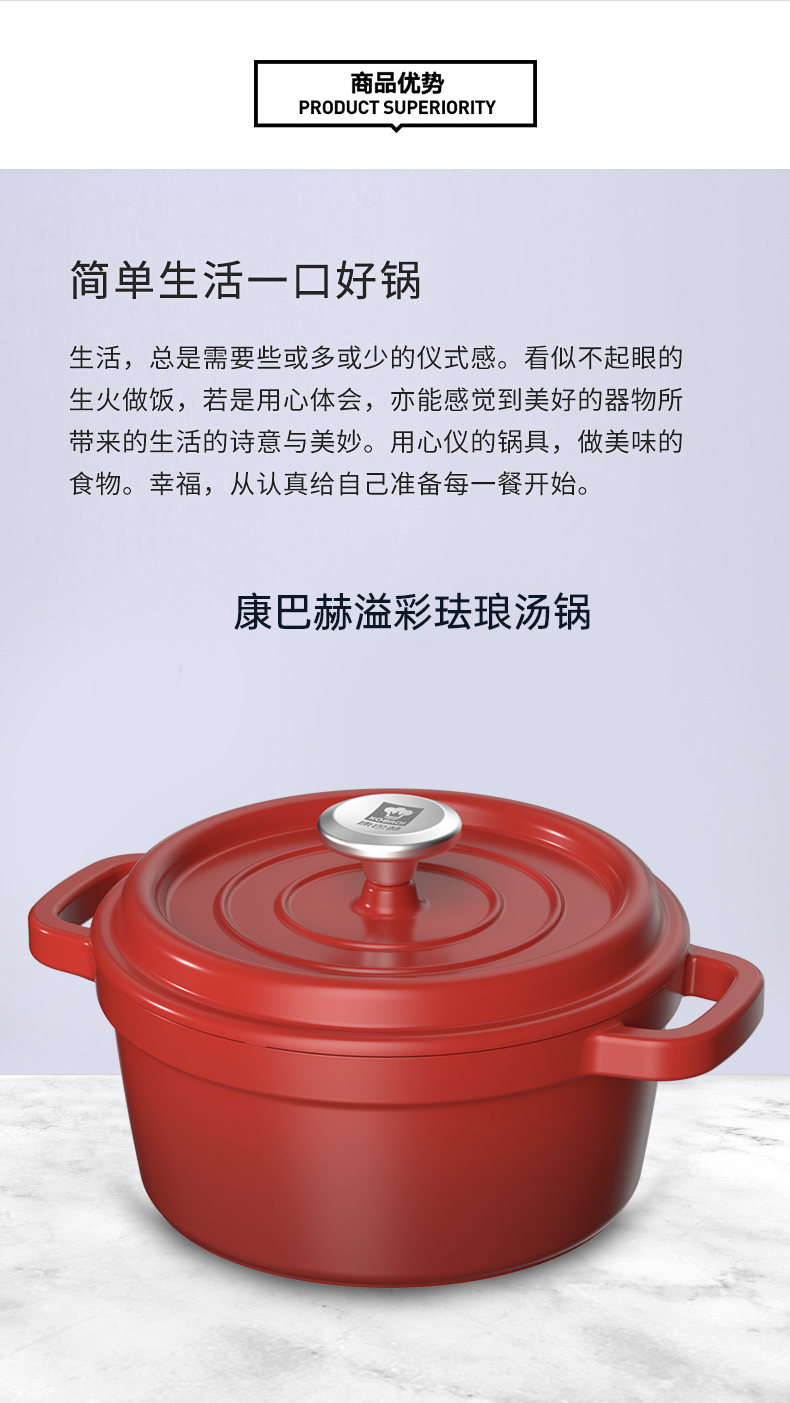 康巴赫 溢彩珐琅铸铁汤锅22cm LPB-YT22B