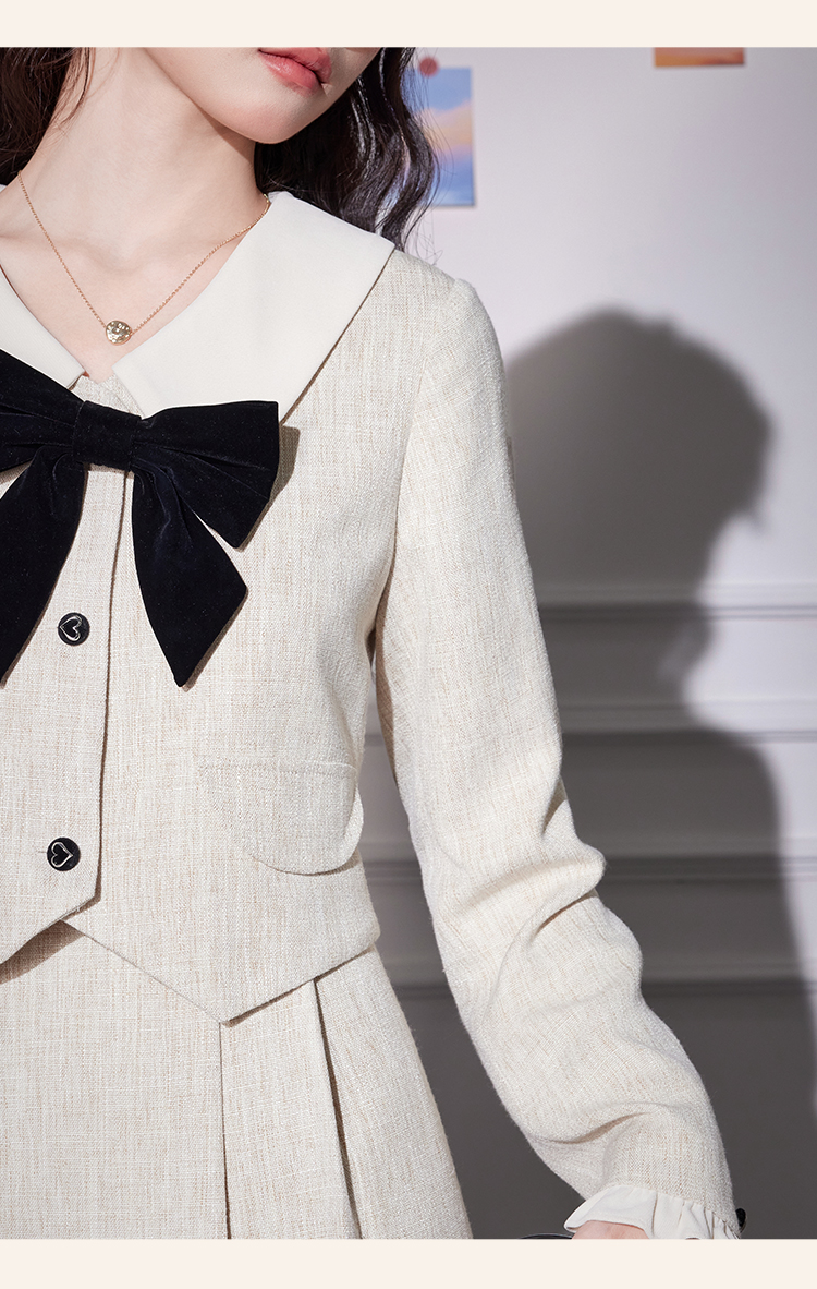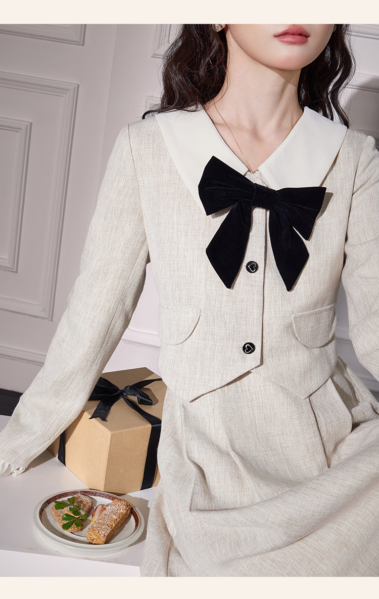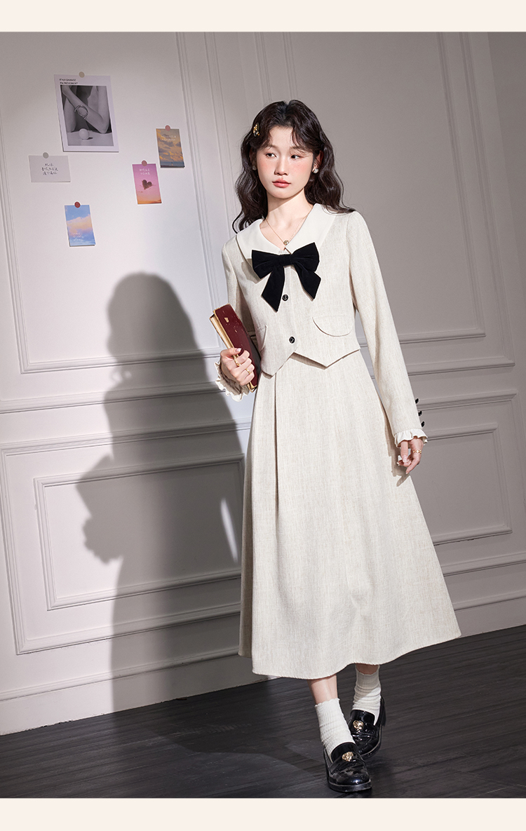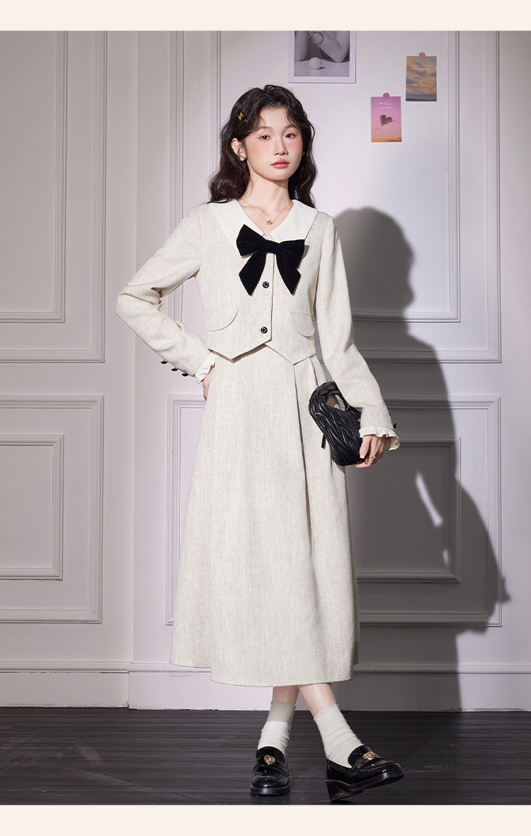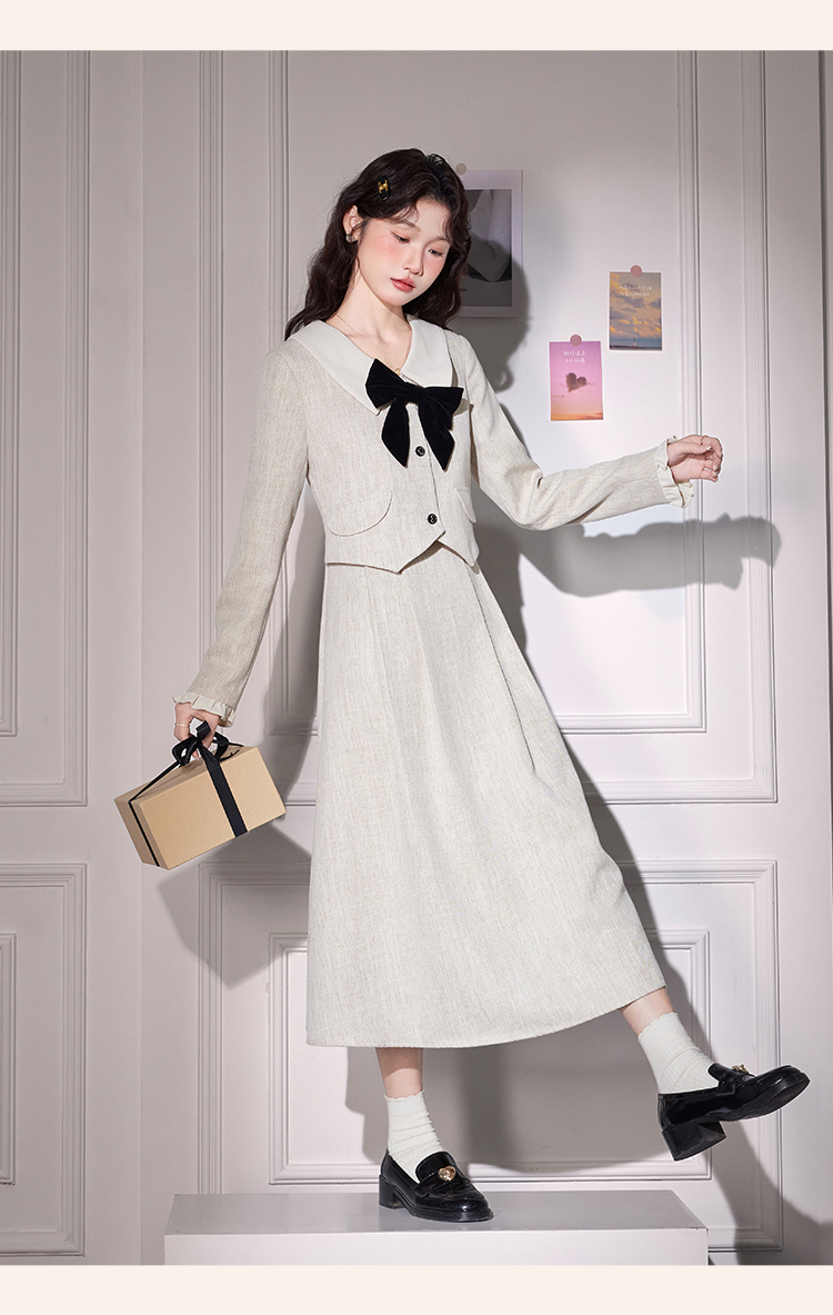 鹿向南「月光舒曼」法式假两件连衣裙女2024秋冬新款小香风长裙子