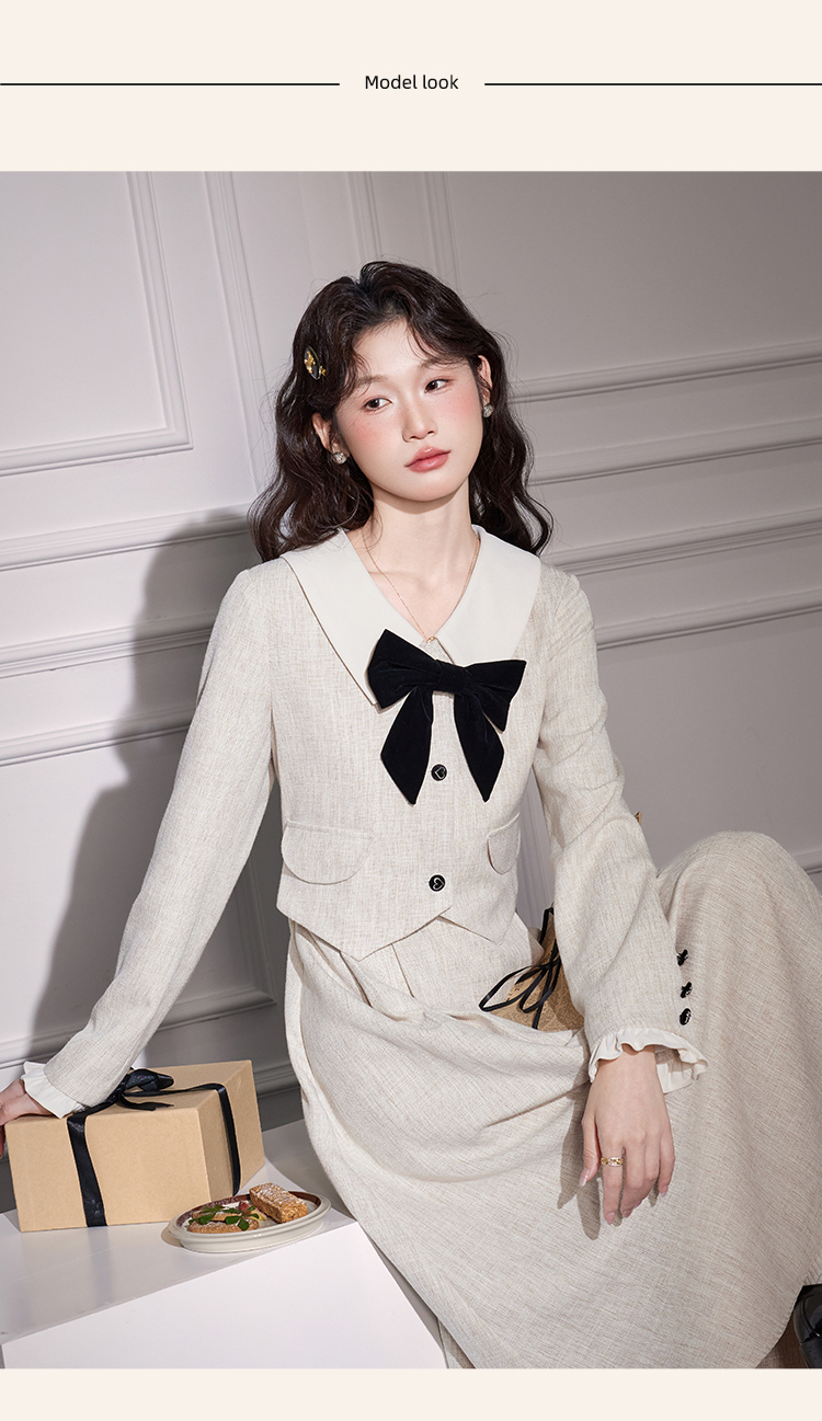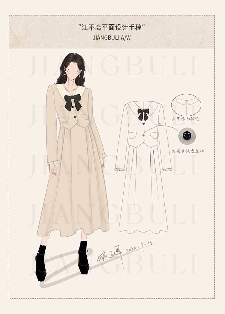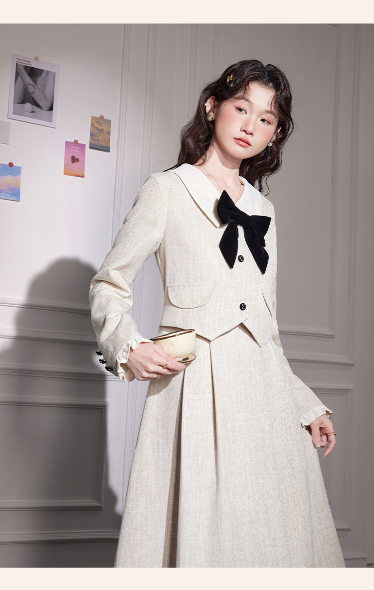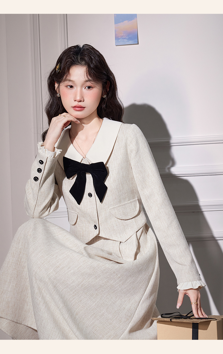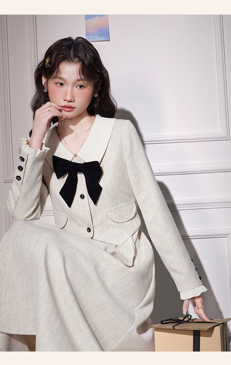 鹿向南「月光舒曼」法式假两件连衣裙女2024秋冬新款小香风长裙子