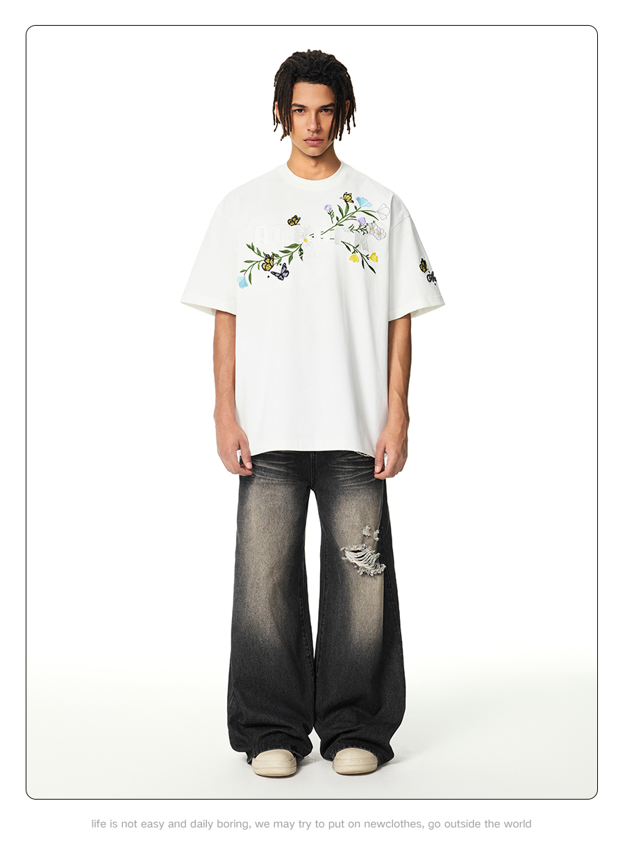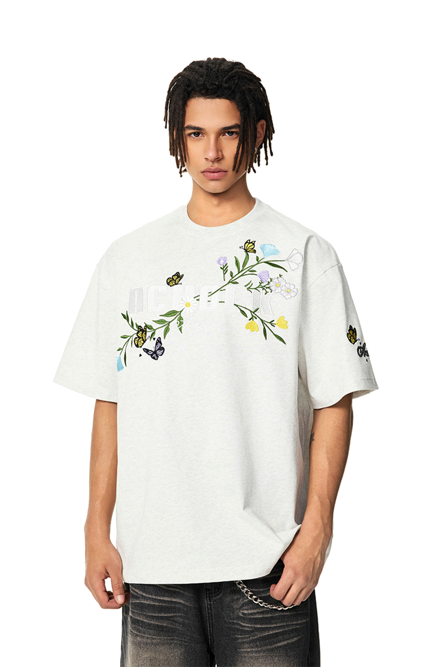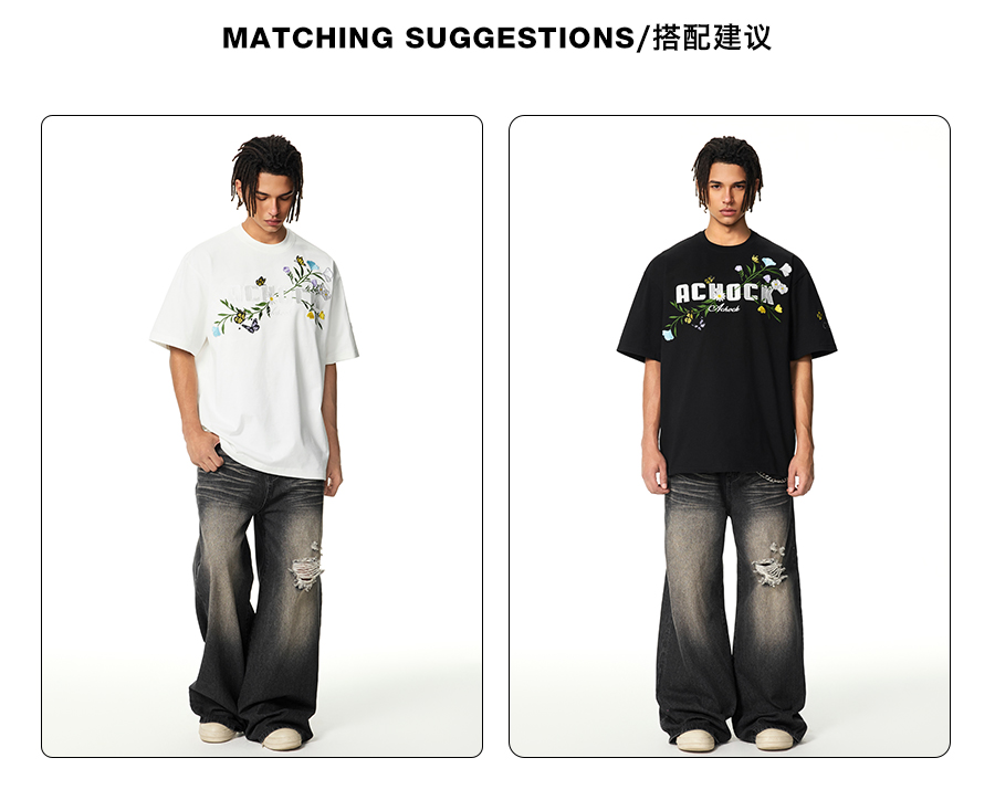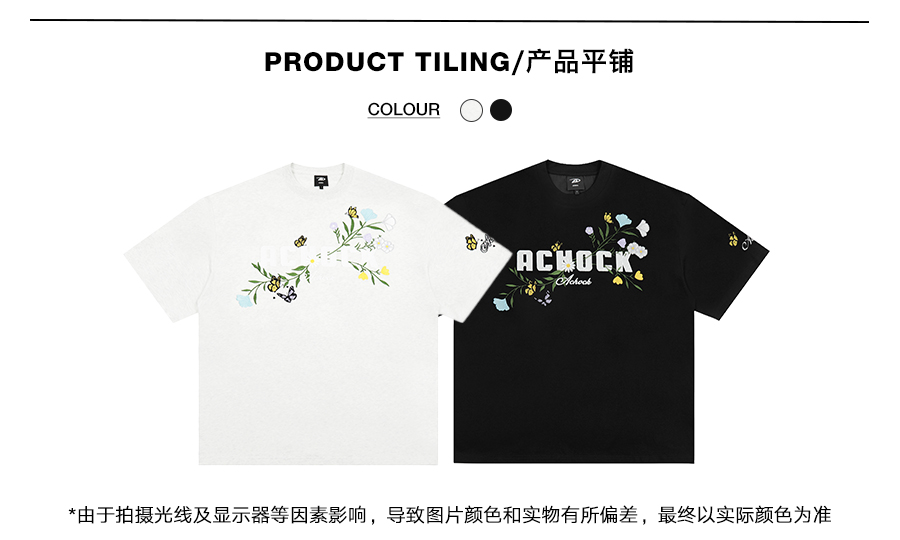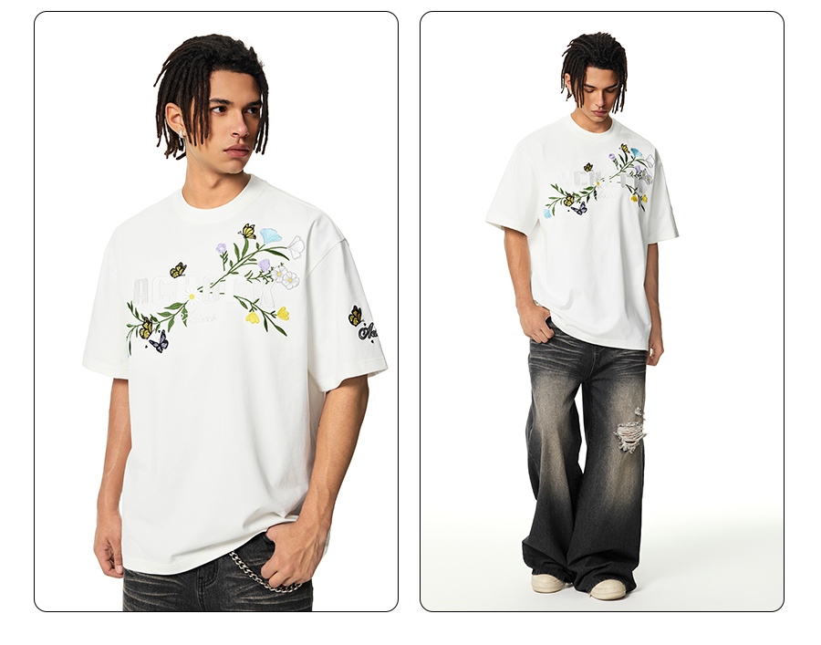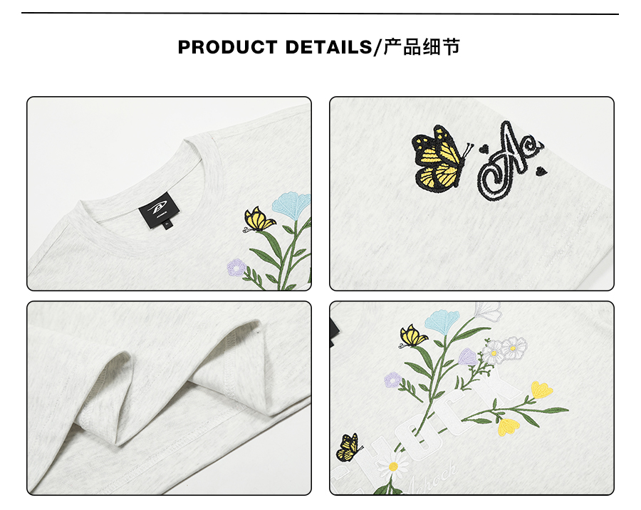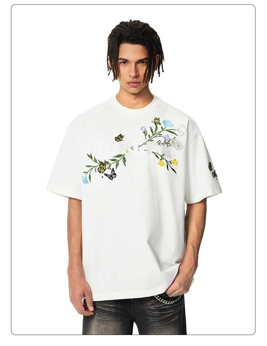 【Achock官方店】花卉刺绣短袖T恤男女新款潮牌美式情侣上衣体恤