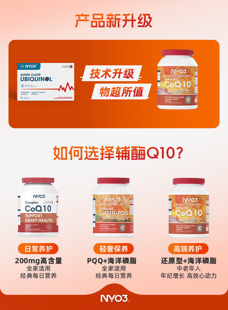 NYO3挪威原装进口专利辅酶还原型Q10保护心脏60粒