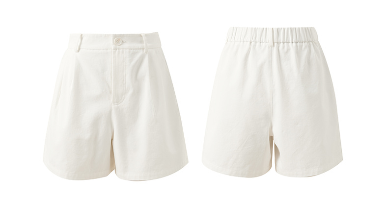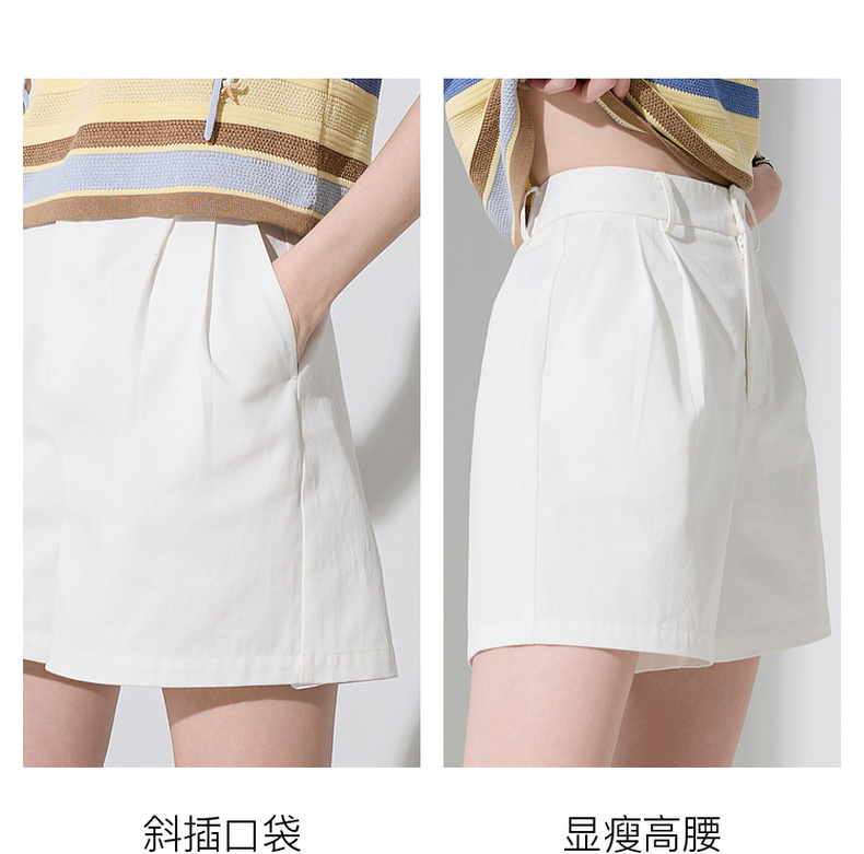 三彩2025秋季新款休闲裤纯棉高腰阔腿裤短裤小白裤A字宽松显瘦M
