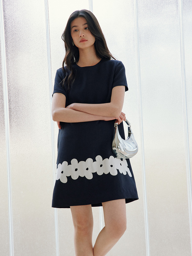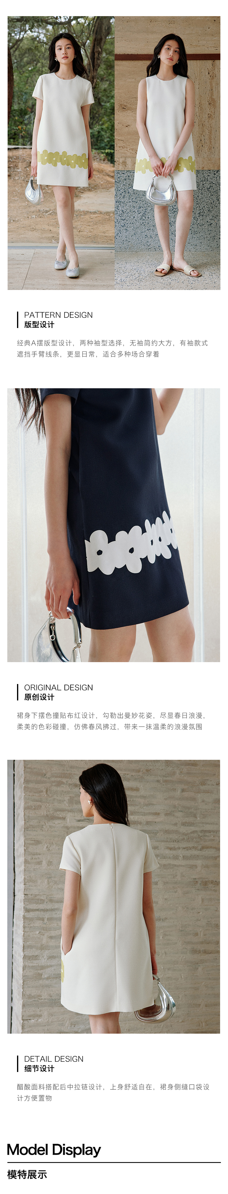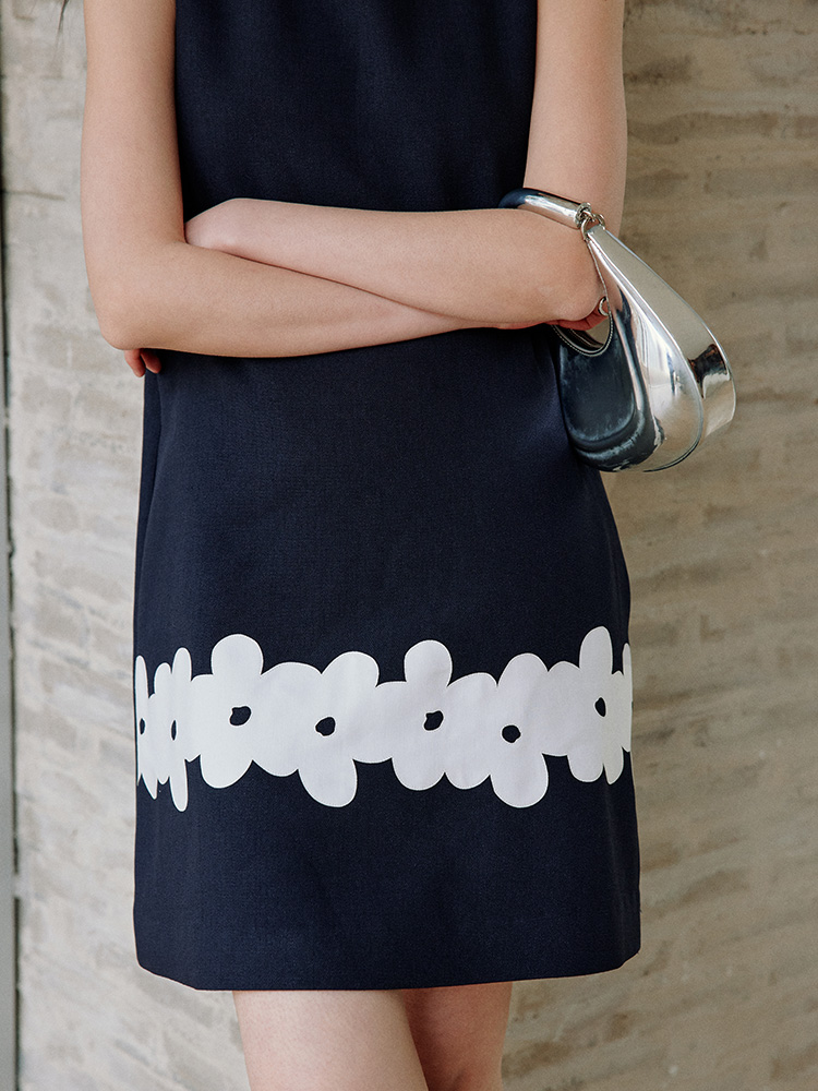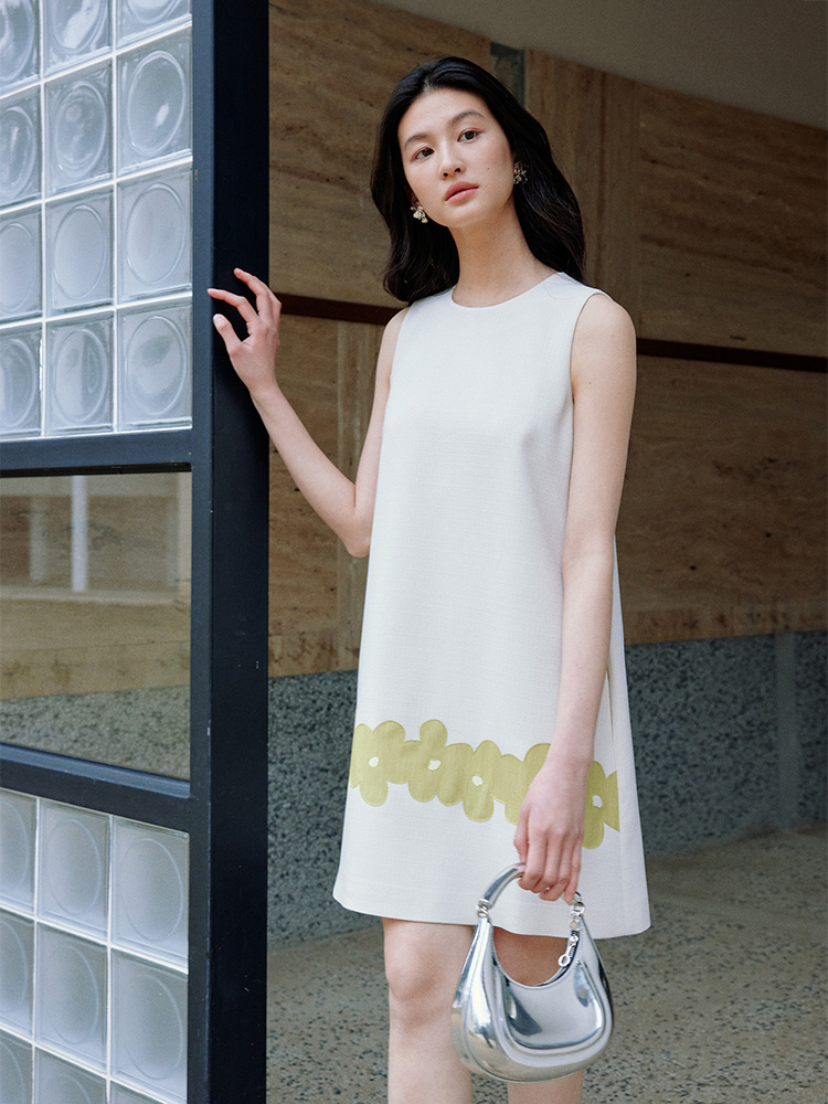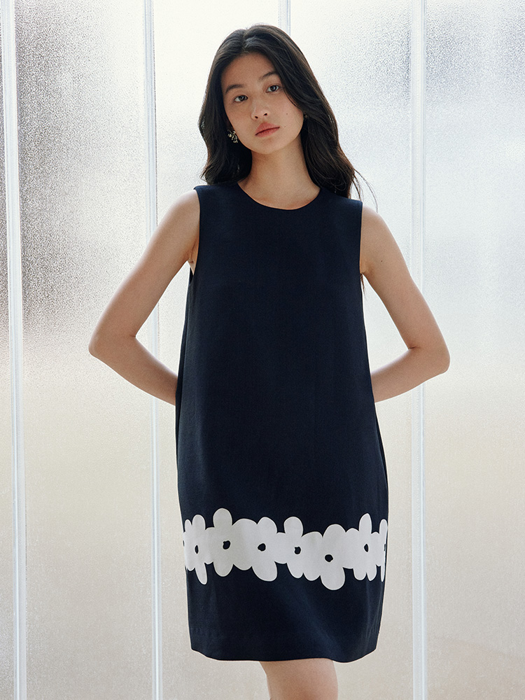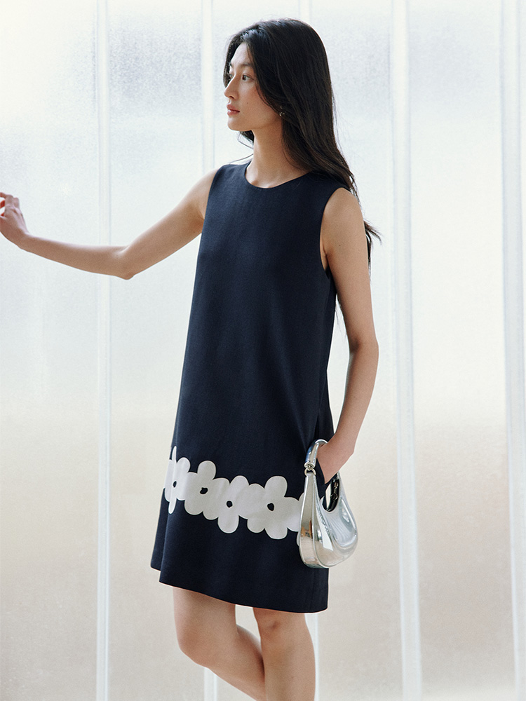ForPoem 现货 25/SS原创设计撞色贴布花朵醋酸短袖无袖连衣裙