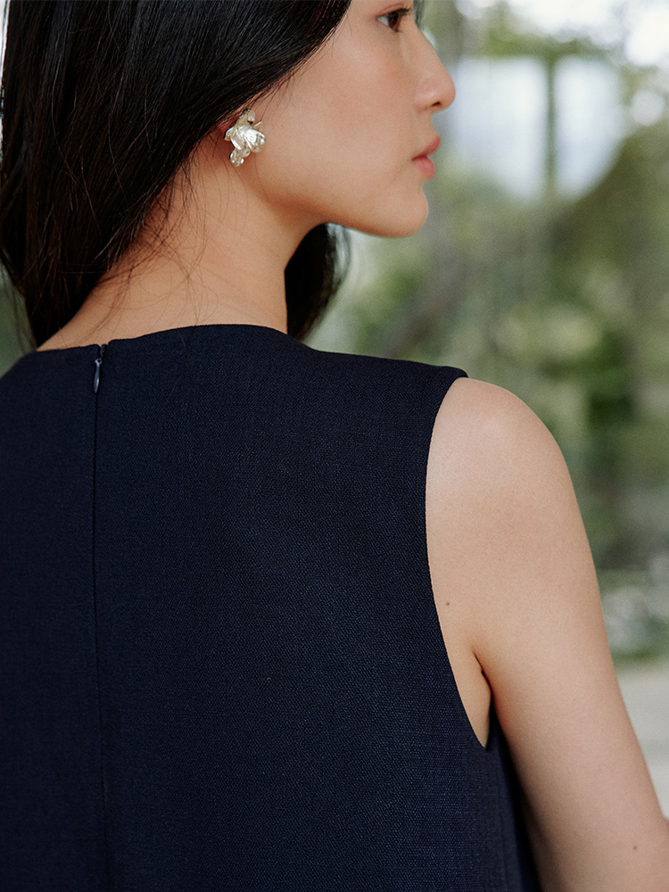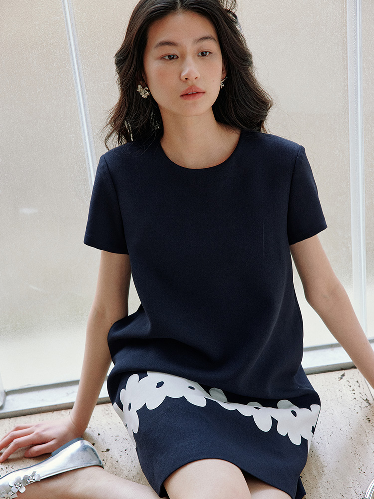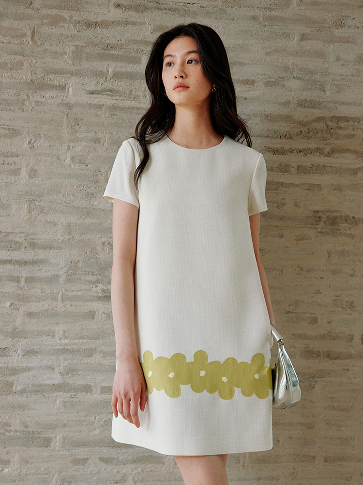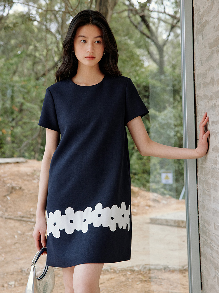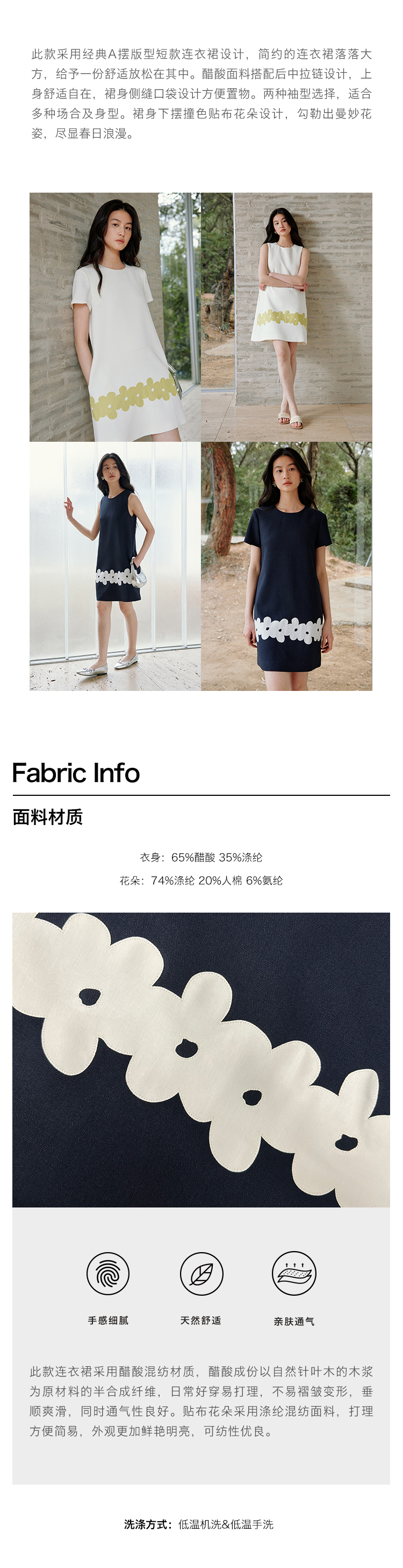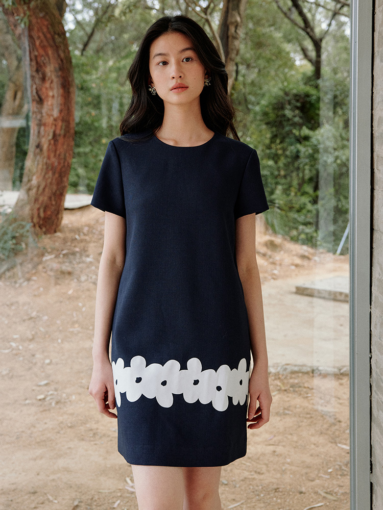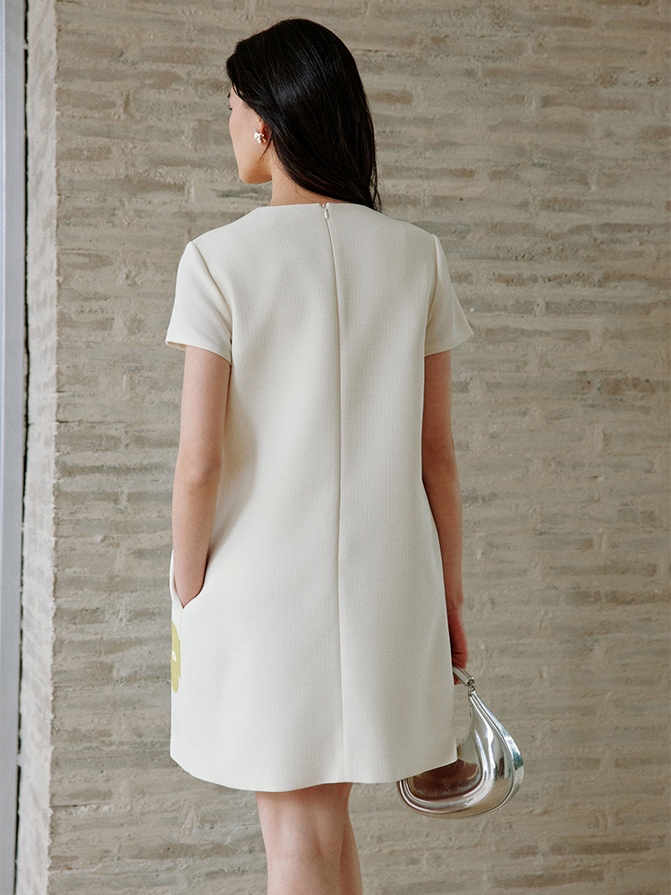 ForPoem 现货 25/SS原创设计撞色贴布花朵醋酸短袖无袖连衣裙