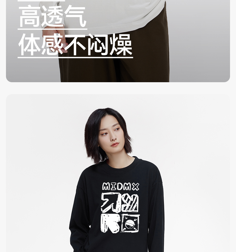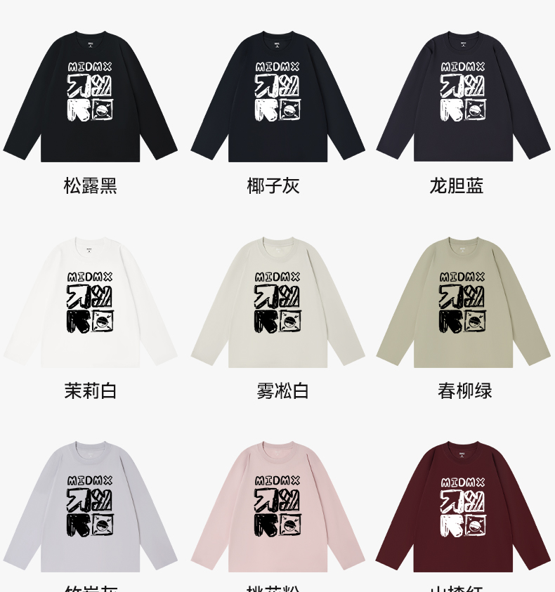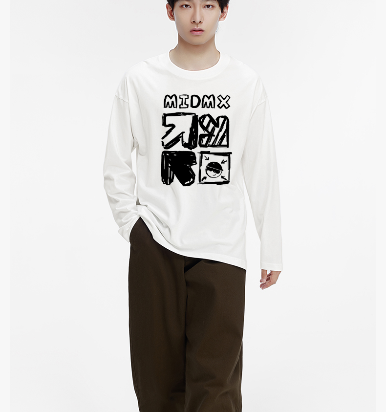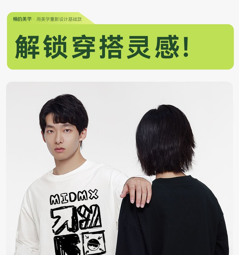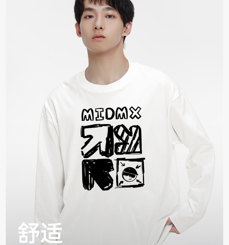 「棉的美学」203g纯棉字体印花T恤秋季薄款内搭日常简约长袖上衣