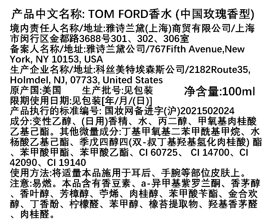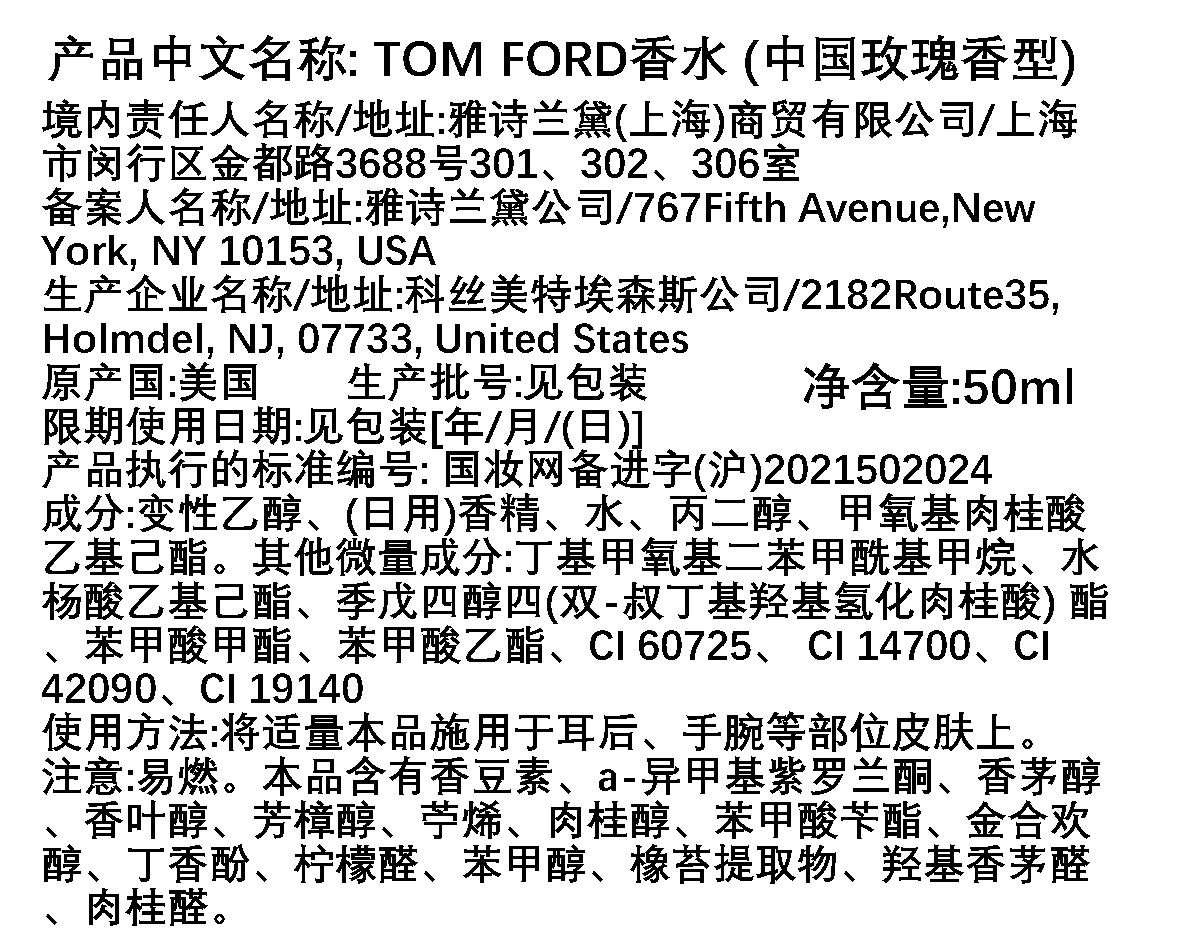Tom ford汤姆福特/TF 中国玫瑰香水