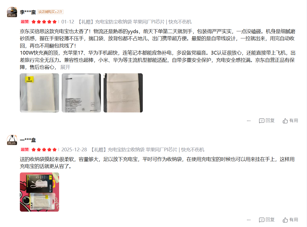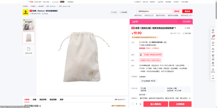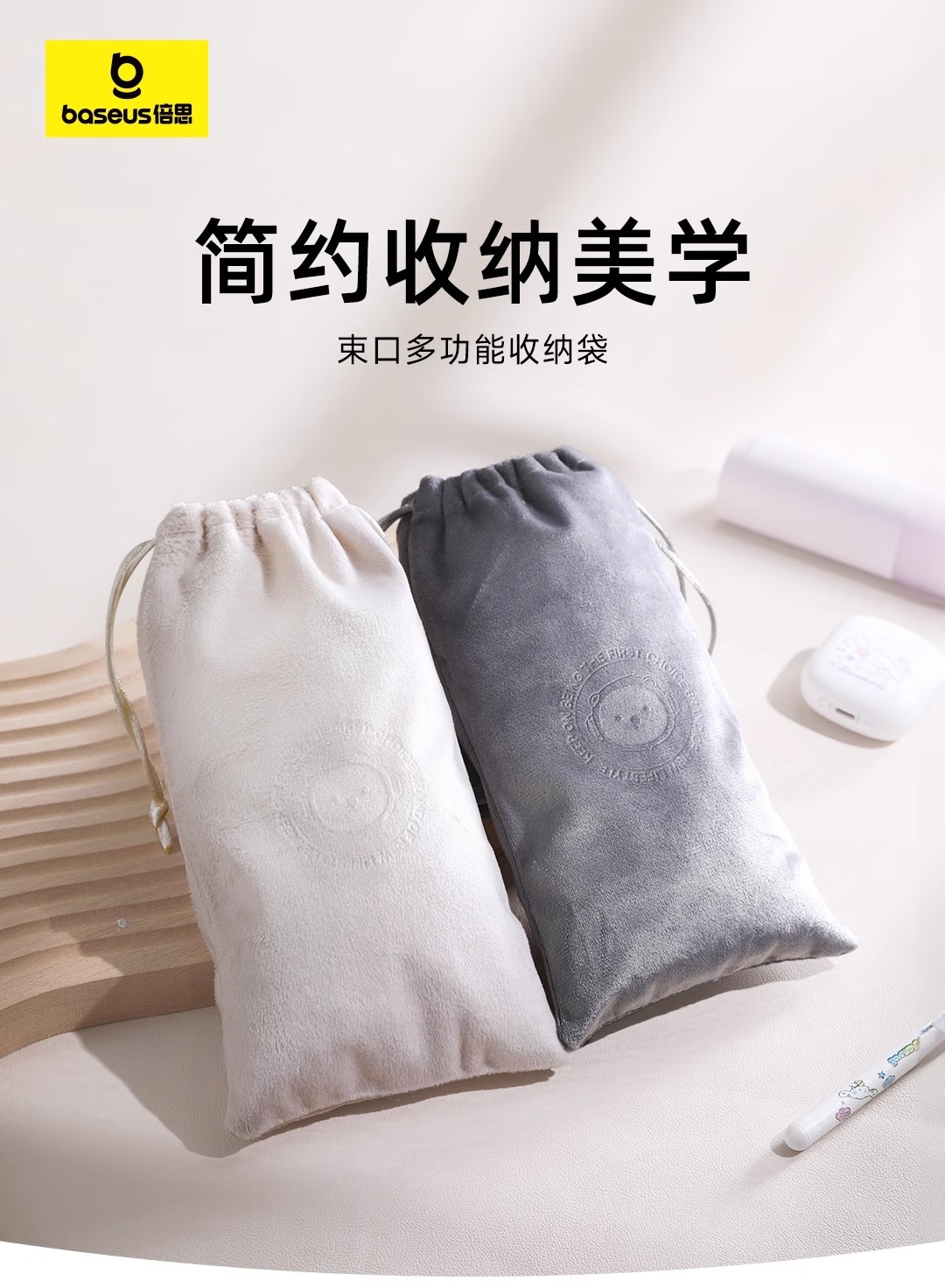 【京东热销10W+】倍思 绒布 束口多功能收纳袋 收纳充电宝 耳机等多种数码产品